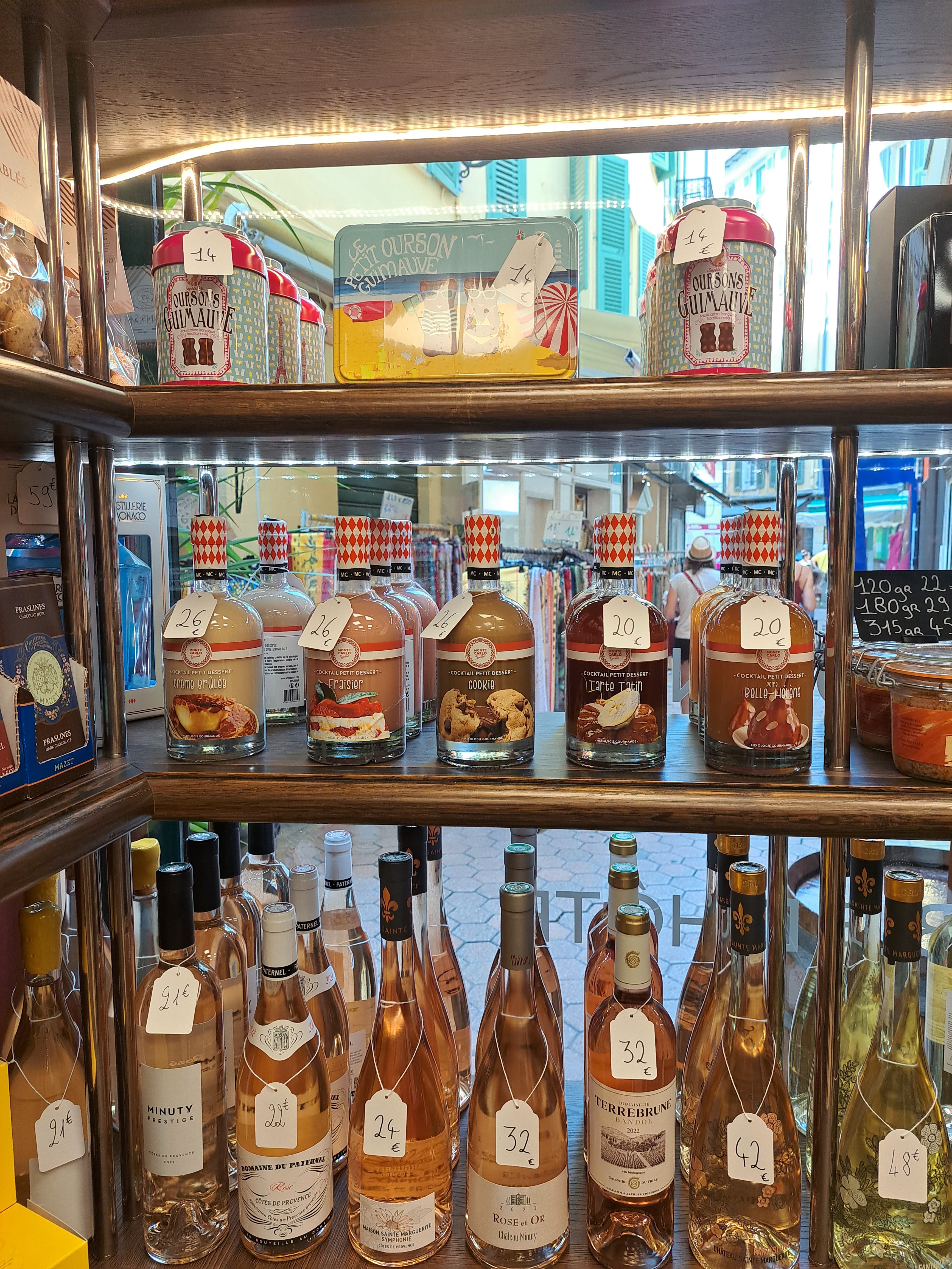 Une petite boutique dans le vieux centre de Nice. Pour les gourmets. Grand choix de vins et gourmandises associées. Vous pouvez vous asseoir à une table en terrasse.