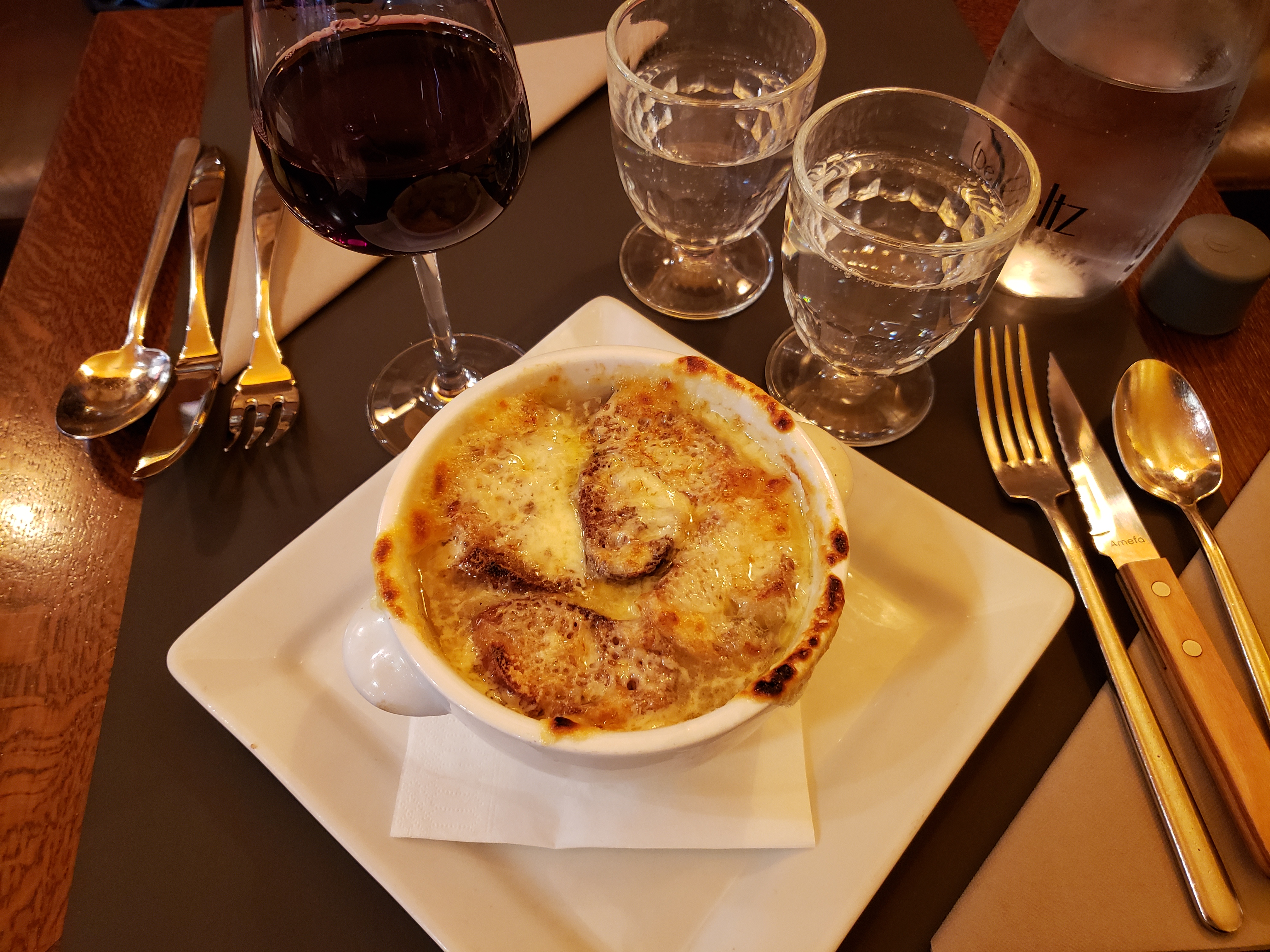 formidable. Le traitement des serveurs était très sympathique et la nourriture était délicieuse, à la fois la soupe à l'oignon, les escargots et la viande. très recommandable