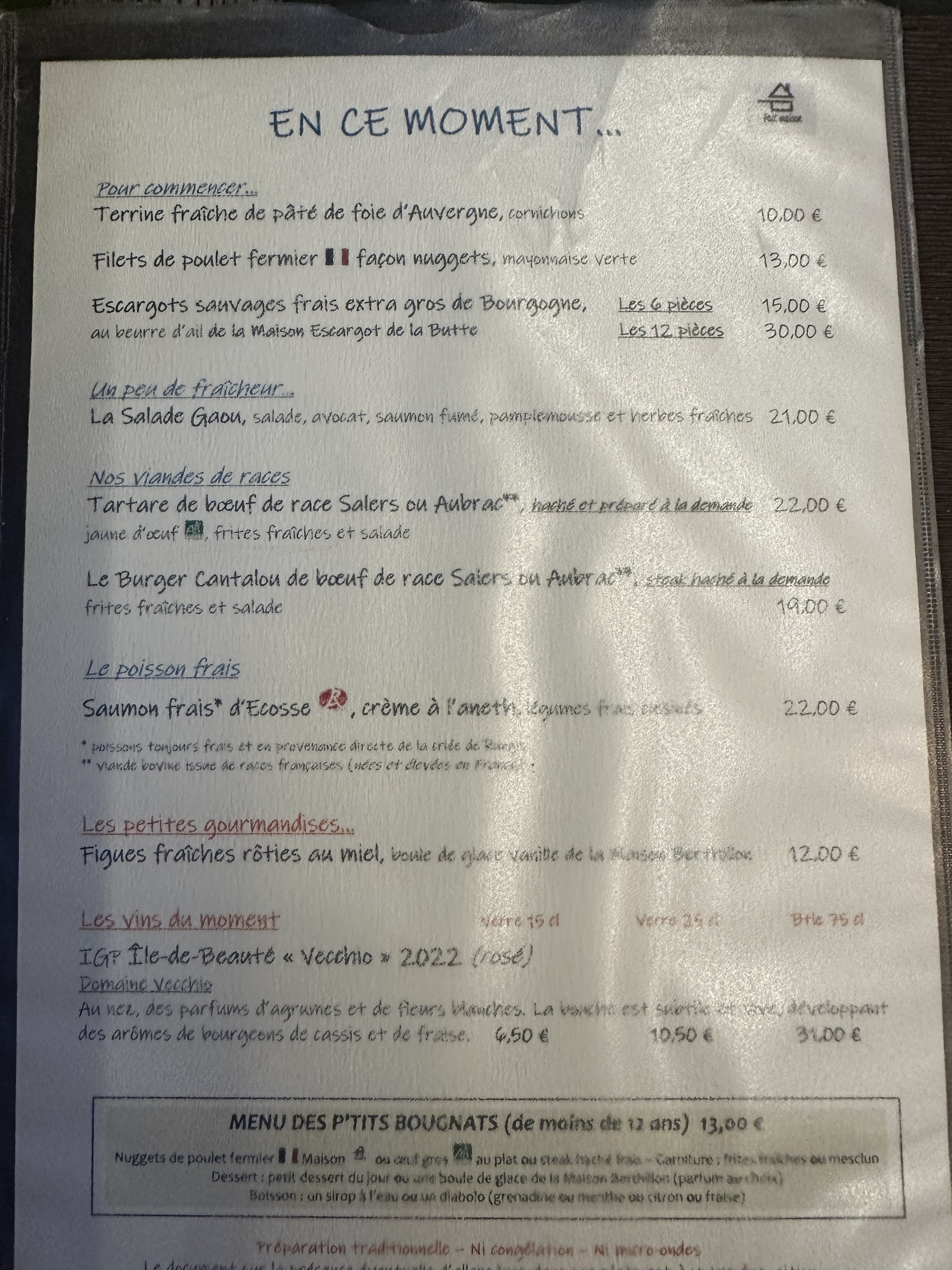 C'est bon mais pas une seule originalité sur la carte. On s'attendait à moins un aligot, un gratin ou que sais-je de auvergnat mais non, c'est steack, saucisse ou poisson avec frite ou purée