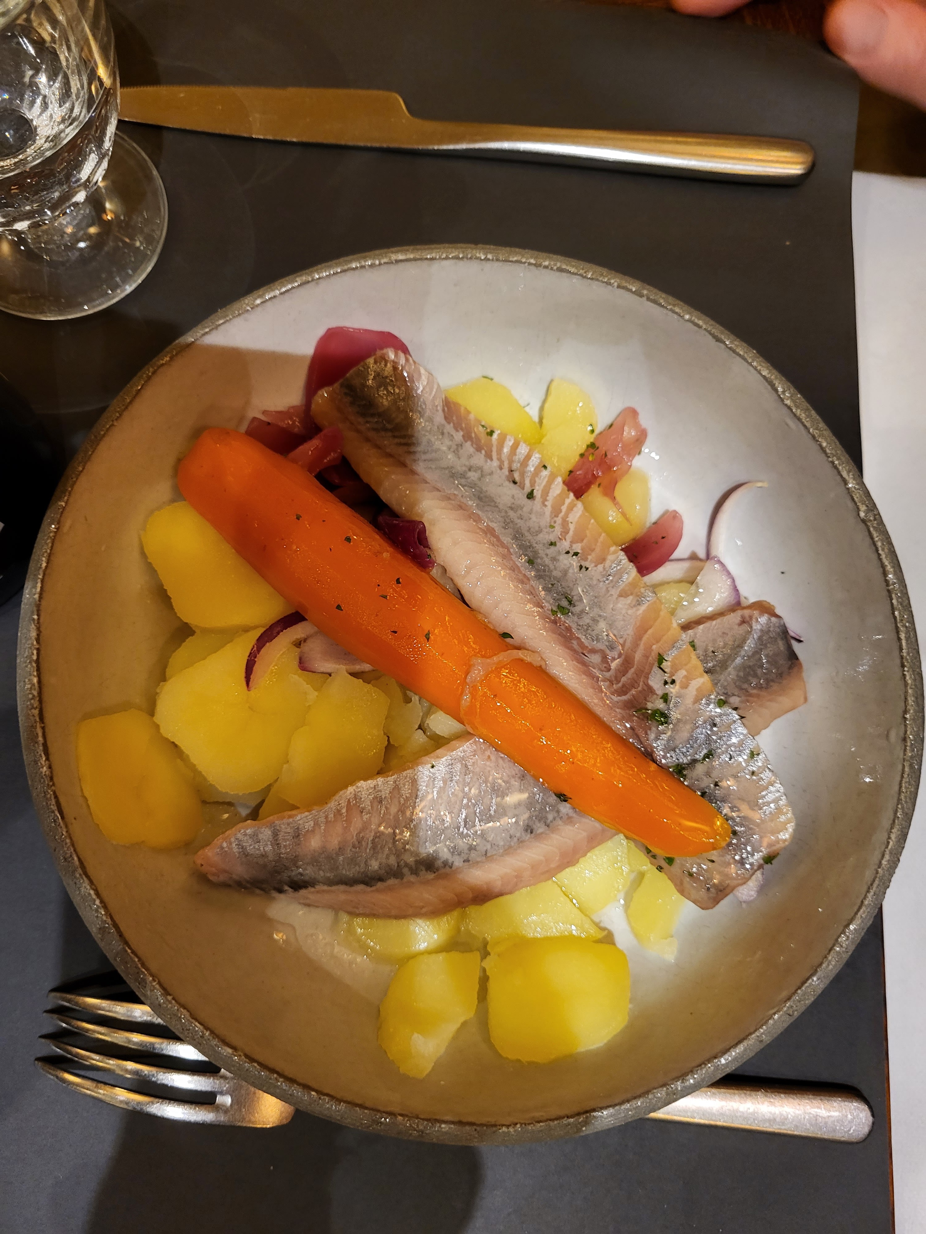 La simplicité a du bon!!! Des harengs pomme à l'huile, une soupe d'oignons gratinée, une cuisse de canard et une poitrine de porc...des produits frais, une cuisine idéalement peu salée, un service attentif. Un sans faute! On reviendra pour continuer à dérouler le menu. Bravo et merci.