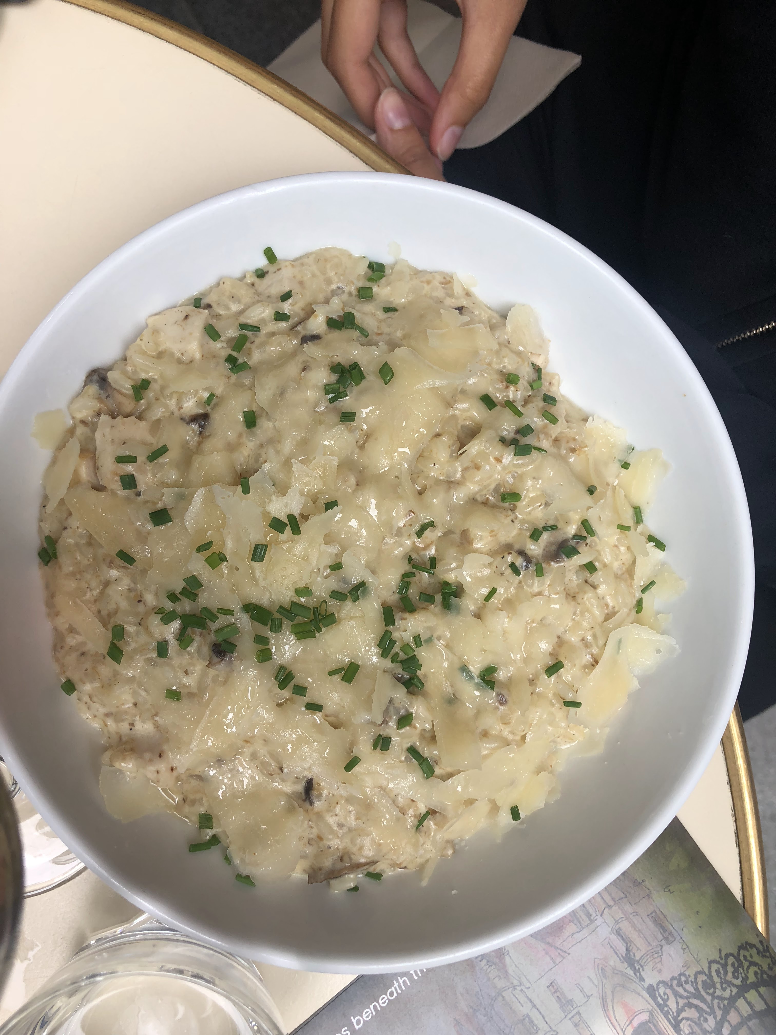 J'ai adoré la nourriture et le service. Nous avons eu des raviolis aux truffes (16 €) et une salade de poulet (16 €) - tous deux servis en portions généreuses et de belles saveurs. Le vin est légèrement trop cher, mais je suppose que c'est à cause de l'emplacement. J'y retournerais sans hésiter.
