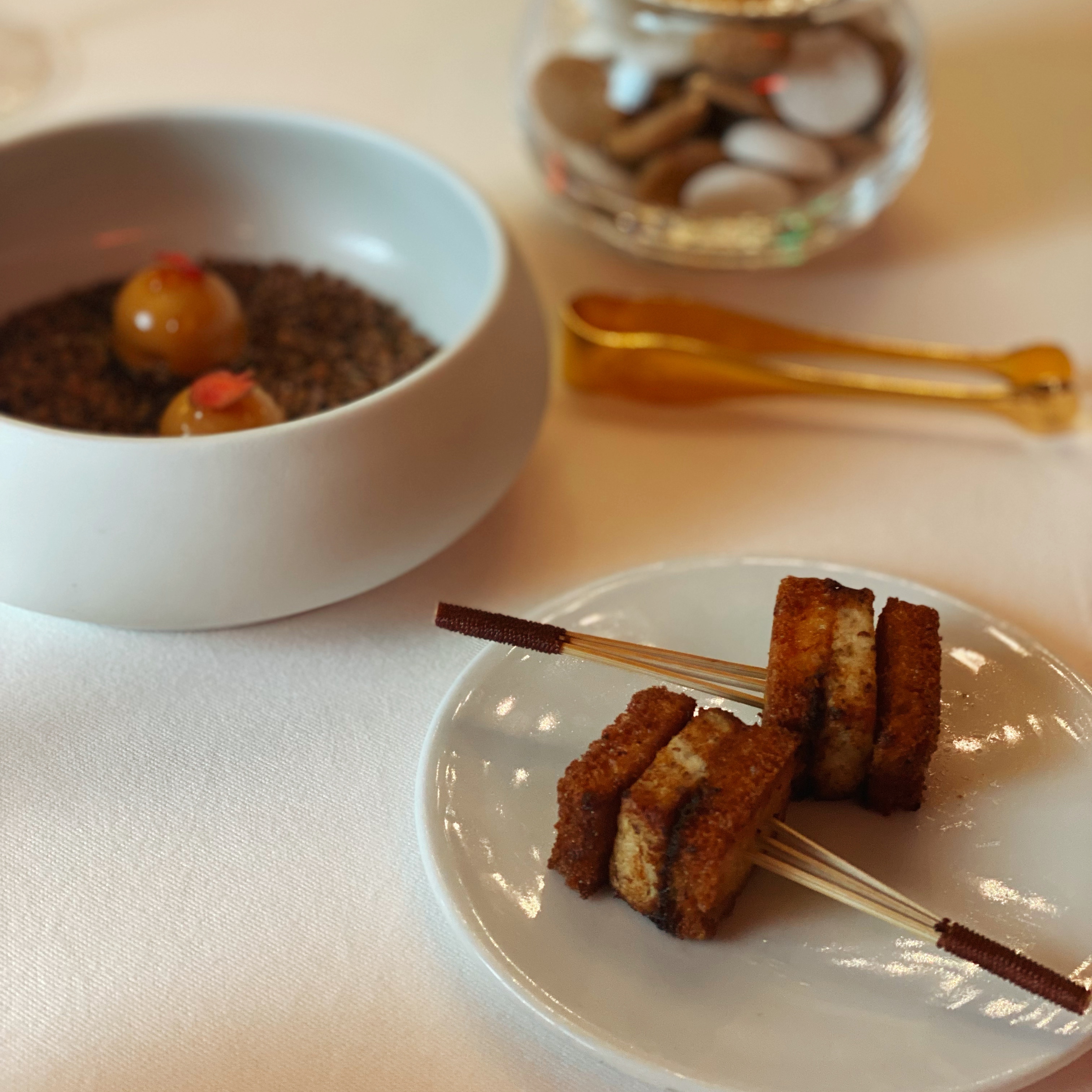 C'est une très belle adresse bien sûr ! Des éléments tour à tour délicats (tourteau) étonnants (foie gras & langoustine coques) d'autres sublimes (les ballotins d'aubergines à la rillettes de daurade 🥰) précis (porc) exquis (cigare cognac marsala) délicieux (figues) ...etc... un accord mets vins éclairé👍 avec un service clair et un Chef prévenant... une très belle soirée 👏👏👏👏
