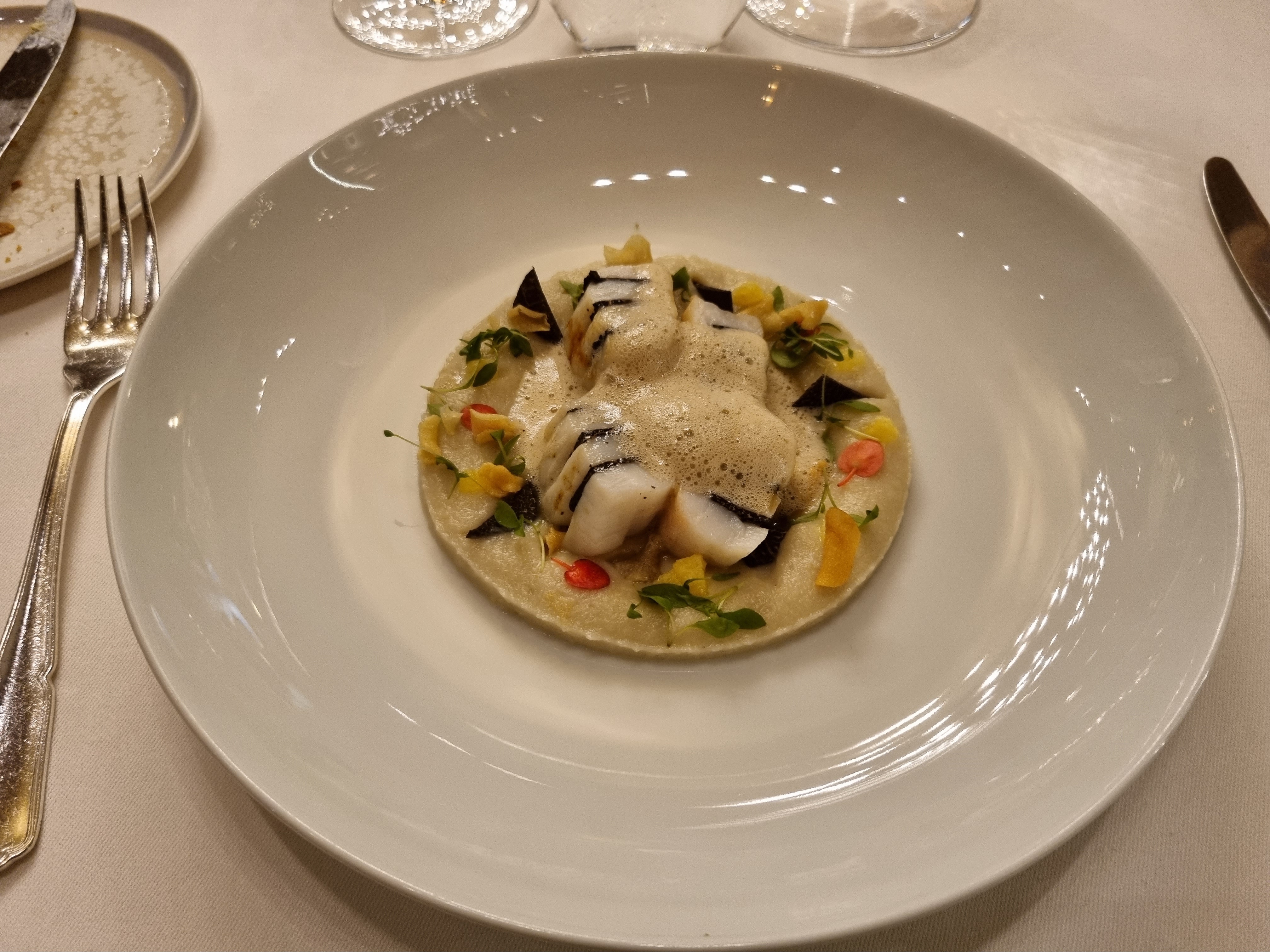 Très déçu pour un 2 étoiles. Des plats très variables : du très bon au très insipide et sans intérêt. Le tasting menu avec 8 courses est beaucoup trop généreux et impossible à finir pour nous. L accueil a été des plus hautain et ne fait pas de sentir les biens venus. Nous avons faillit partir dès l entrée et. Pis étions pourtant les premiers arrivés !! Les verres étaient tous pleins de traces blanches (encore une fois, nous sommes dans un 2 étoiles et non dans un bistro de quartier). Des moucherons qui tournent autour des plats (seule excuse ou plutôt explication du serveur « c est le quartier qui veut ça et les fleurs fraîches les attirent !!! »). Au final, plats plutôt corrects mais pas modernes et pas dignes d un 2 étoiles selon mon avis. Tout comme le service qui était au plus moyen. Dommage, j en attendais bien plus.