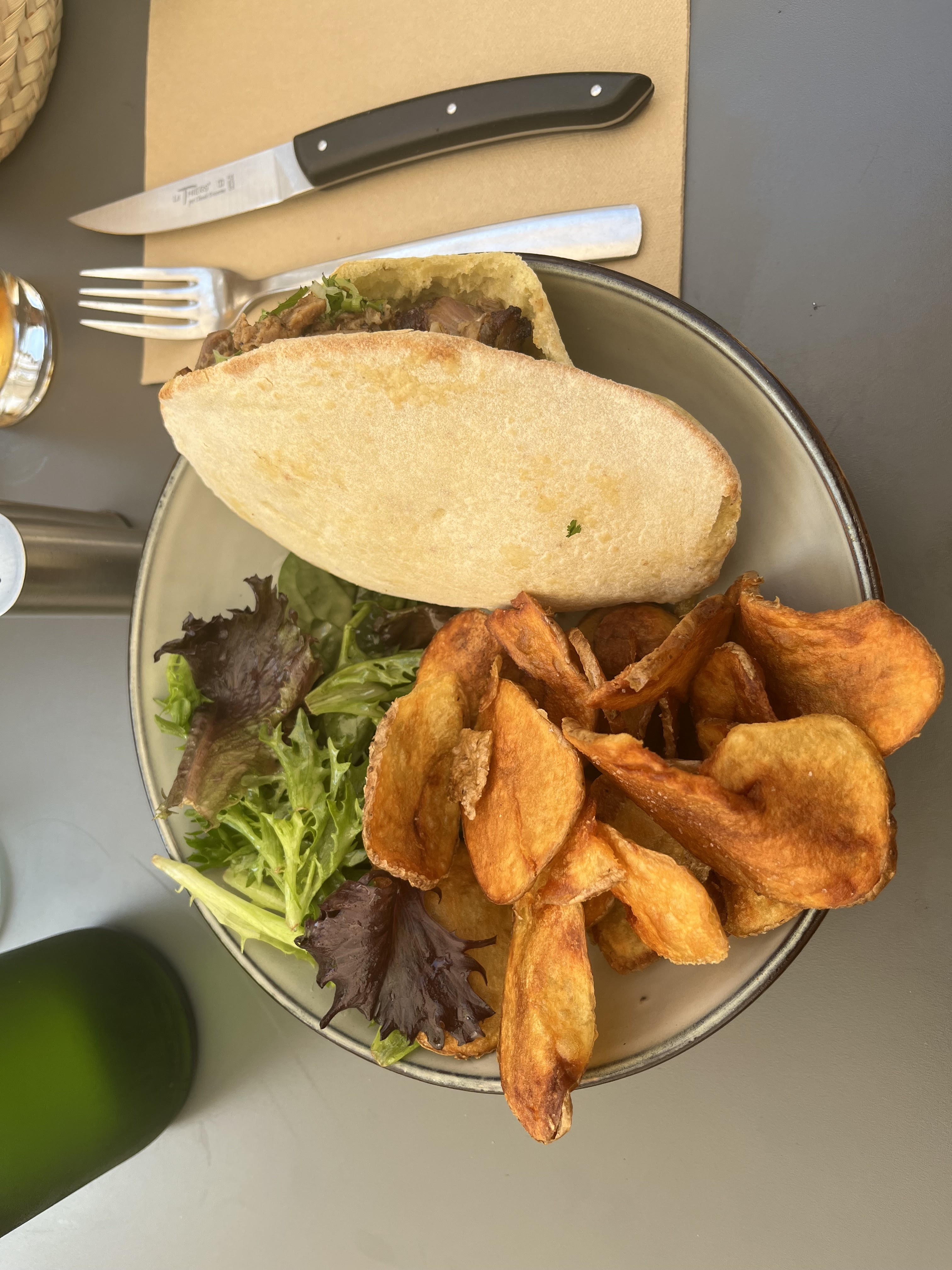Super repas partagé en famille ce midi. Un gros coup de cœur pour la pita. Menu enfant copieux et de bonne qualité. Cadre super sympa et dépaysant. Le seul bémol c’est l’attente pour nos plats après ceux des enfants ce qui m’a empêché de goûter ce cheecake qui me donnait tellement envie. Mais à refaire car vraiment une belle découverte.