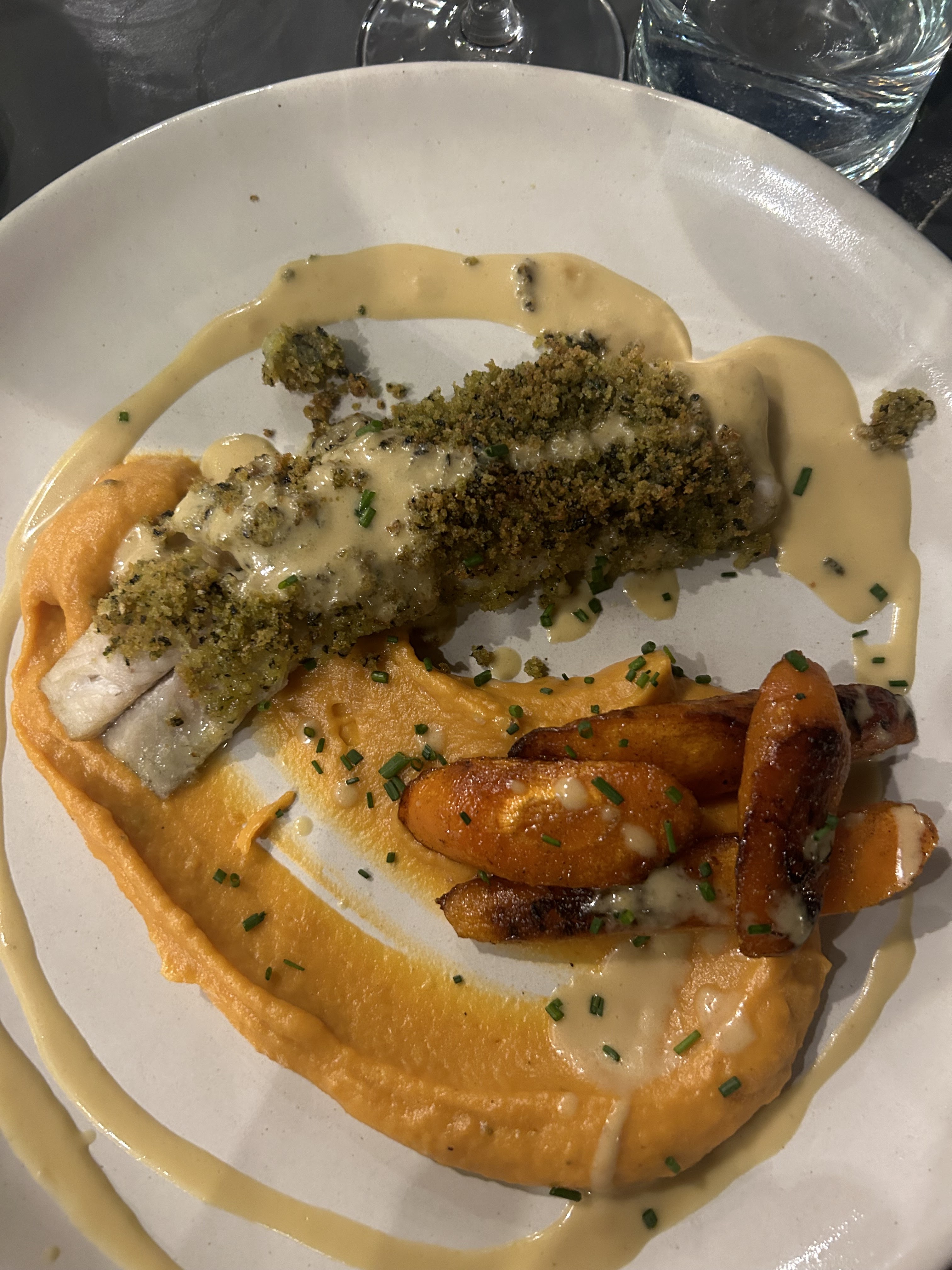 Rien à dire. Tout était parfait. Foie gras tatin suivi d'un dos de lieu noir. Tout était délicieux et raffiné . Des saveurs magiques. Vous pouvez y venir les yeux fermés.