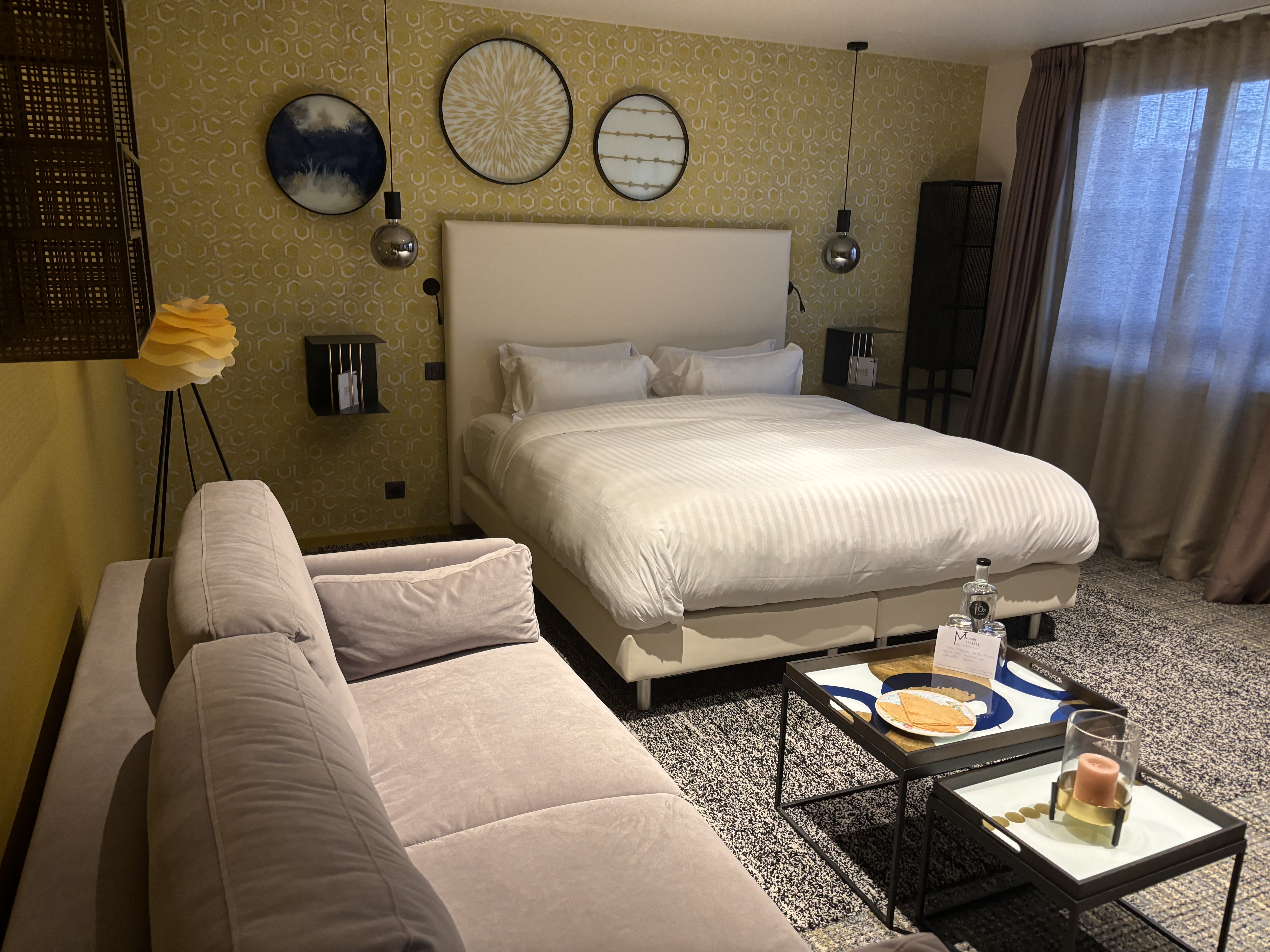 Accueil chaleureux avec un accompagnement jusqu'à la chambre. La chambre est décorée avec goût et la literie est fabuleuse. Nous avons dîner au restaurant gastronomique, cuisine qu'on a plaisir à déguster, service agréable et belle carte des vins. C'est un établissement qui vaut véritablement le détour par sa qualité de service. Merci beaucoup pour cette chouette parenthèse.