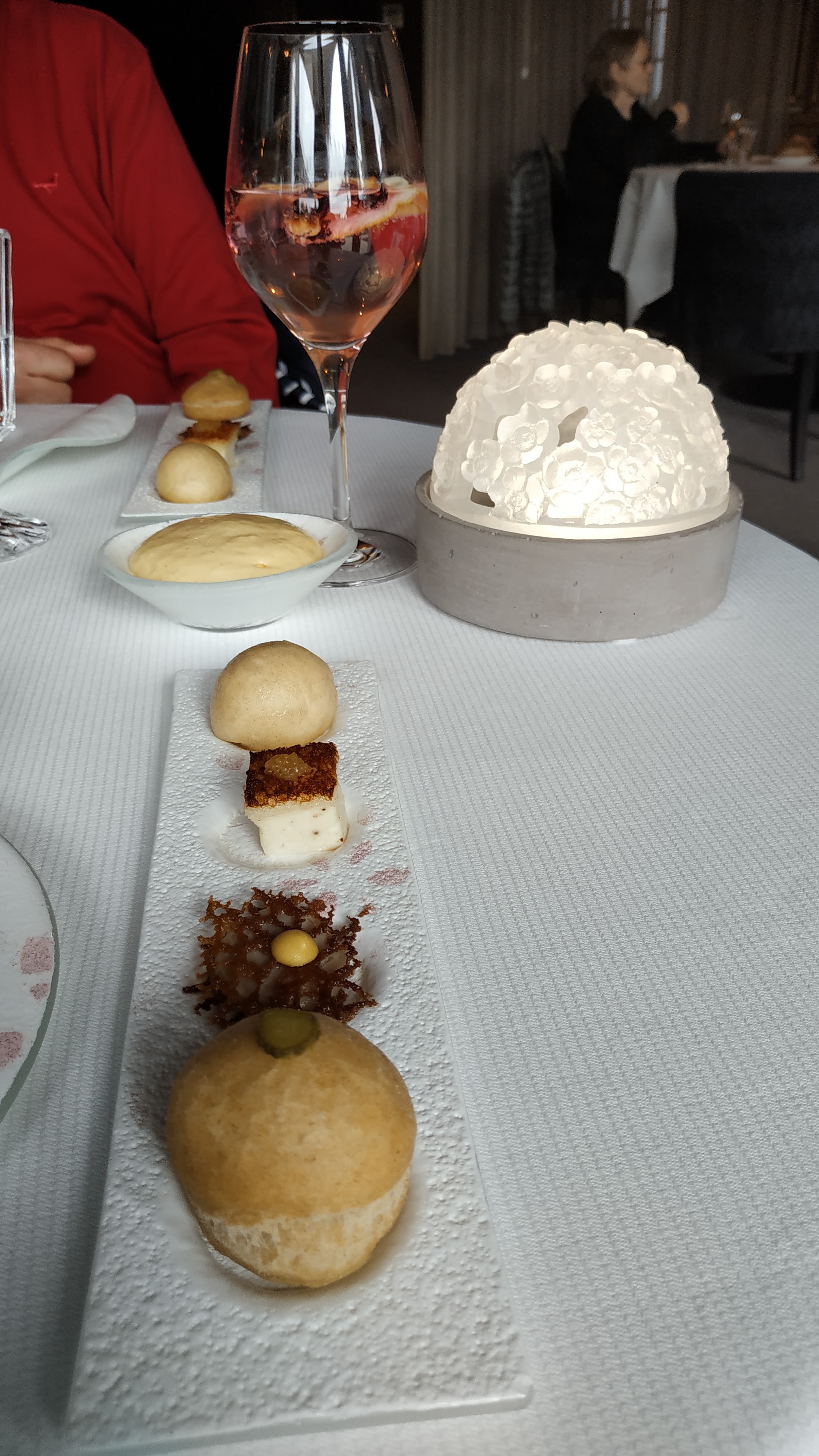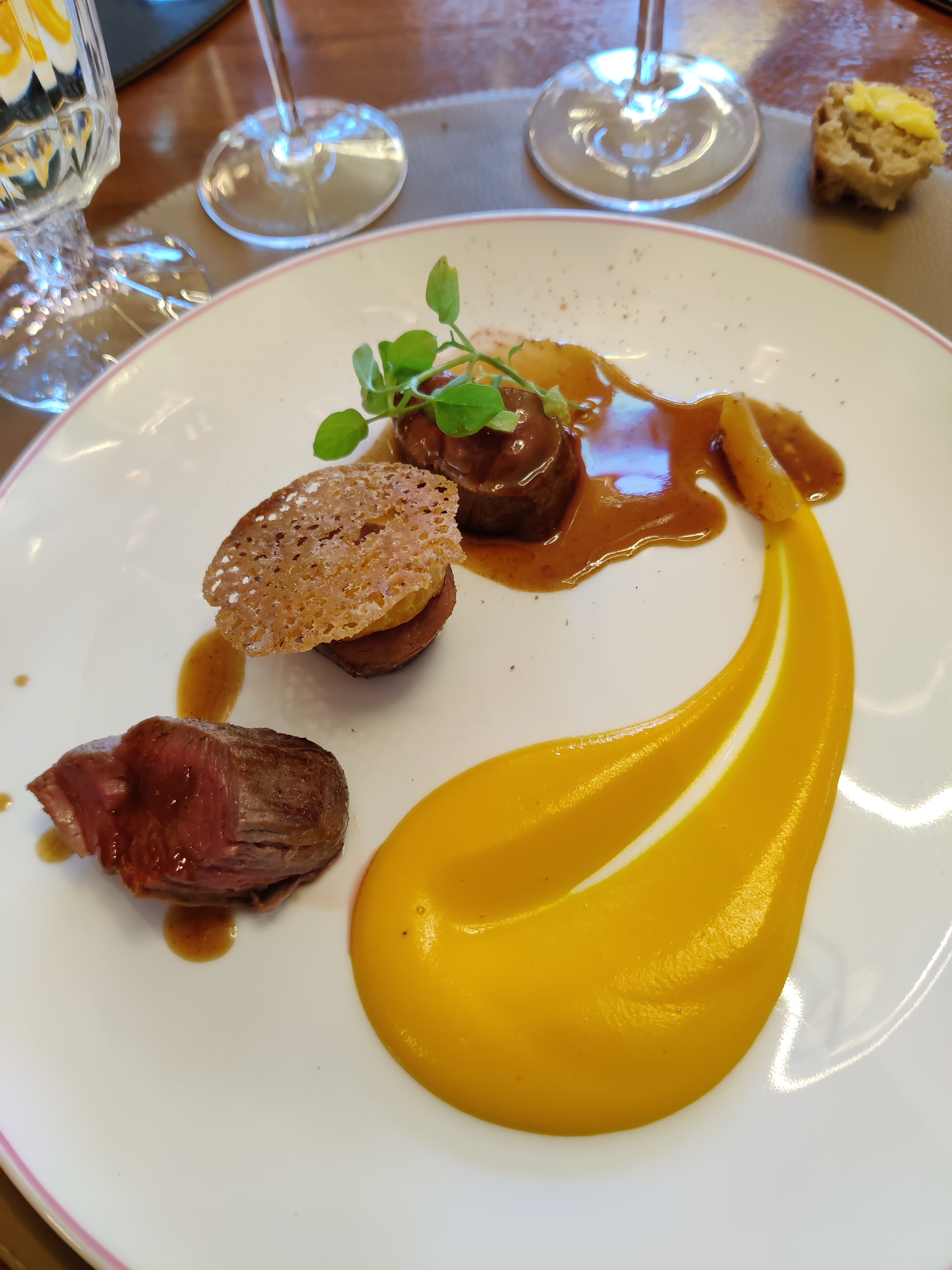 Bon... Et saveurs...présentes.. Bémol sur le fait de ne pas pouvoir choisir à la carte.. Ce n.est plus le même menu pour la tablée mais pour tout le restaurant.. Seul choix restant au visiteur.. 4 plats ou 5..ou 6 ou 7.. Avec les prix crescendos.. Bon ..2 desserts sur 5 plats font que côté salé on a peu de choses.. Petites portions comme souvent dans les gastro mais là encore plus.. Le pigeon était très saignant et l assiette pas très jolie ni engageante.. Cela dit service impeccable et personnel gentil... Je dis...que c est pas trop mal pour une étoile et le chef est jeune..mais il y aurait des choses à faire évoluer..et offrir du choix..c est quand même agréable de choisir ce que l on.aime à ces prix là.. Et se faire goûter en amoureux des choses différentes....