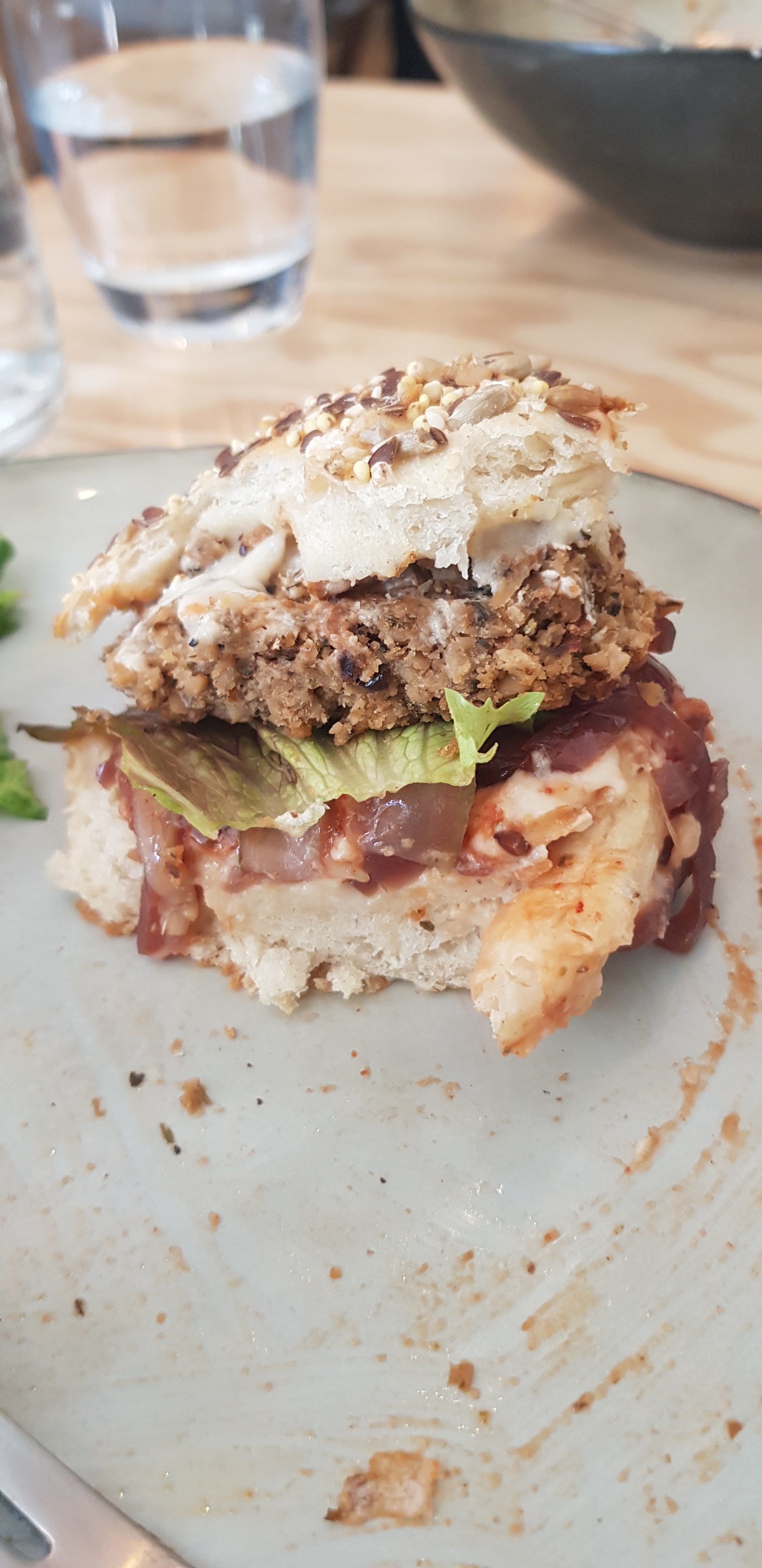 Délicieux burger au seitan. Bien copieux et délicieux. Dommage je n'ai pas pu goûter les desserts 😊