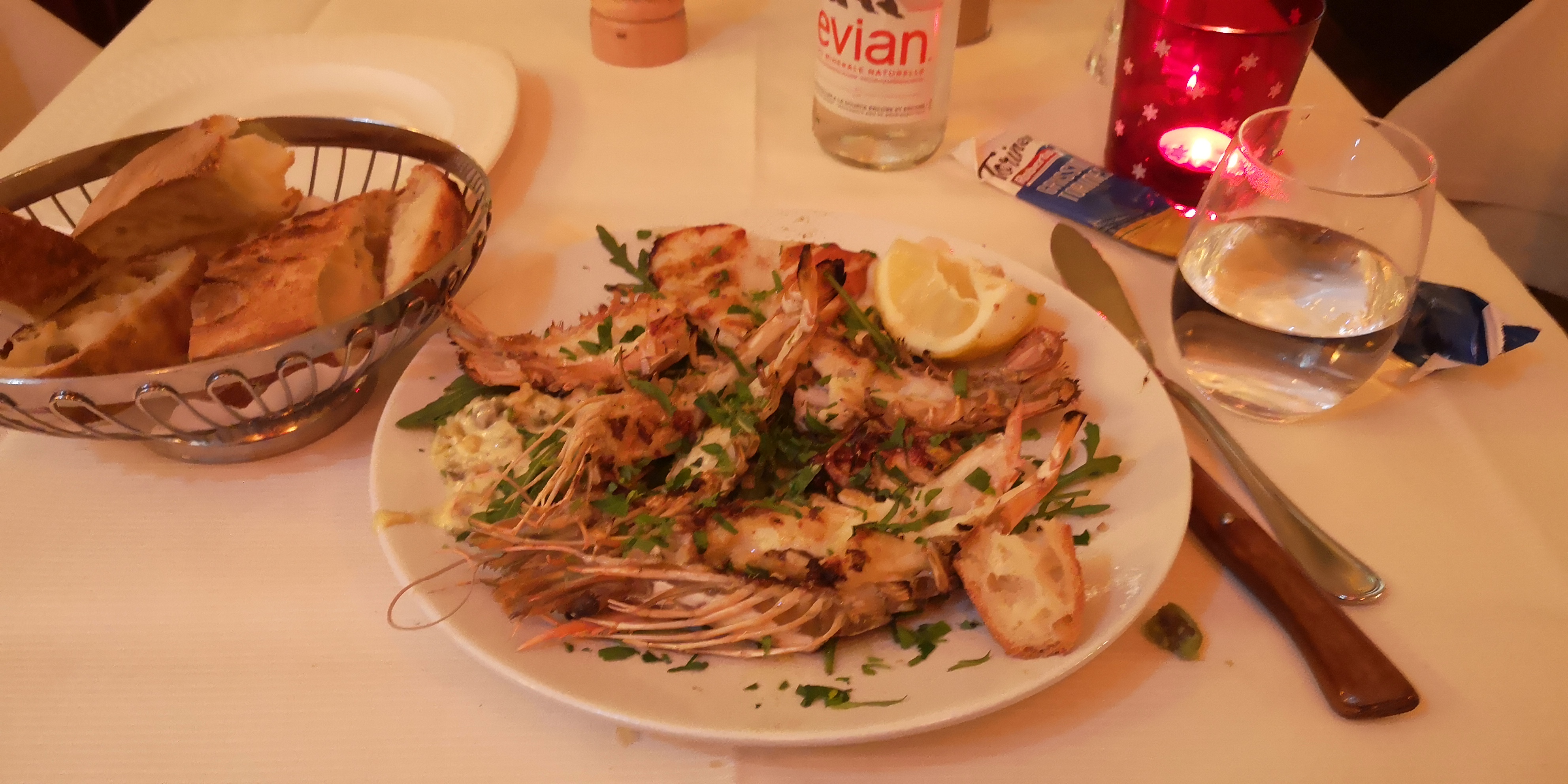 Le seul aliment que j'ai essayé était des crevettes grillées. Le restaurant a une ambiance familiale et regorge de personnes âgées et d'amis. Ce que j'ai remarqué, c'est que les employés étaient très courtois, et c'est rare quand tous les employés sont sympathiques, surtout à Paris. Si cela indique quelque chose, cela indiquera le chef du groupe Merci tu as fait ma journée