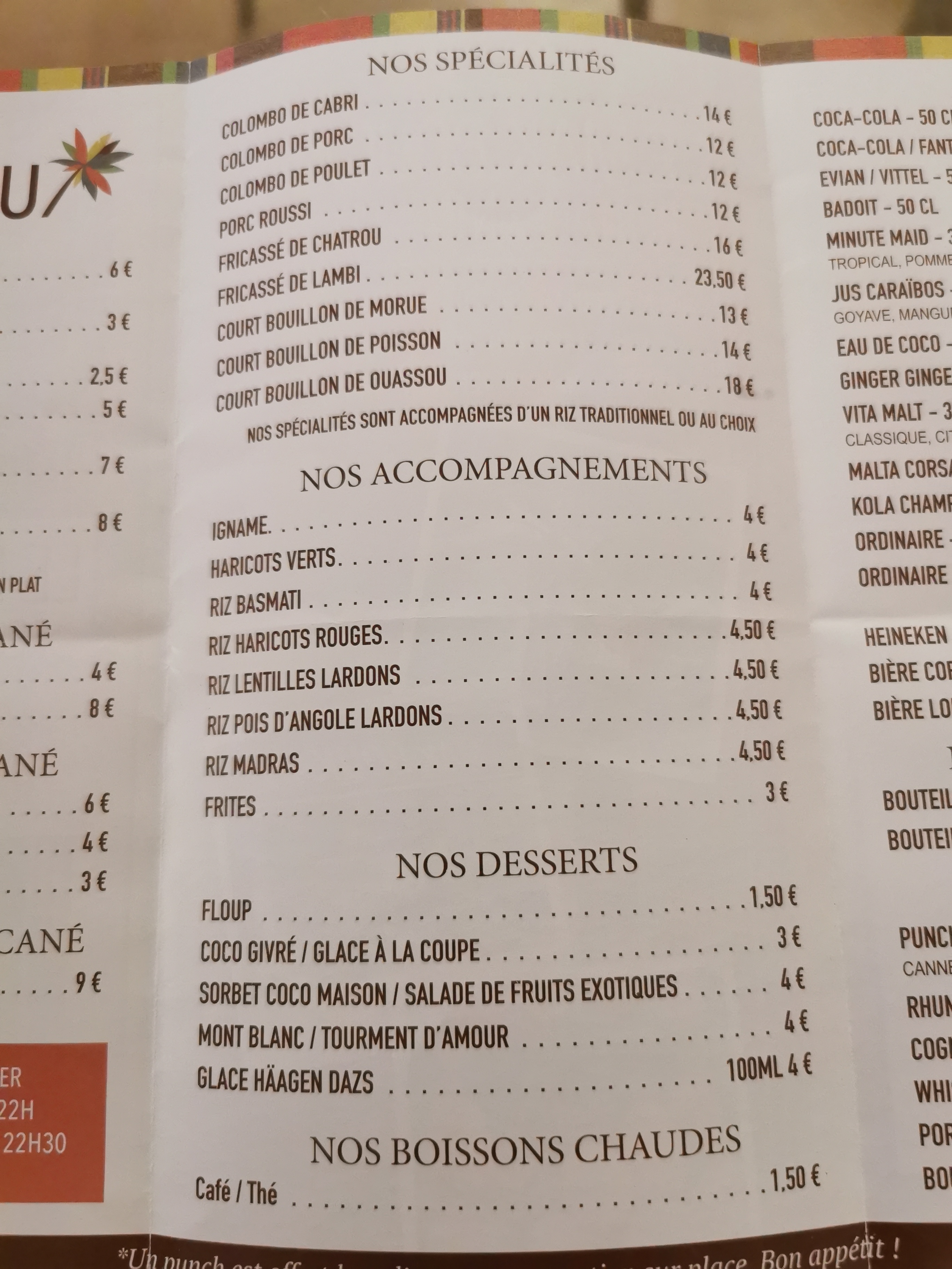 En voilà une petite adresse sympa ! Et ça ramène du soleil ! Petit rhum, plats antillais traditionnels. Que du bonheur !! Très bon rapport qualité-prix ! Faut tester si vous passez dans le coin ! Au pire, on peut prendre à emporter 😁