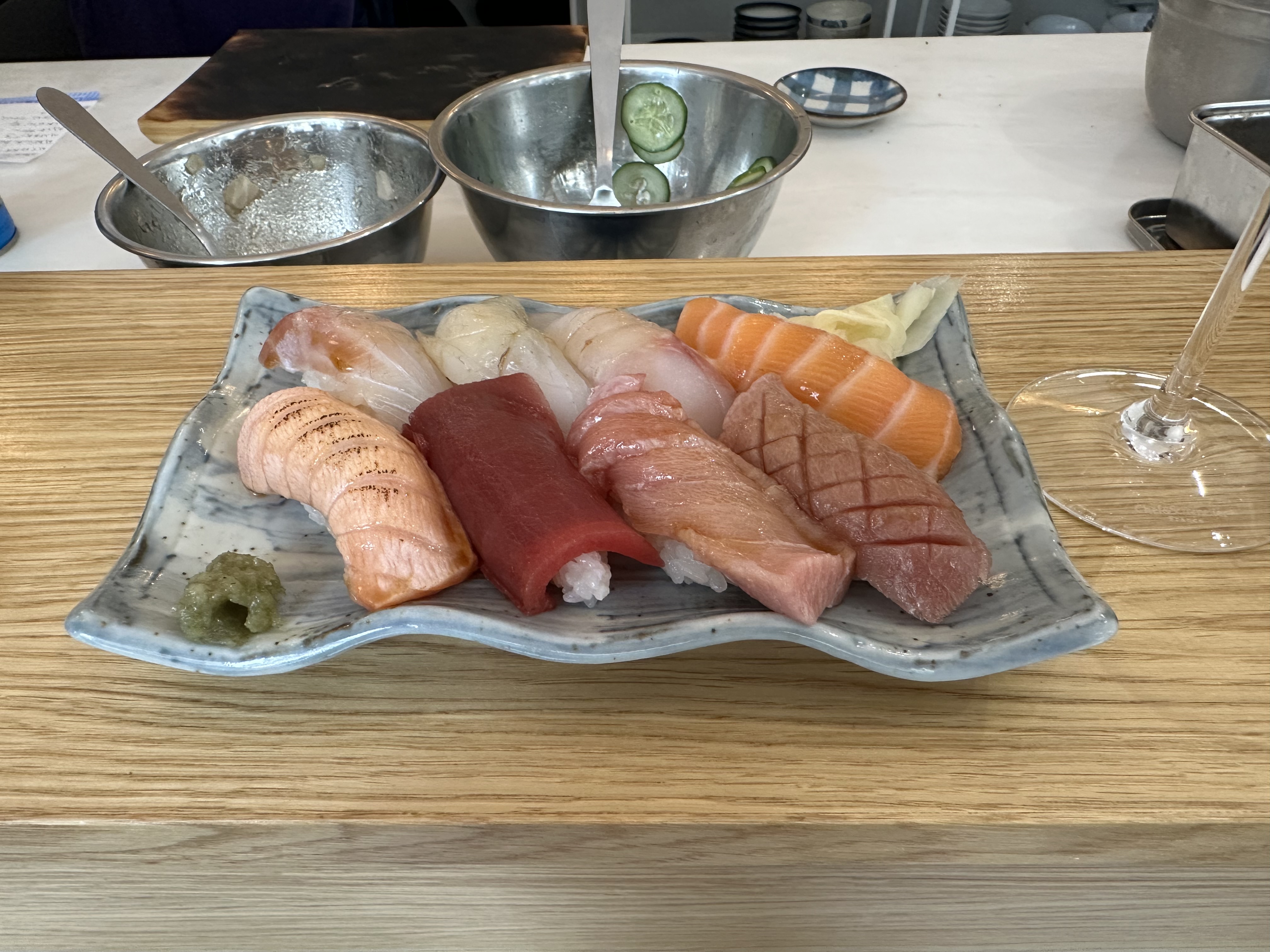 Je viens de déjeuner dans ce merveilleux restaurant japonais de notre rue. Quel trésor inattendu. Ce bar à sushi est très cosy, où les convives s'assoient autour du chef et le regardent travailler. Merveilleusement frais et d'une qualité exquise. Cela faisait longtemps que je n'avais pas mangé d'aussi bons sushis. Je ne suis apparemment pas le seul à être content. Ce n'était pas facile de trouver une place spontanément.