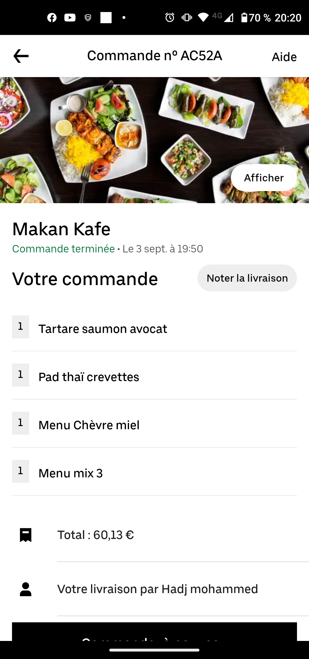 60€ pour 4 plats en uber Eats degeulasse ! Froid bâclée je y retournerai plus