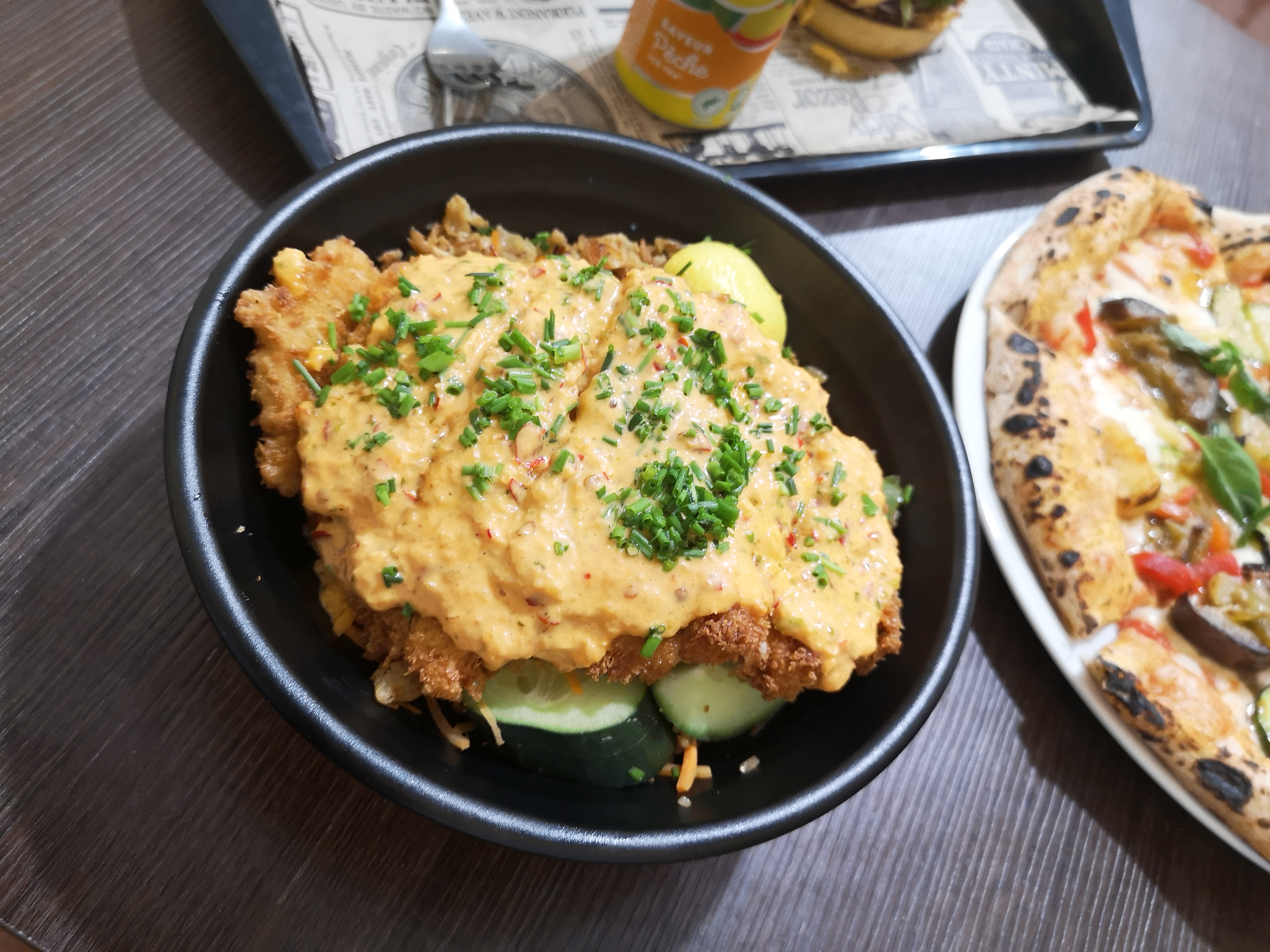 Depuis que je connais l'existence de ce resto, c'est devenu ma cantine. Les plats sont très copieux et très varies car le resto prose une diversité de cuisine, Thai, chinoise, pizza, burgers, japonais et des supers poke bol, poulet grillé... à des supers prix, de quoi ravir tout le monde. Terrasse agréable mais un peu brillante car l'axe est passant, mais diverses salles cosi et une déco moderne rendent le lieux très agréable. Je vous le conseille vivement. Autre particularité du lieu qui mérite de la faire vivre et connaitre, c'est que l'ensemble du personnel est en en contrat d'insertion professionnelle et que sont principe est associatif pour aider les personnes un peu en manque de repères... Alors c'est encore plus génial a mon avis. Allez y foncez ! Visité en août