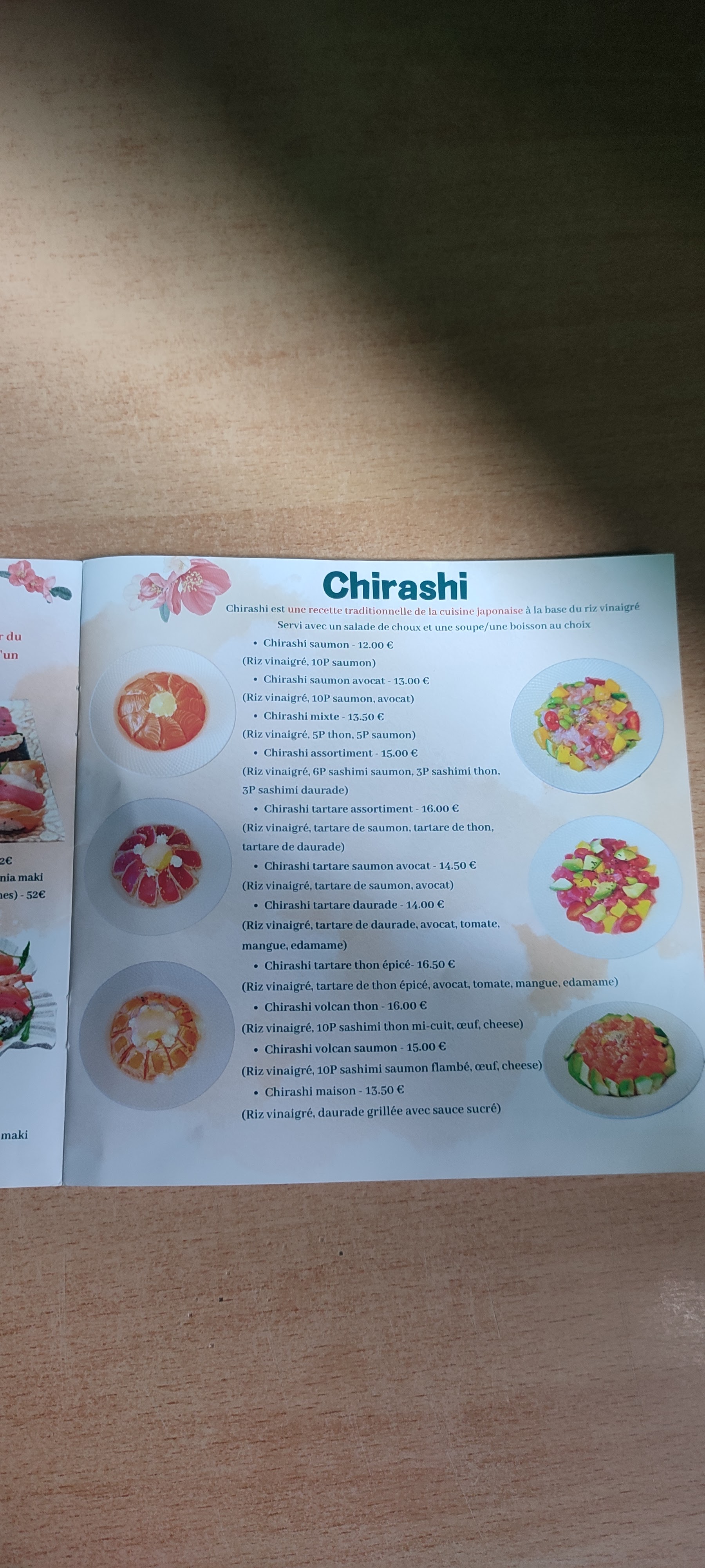 malheureusement déçue, temaki très peu garni, chirashi non cuisiné extrêmement basique et sans saveur (bouts d’avocat, poisson et mangue posés sur une enorme couche de riz, sans sauce ni rien et le tout pour 19€…) mais surtout plats arrivés tièdes, moyen pour du poisson cru. Je ne recommande pas