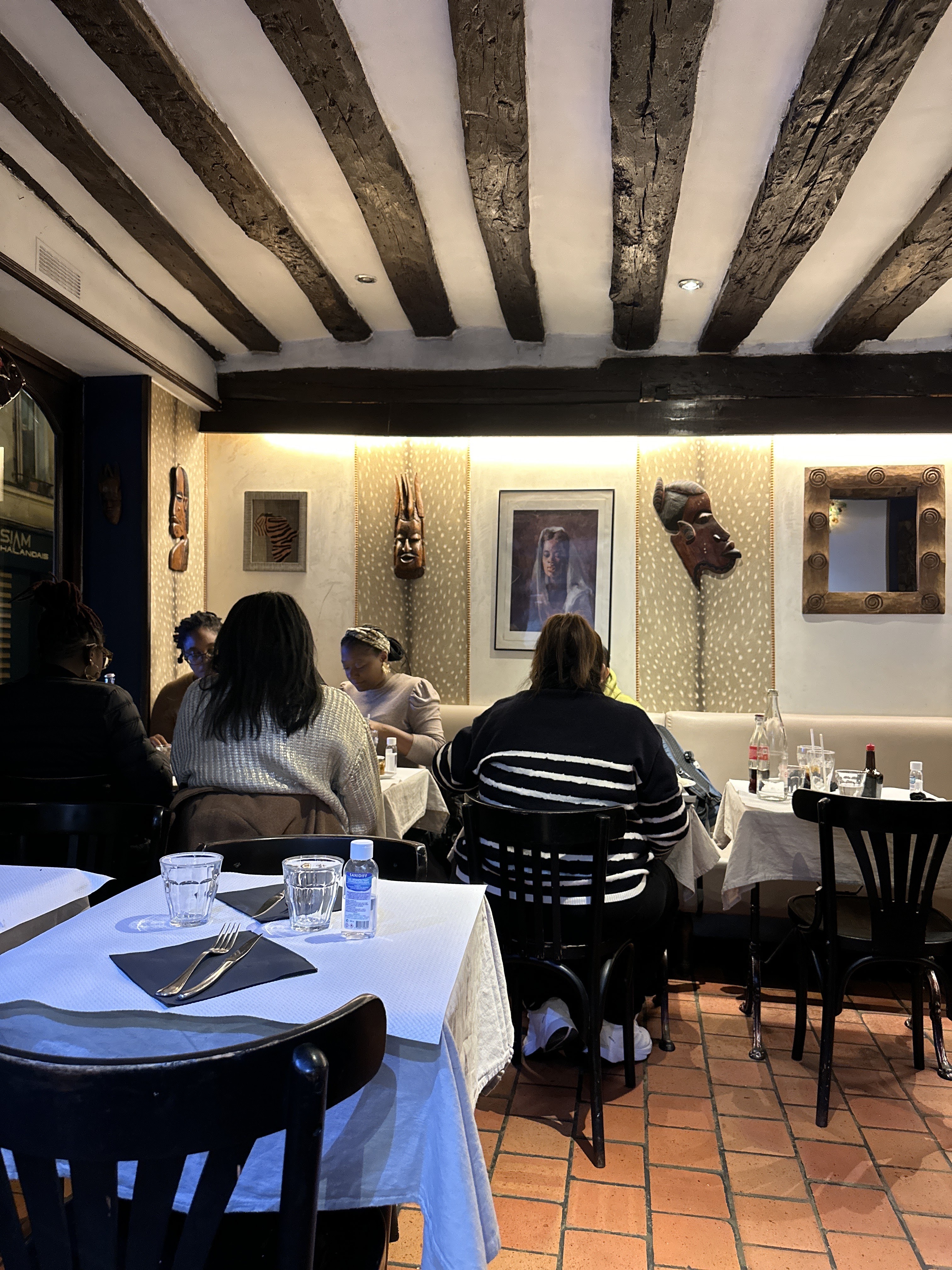 ❝ Poutres apparentes, masques africains, nappes à carreaux et spécialités africaines (dont poulet braisé). ❞