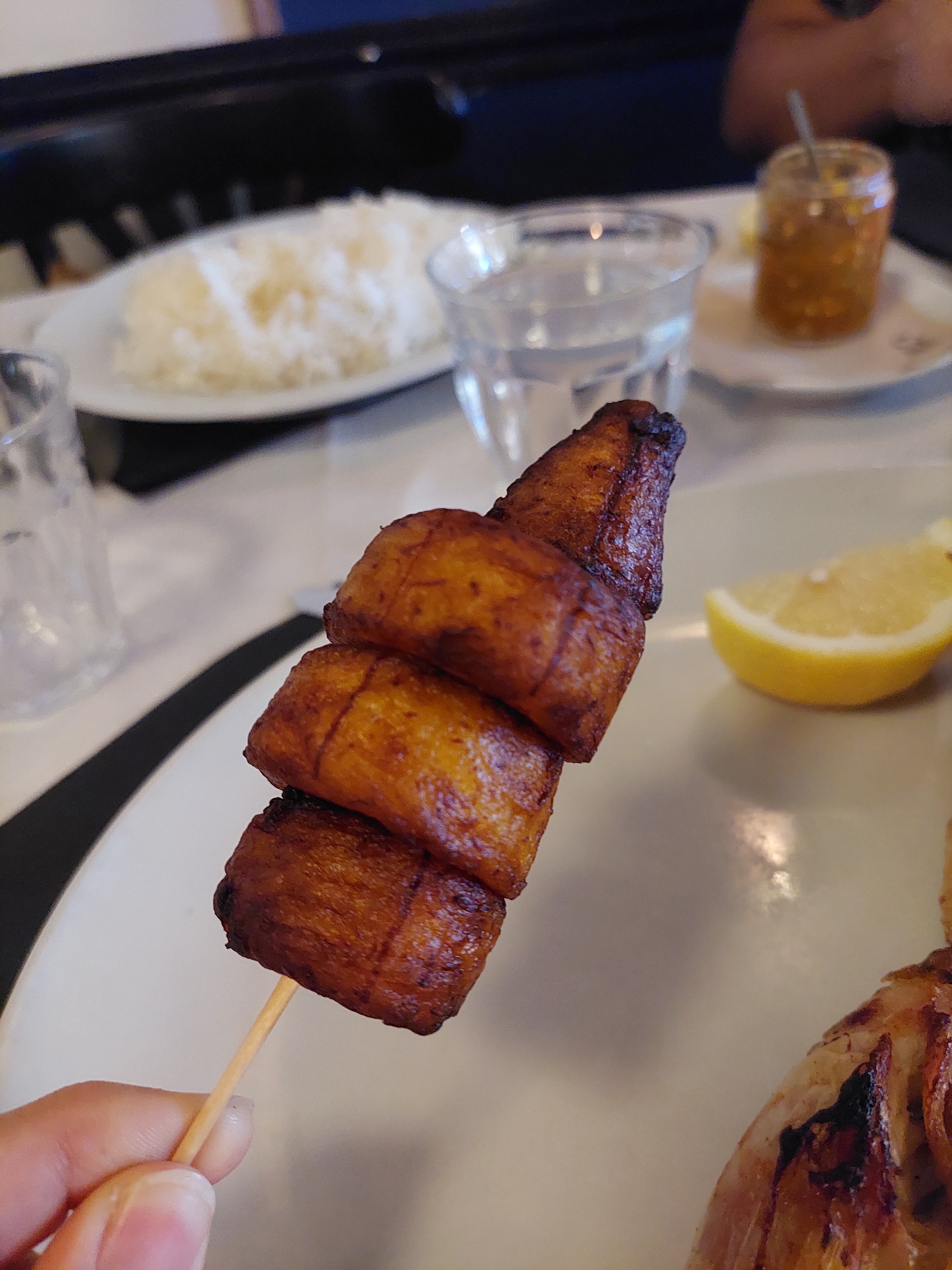 un poulet braisé t’as peur frère. hey, déjà y’a une ambiance super cosy t’as l’impression d’être à la maison, mais en plus c’est bon sa mère. et les bananes plantains…. oh mon dieu! succulentes à point. la prochaine fois je prends autre chose que le poulet promis.
