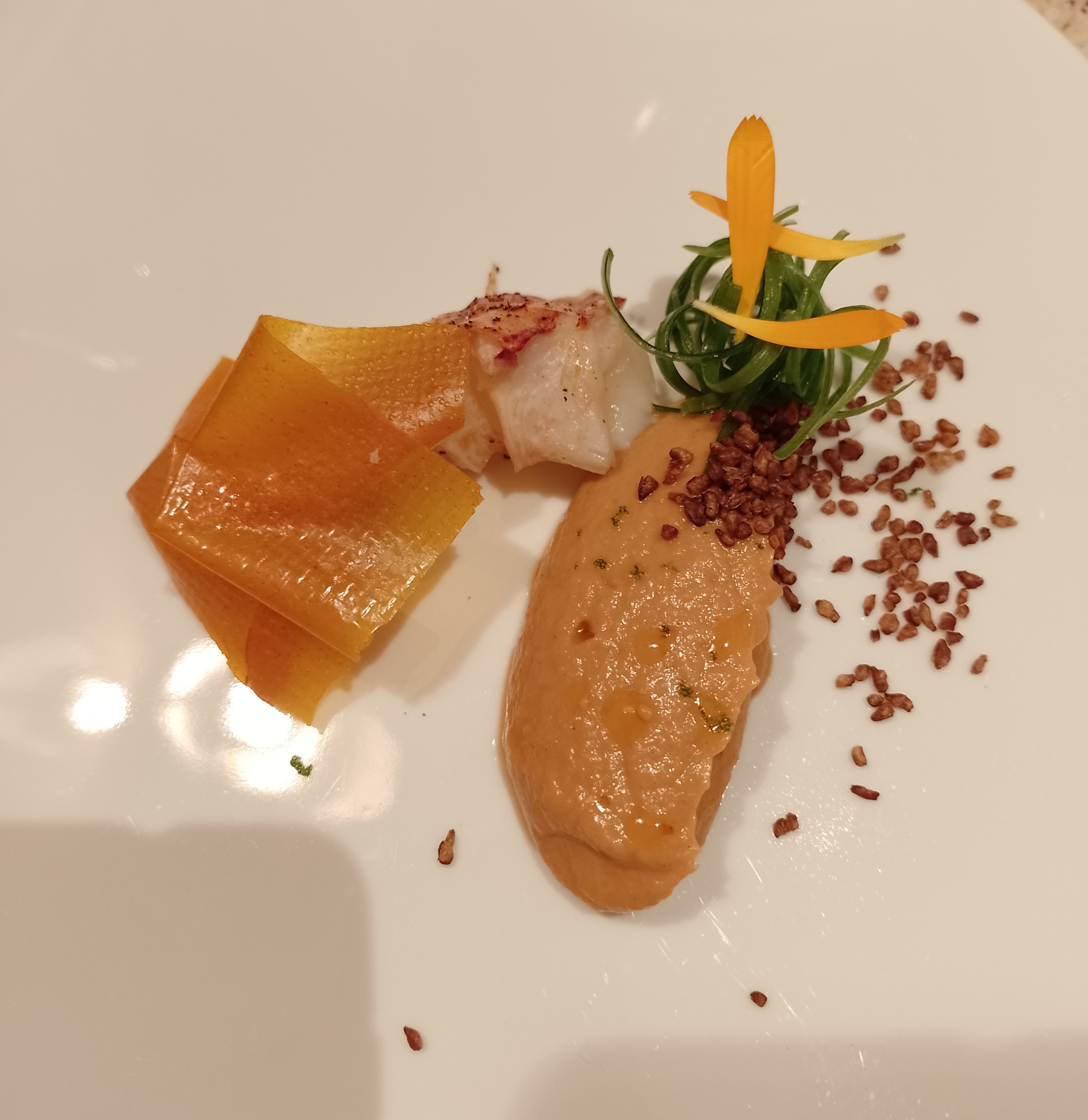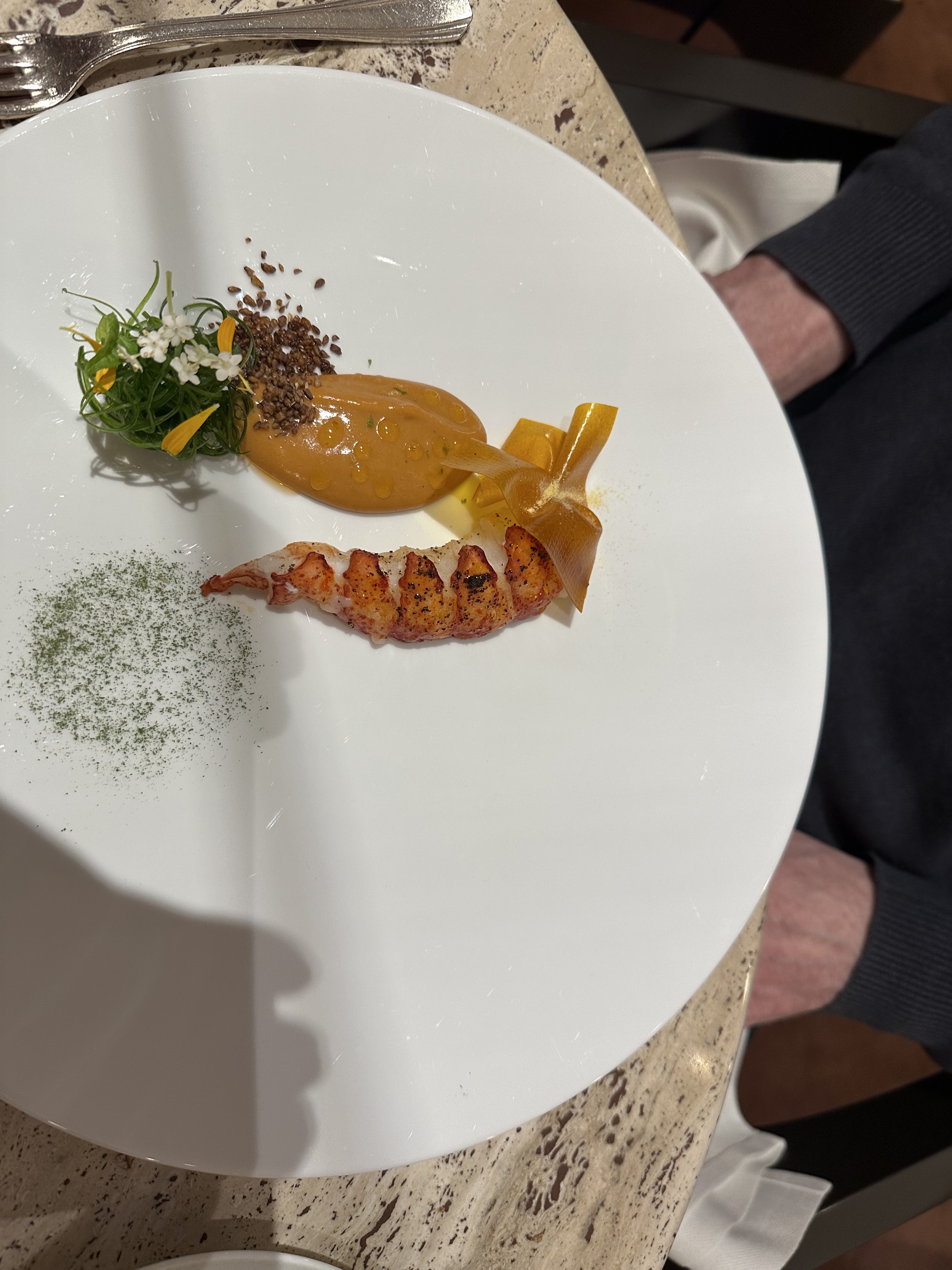 Un peu déçu par l'expérience. Les portions sont trop petites, surtout l'entrée avec la langoustine. Les goûts sont délicieux mais on a pas le temps d'en profiter ! Un des serveurs n'est vraiment pas souriant, dommage ça gâche le plaisir, merci aux deux autres qui relèvent le niveau de l'accueil. Je ne recommanderai pas à mon entourage. Le rapport prix / plaisir est un peu élevé.