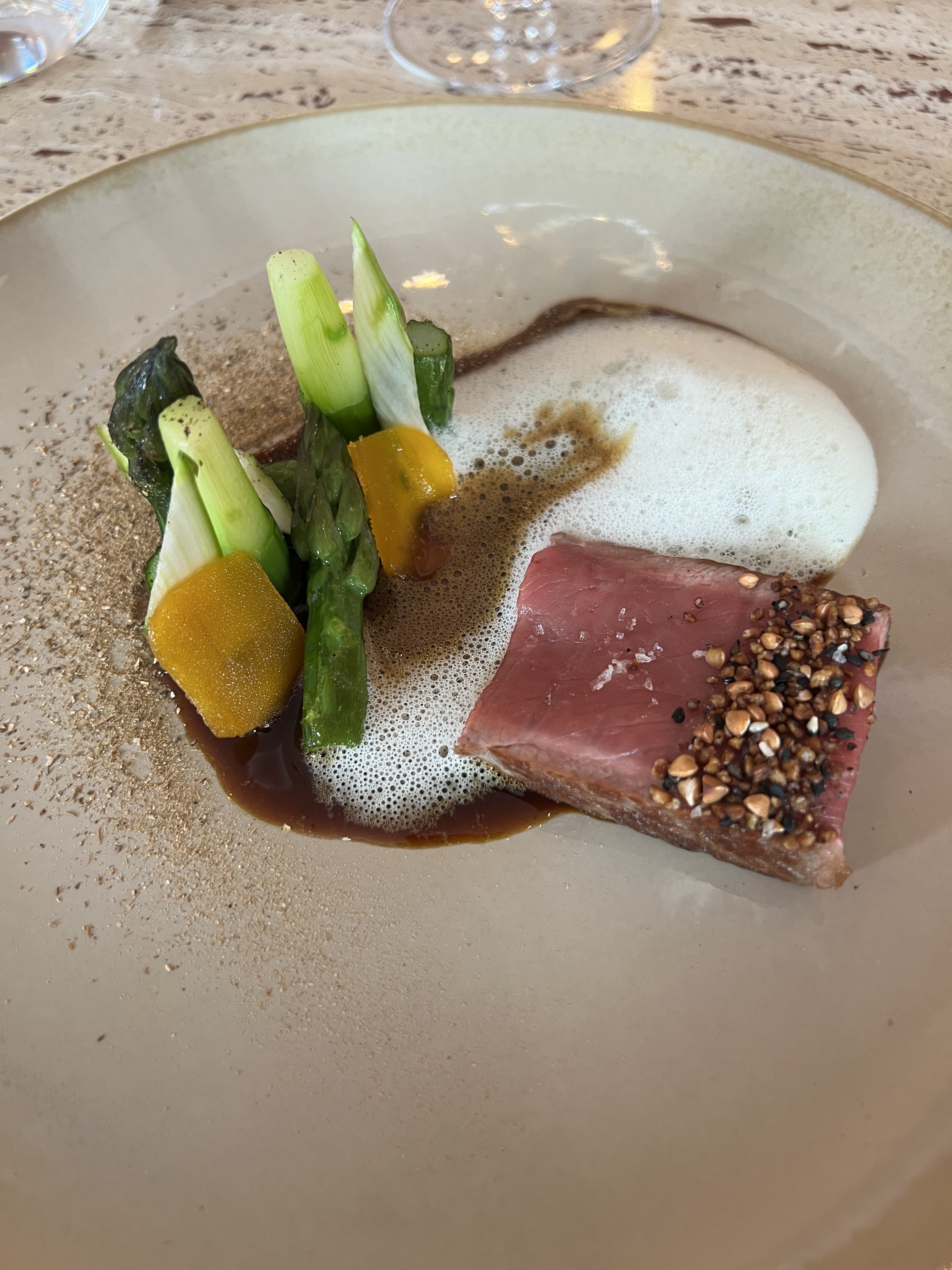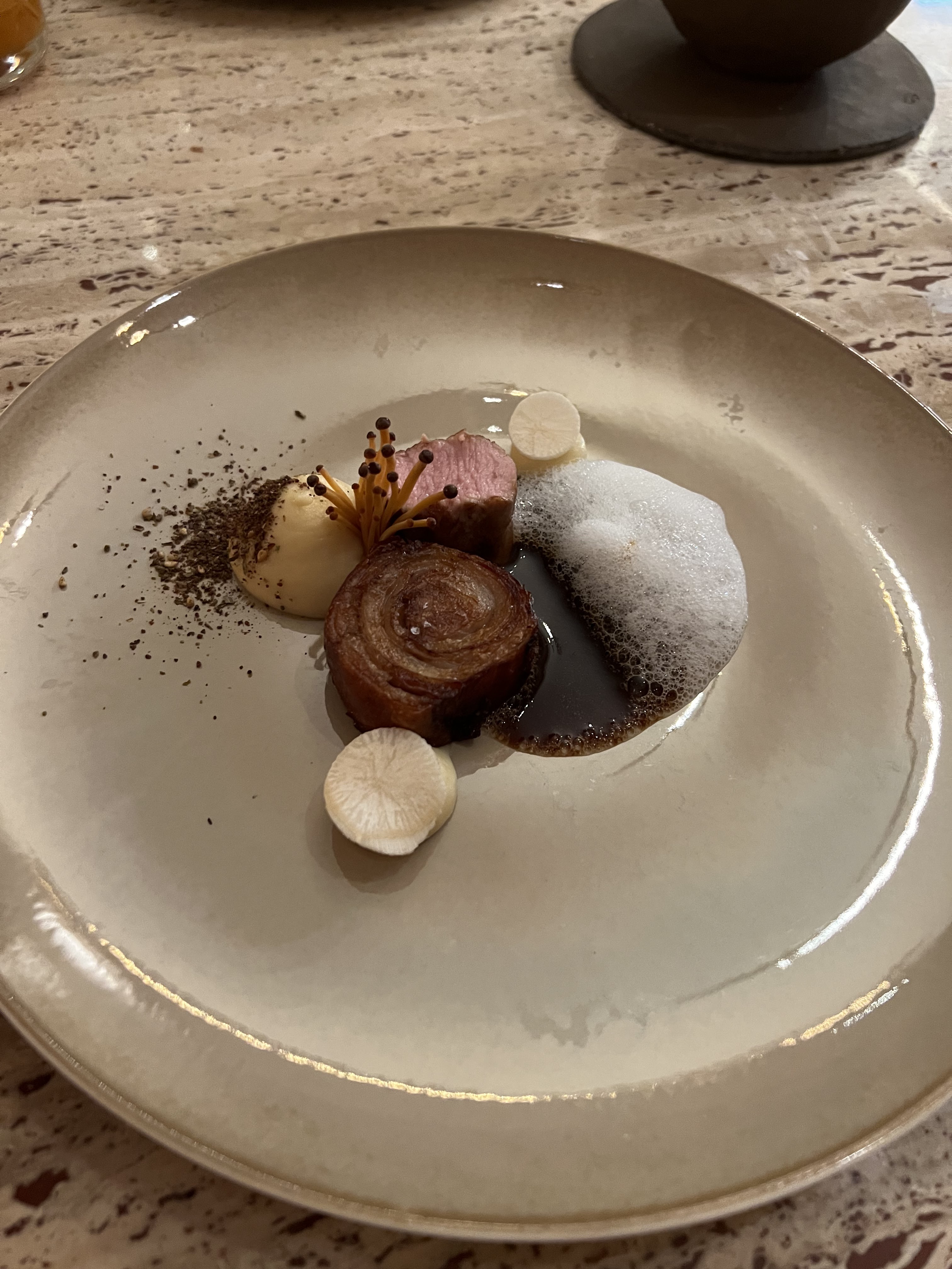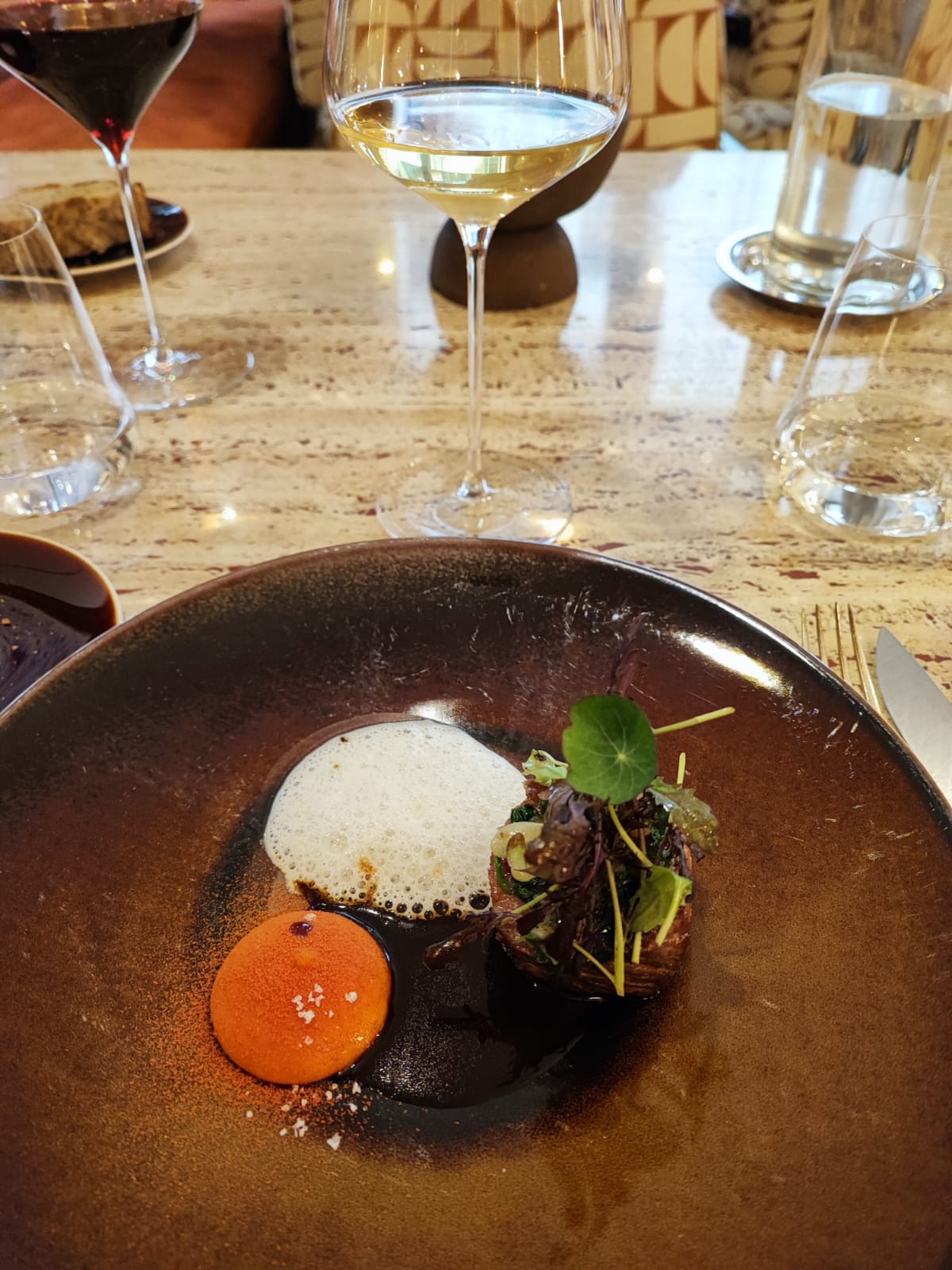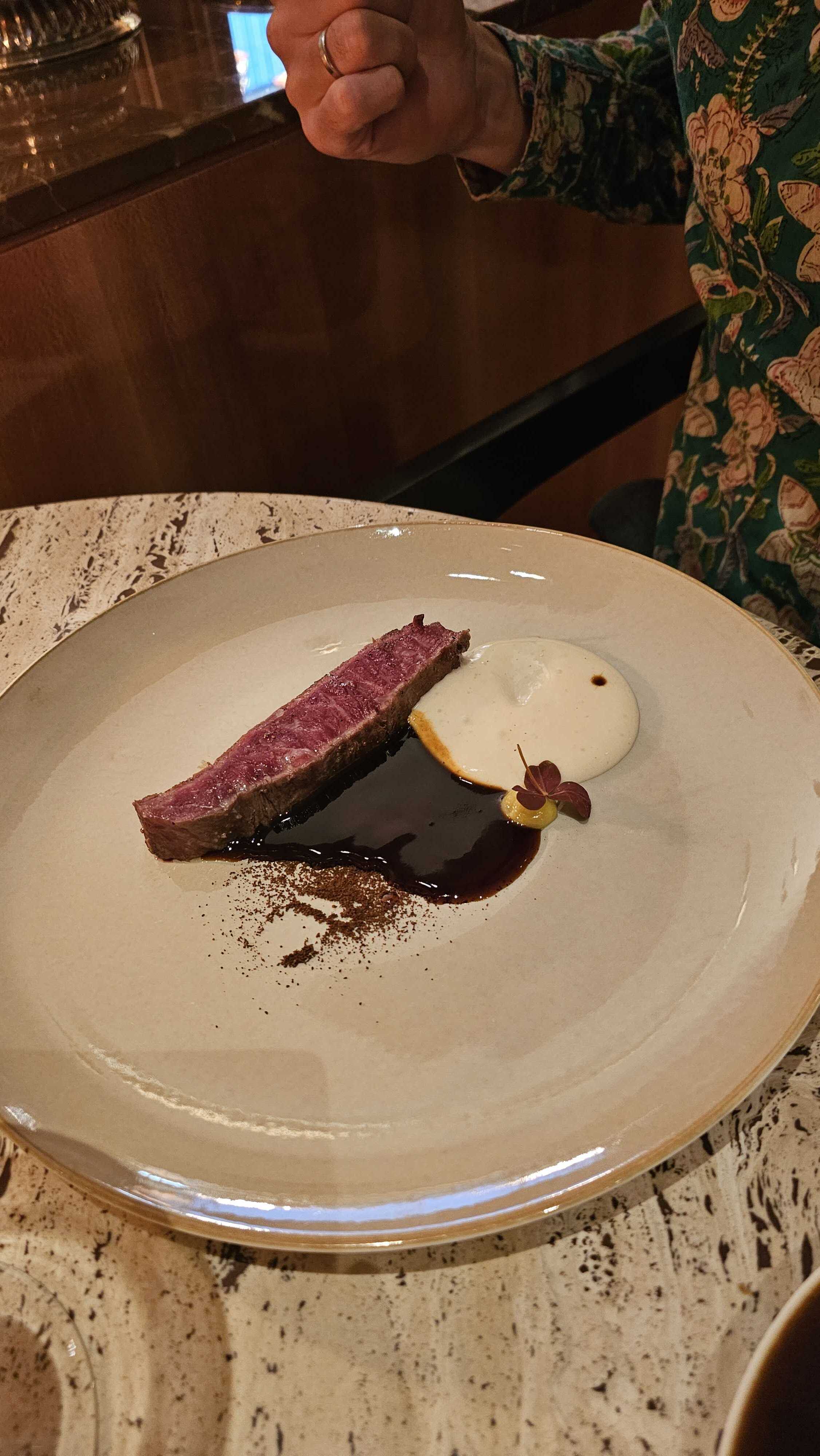 Très agréable expérience.Assiettes aussi esthétiques que goûteuses. La présentation du bœuf est très sophistiquée.