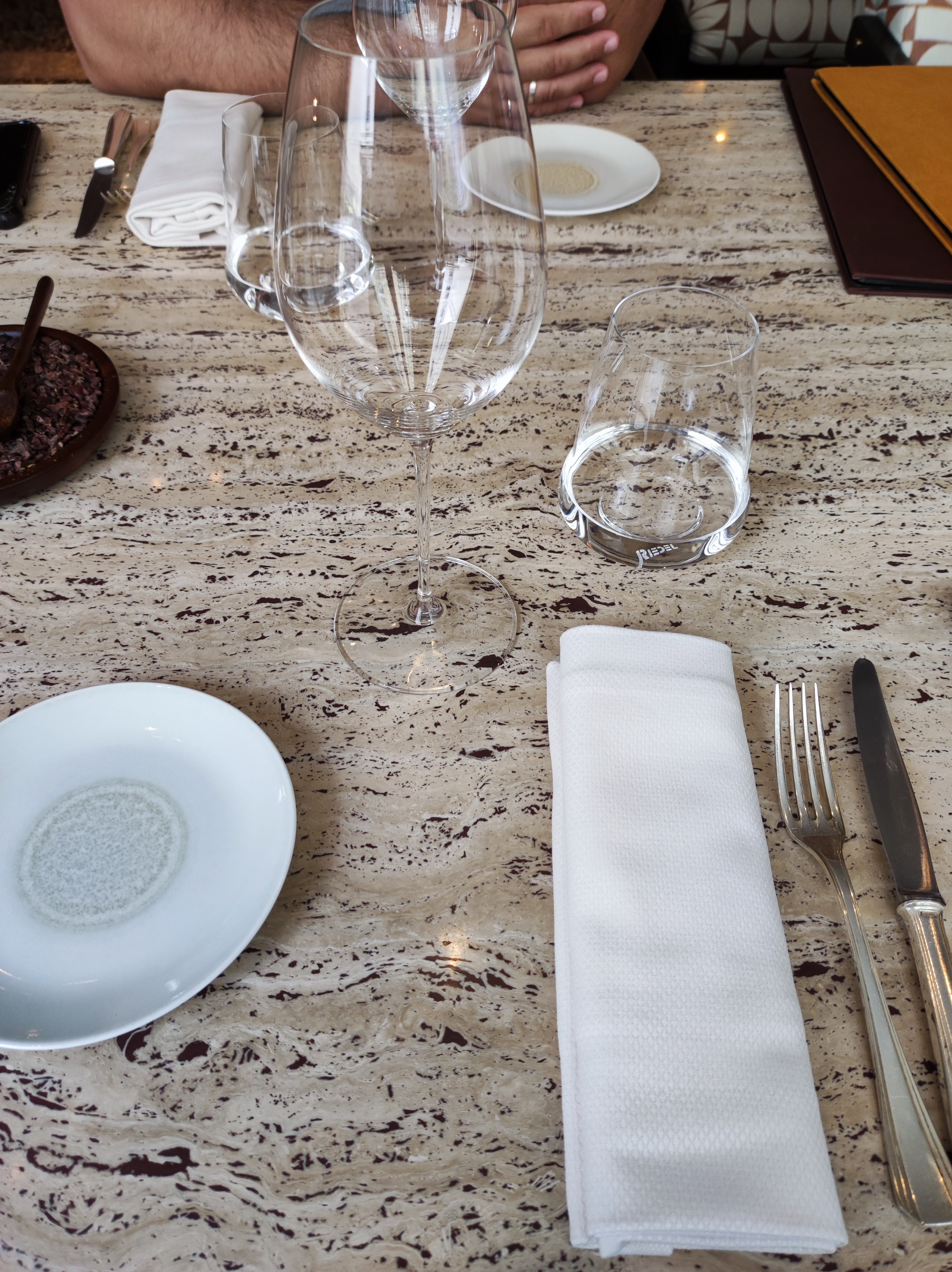 Très bonne expérience dans l'ensemble. Cependant : Une serveuse allait nous laisser partir en nous ramenant nos manteaux après le paiement, alors que nous n'avions pas encore eu les mignardises de fin... De plus 7 € la bouteille d'eau, nous n'avons pas compris...