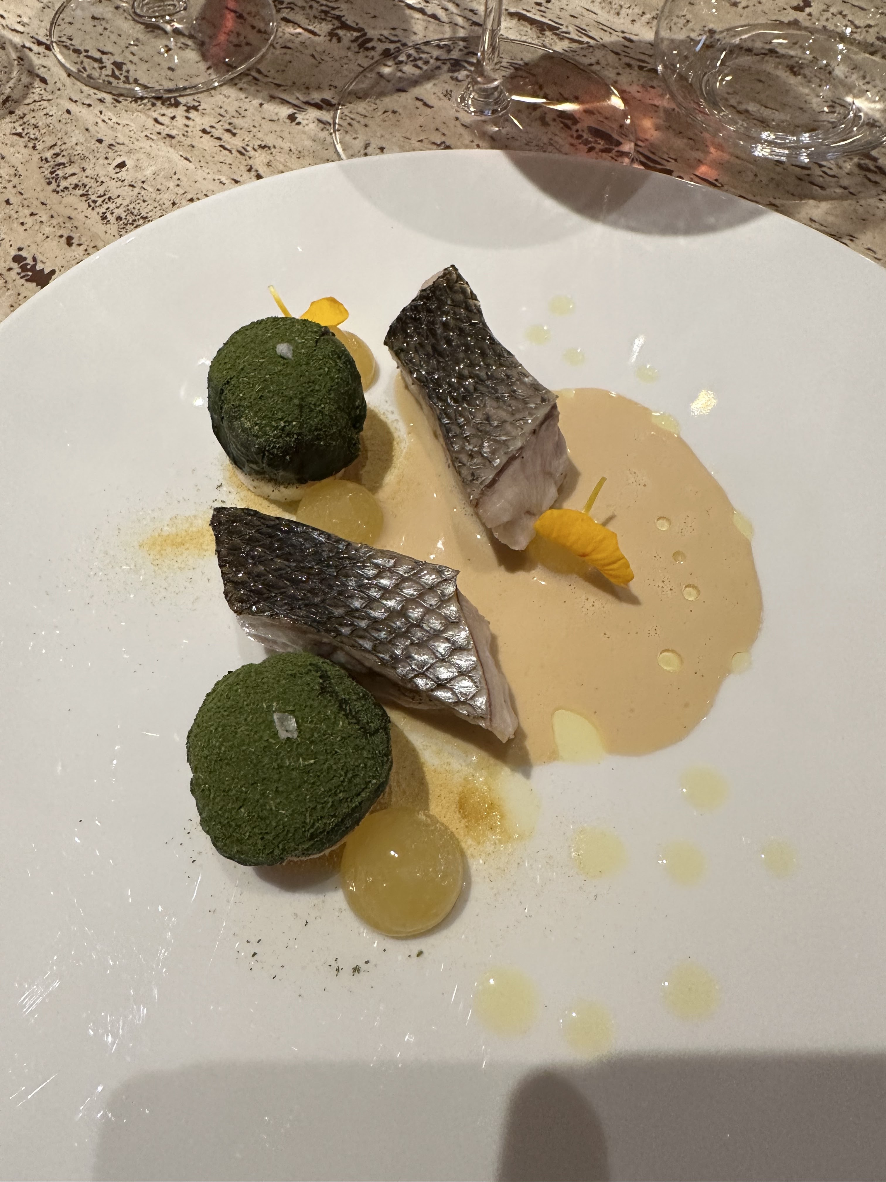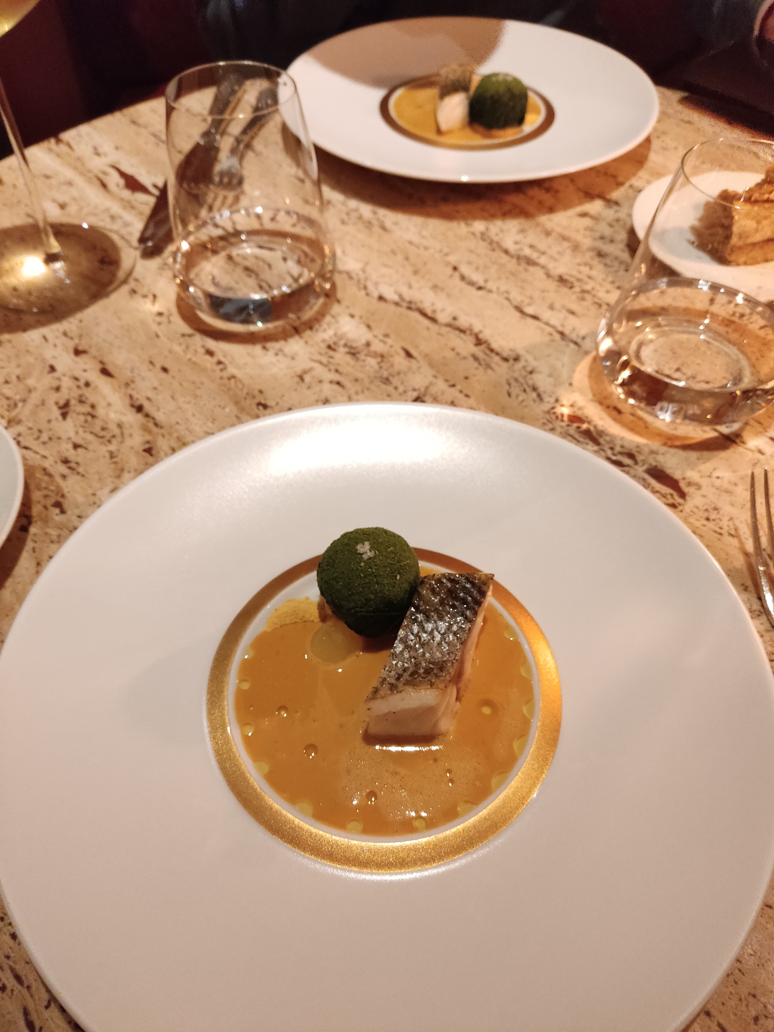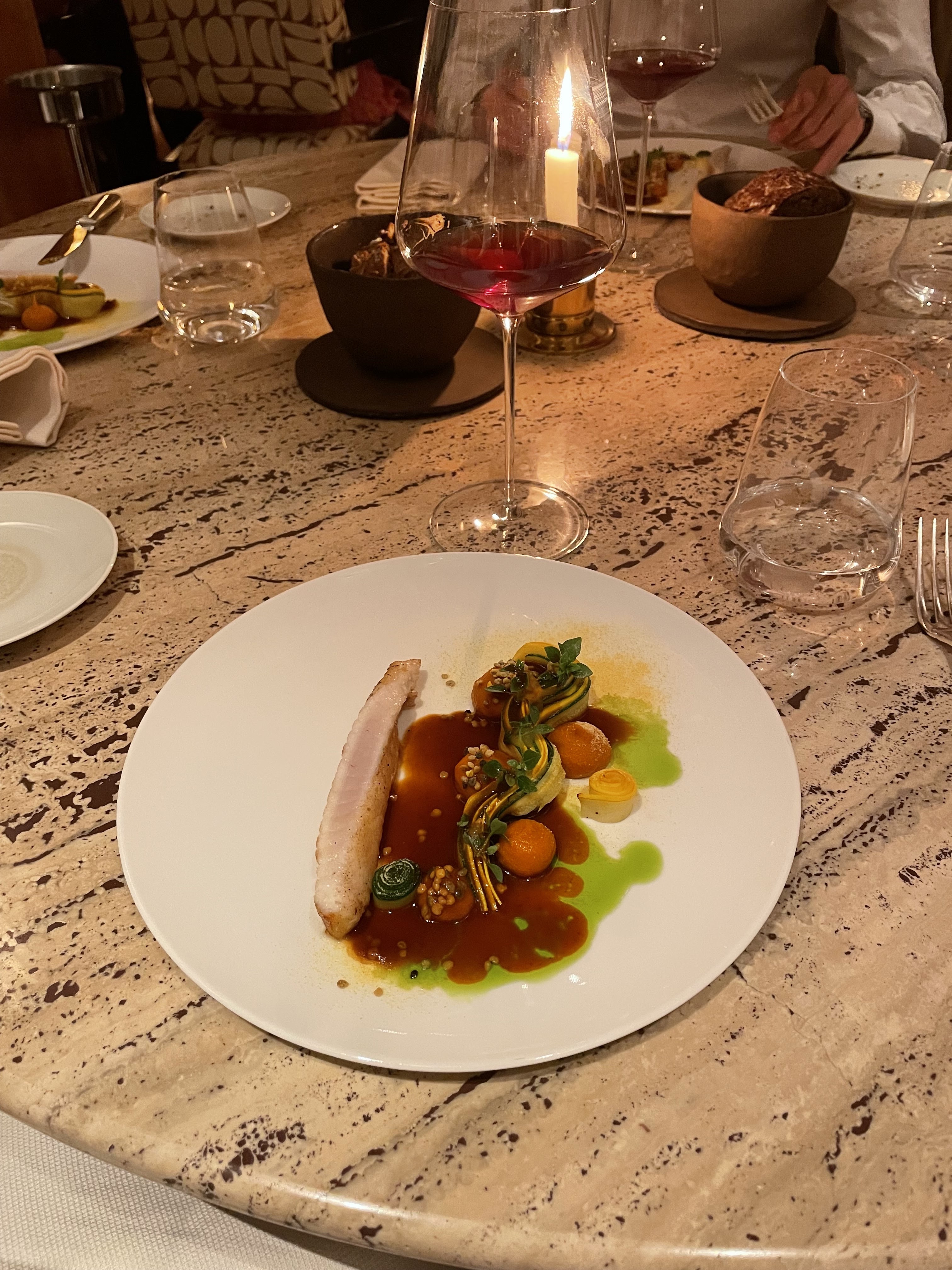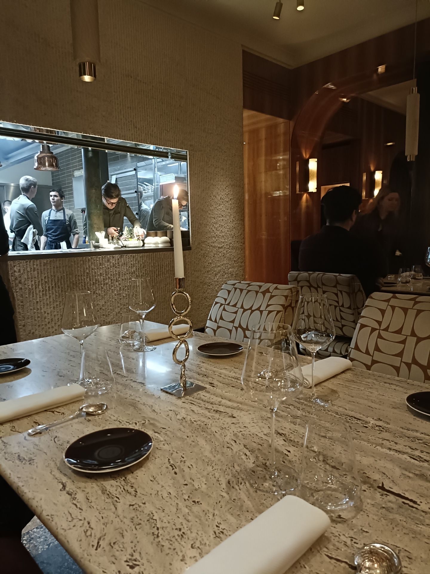 Cuisine élégante avec des produits et des mélanges vraiment magnifiques, des portions de dégustations mais aucune sensation de faim à la fin. Service souriant et précis. Malheureusement soirée glaciale (-2) à l'extérieur et les tables en marbres très froides + une salle très aérée ne permettait pas une ambiance tout à fait chaleureuse Parfait avec une température de quelques degrés supplémentaires.