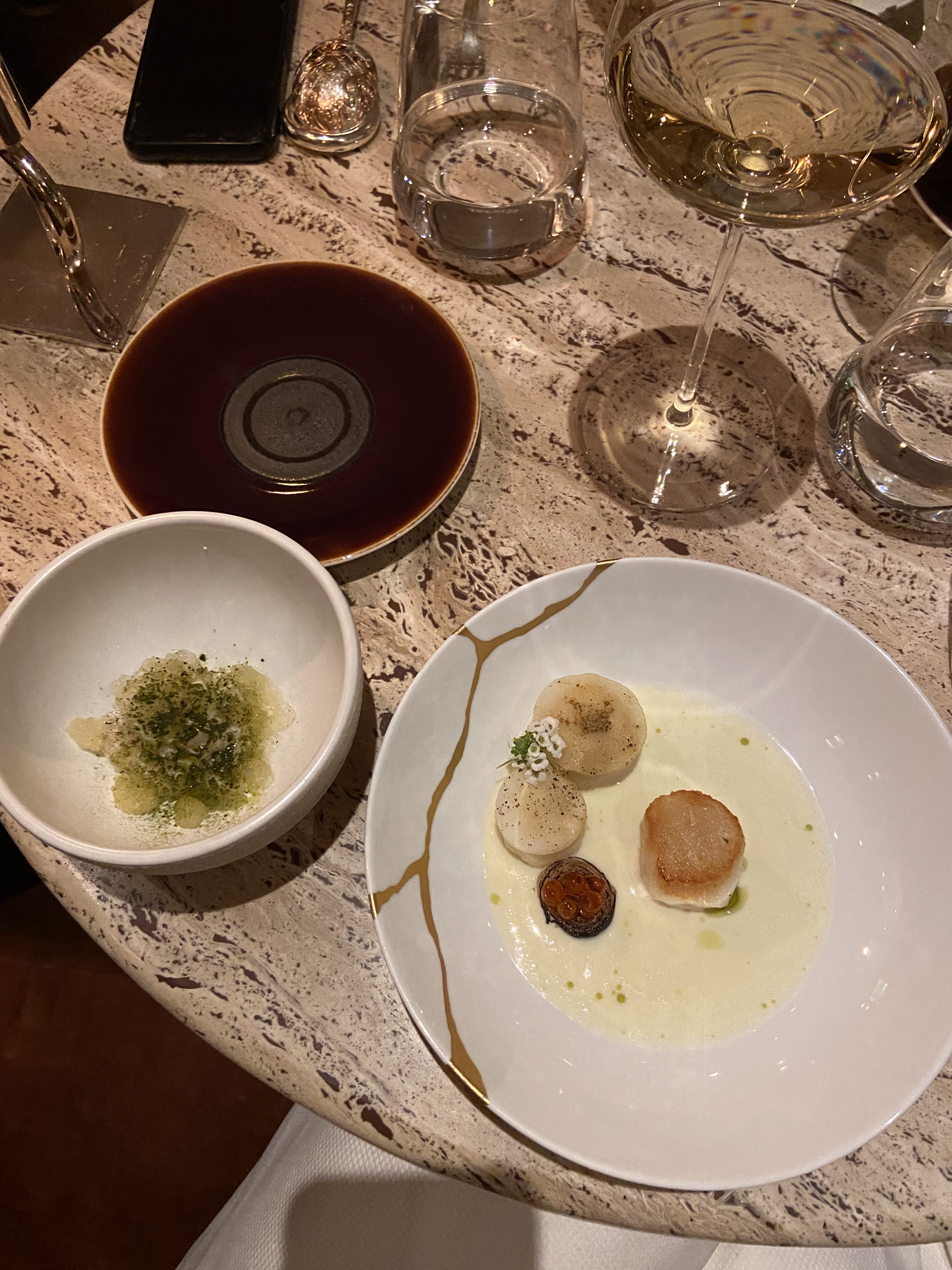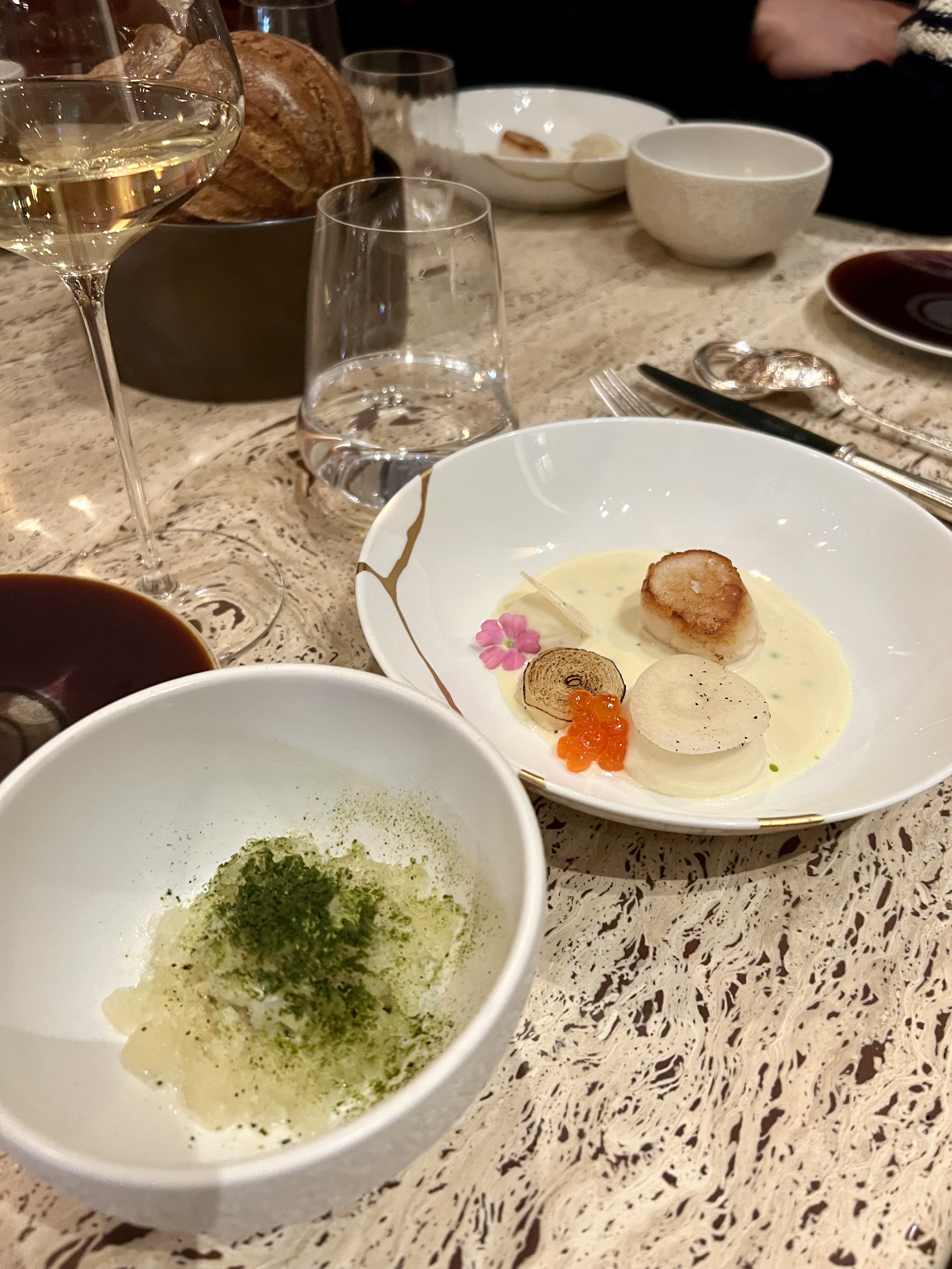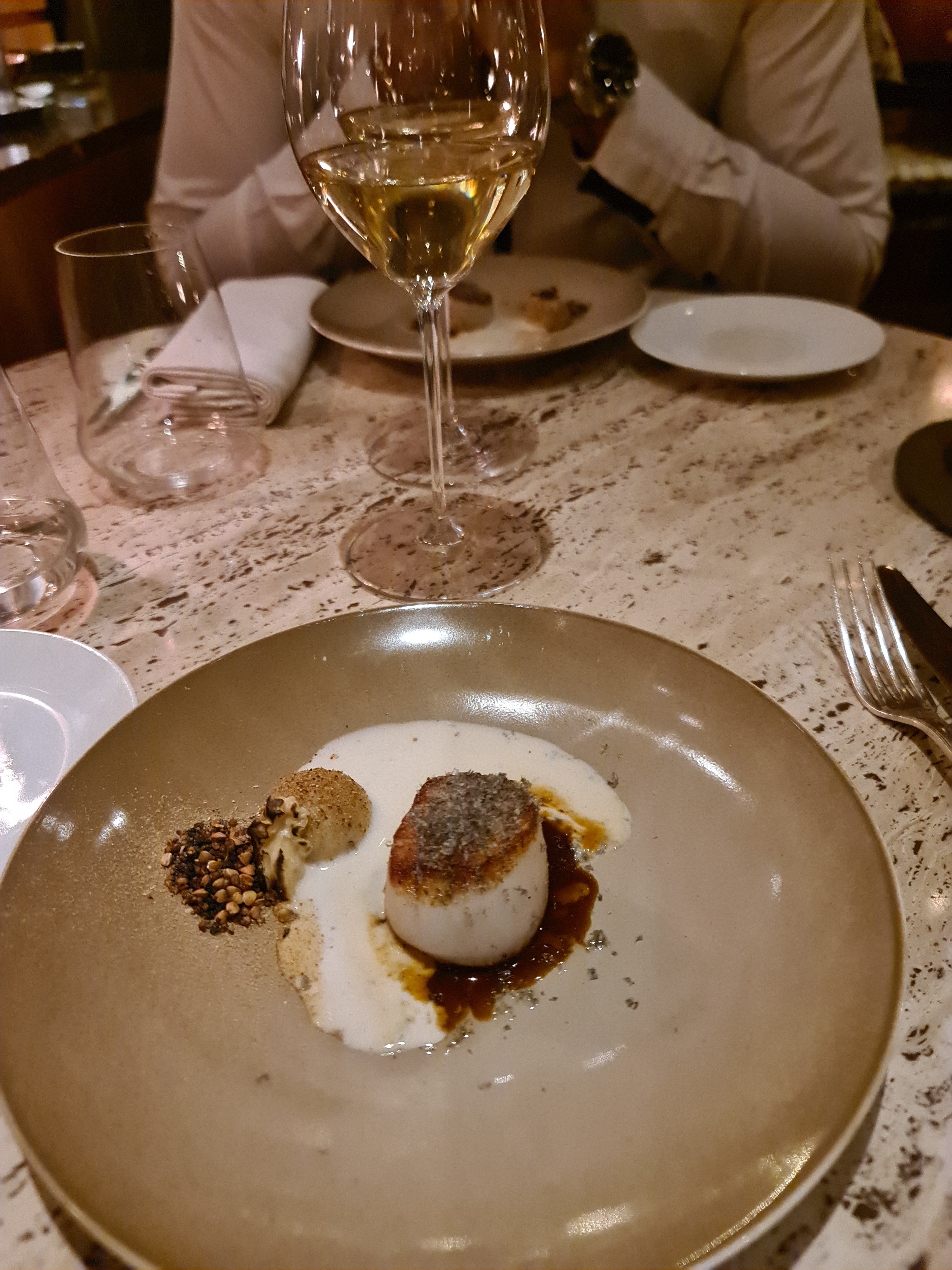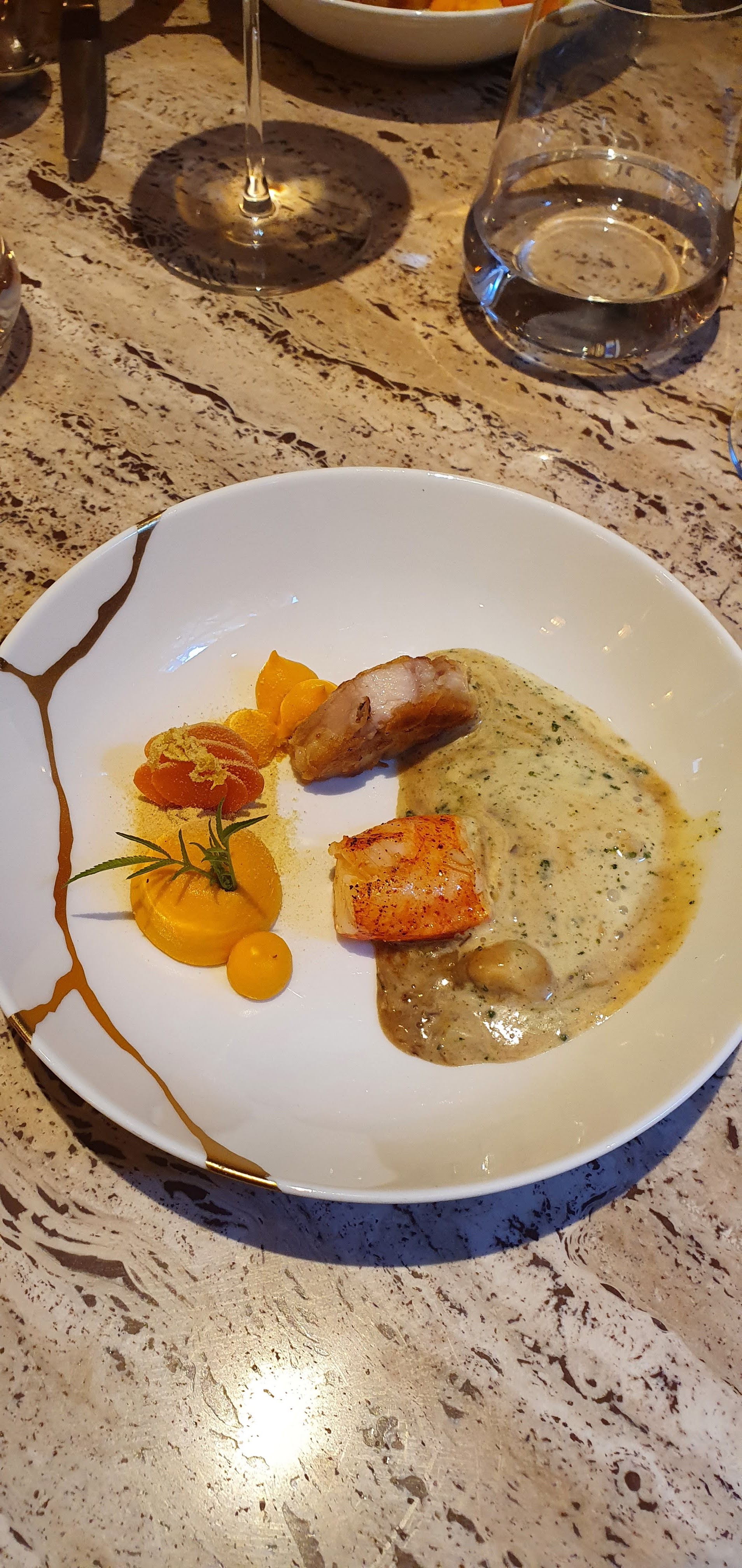 Cuisine élégante avec des produits et des mélanges vraiment magnifiques, des portions de dégustations mais aucune sensation de faim à la fin. Service souriant et précis. Malheureusement soirée glaciale (-2) à l'extérieur et les tables en marbres très froides + une salle très aérée ne permettait pas une ambiance tout à fait chaleureuse Parfait avec une température de quelques degrés supplémentaires.
