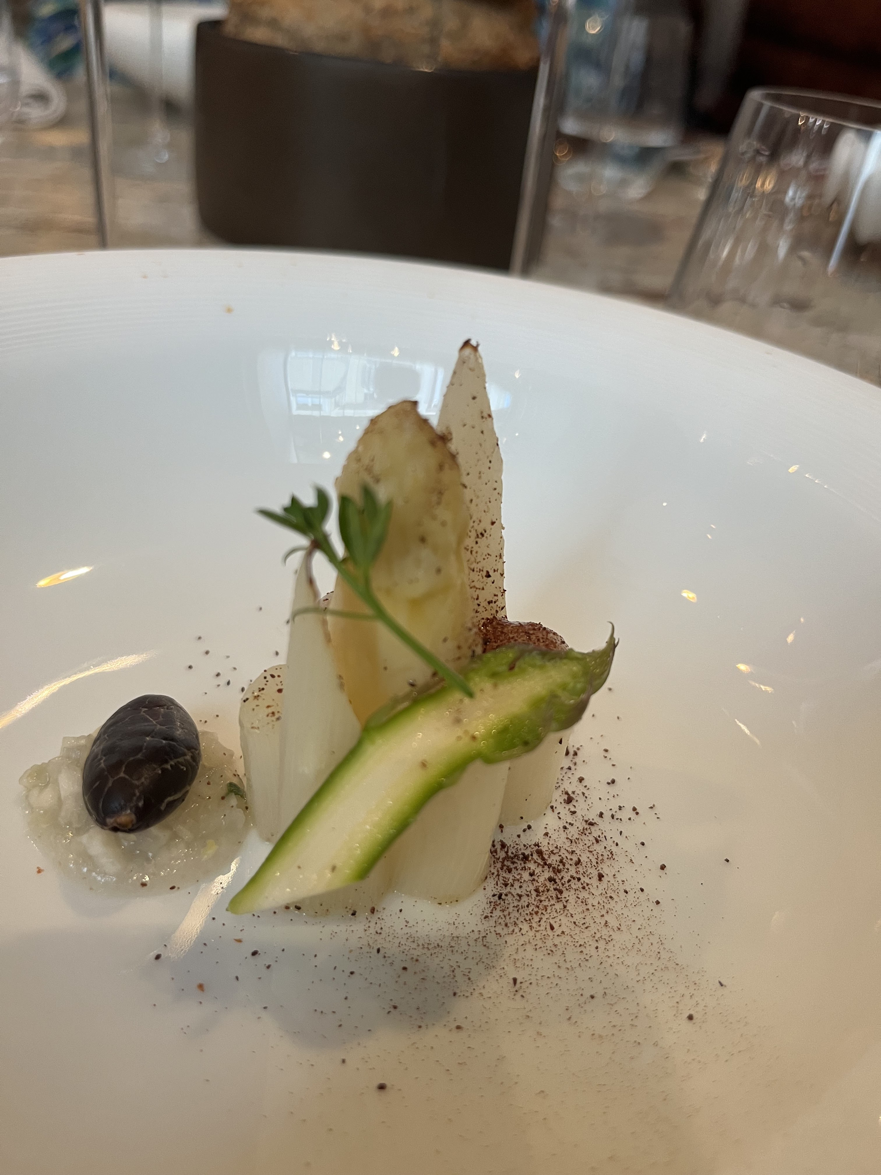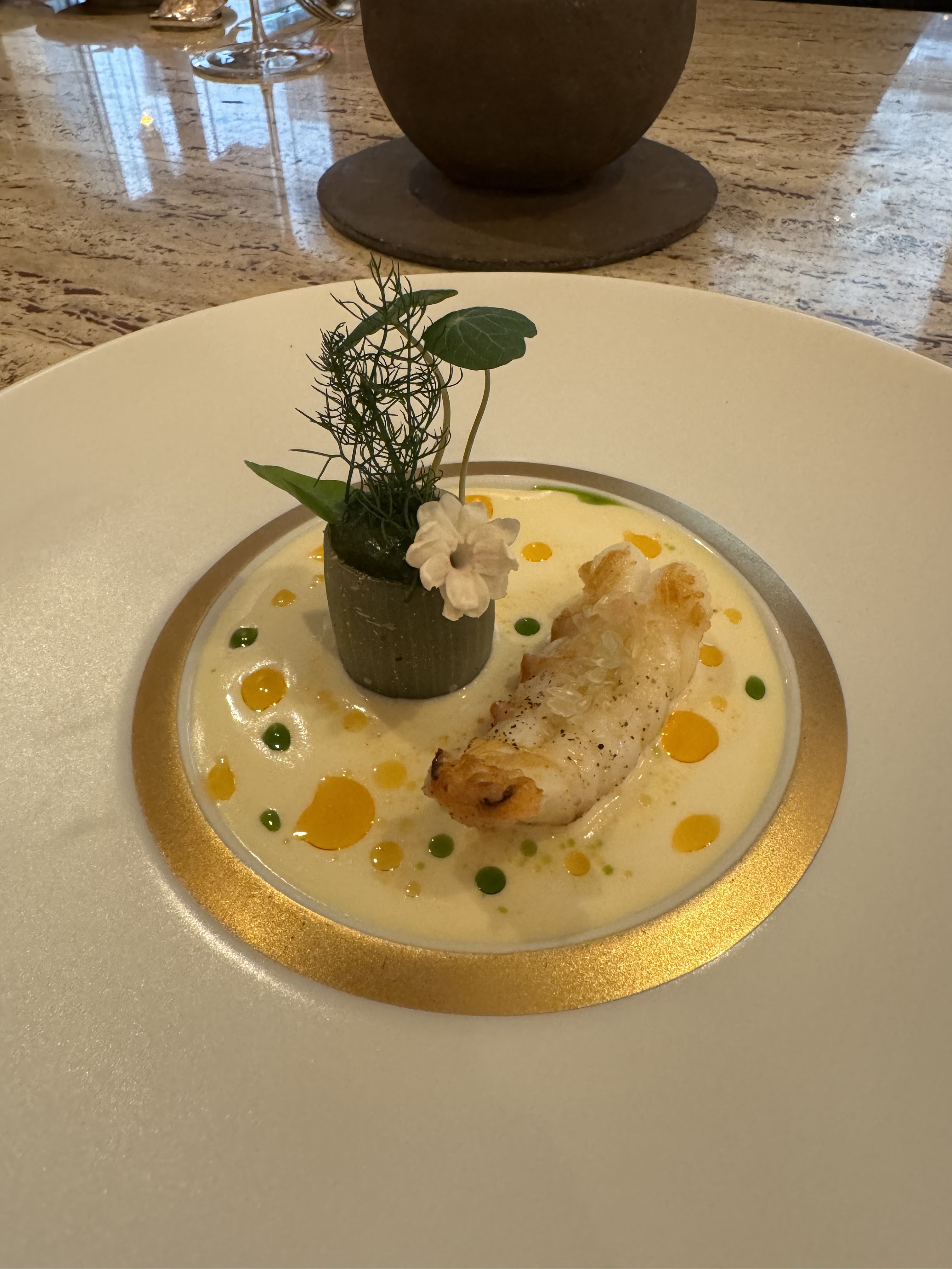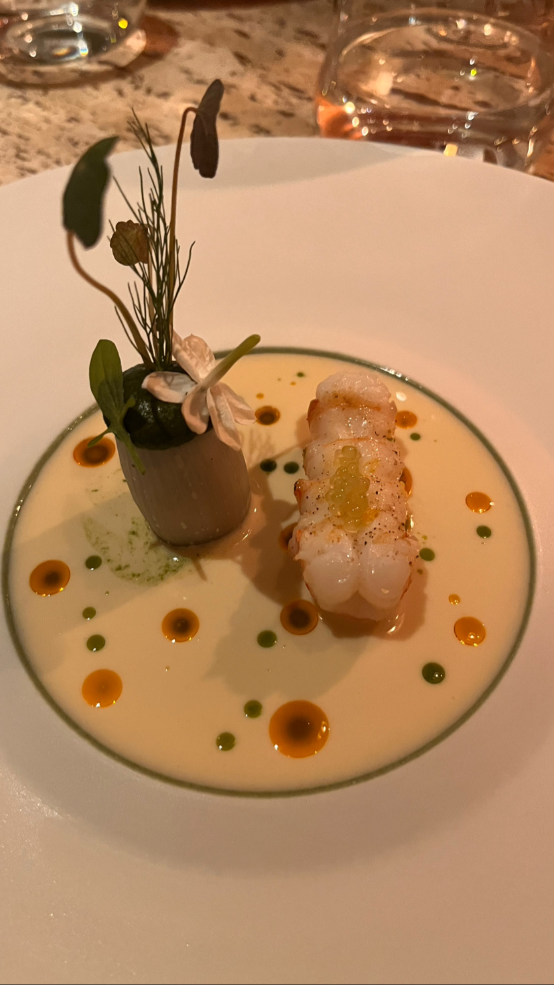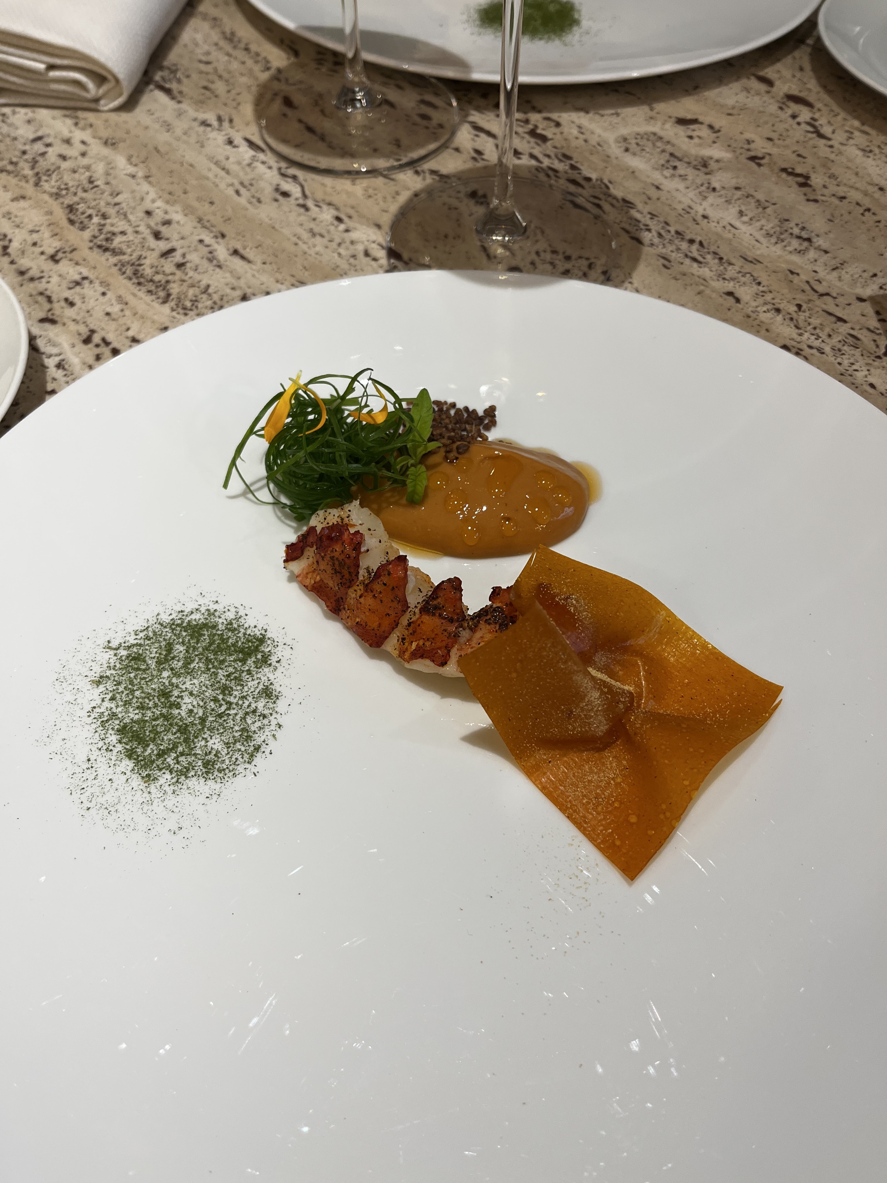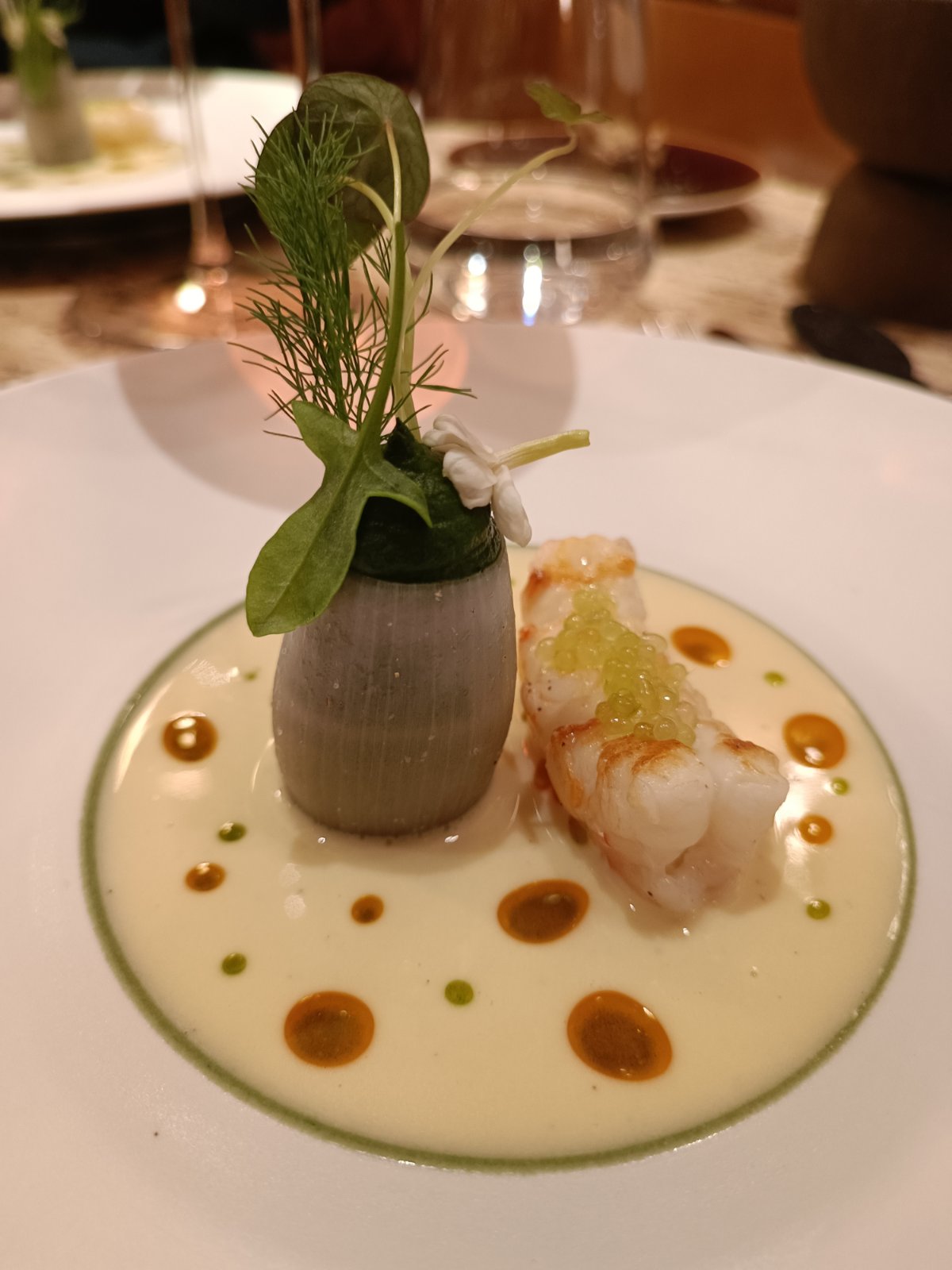Nous avons pris le Menu dégustation 7 services afin de nous imprégner de l’univers du chef … Nous avons trouvé l’expérience un peu sur coté, un manque de maîtrise dans la réalisation, les cuissons, et les assaisonnements. Les intentions sont très alléchantes, et la créativité du chef ne fait aucun doute, toutefois a la vu des prix pratiqués, on s’attend à une partition sans fausses notes, dans une harmonie totale. Les vin au verre sont un peu cher. Le service courtois et professionnel mais un peu irrégulier. Nous avons passé un bon Moment mais, pas d’effet wahou, il manque d’après nous une base solide et expérimenté qui caractérise ce genre de maison.