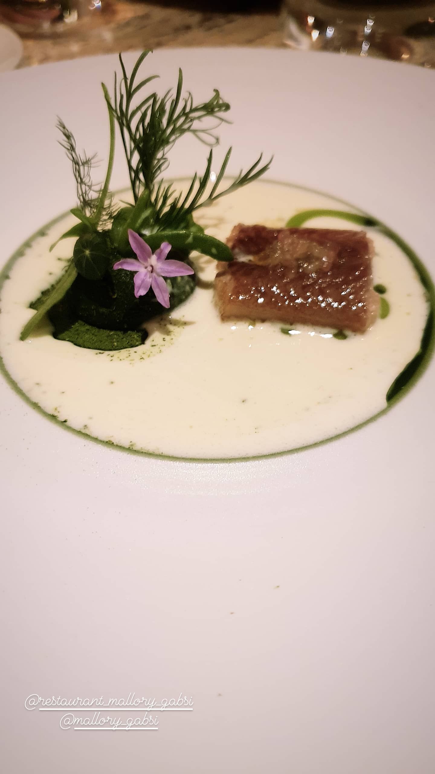 Nous avons adoré notre déjeuner chez Mallory Gabsi aujourd'hui. Un cadre élégant et chaleureux, une équipe accueillante et aux petits soins qui met en scène avec le sourire une succession de plats aussi beaux que savoureux, pleins de finesse et de créativité. On reprendrait de tout (heureusement que les plats sont équilibrés de manière à pouvoir profiter du menu Turquoise jusqu'au bout de l'expérience!) mais notre mention spéciale a été au plat terre-mer alliant le bœuf et le homard, cuits à la perfections et incroyablement fondants! Merci à toute l'équipe, nous reviendrons avec grand plaisir !
