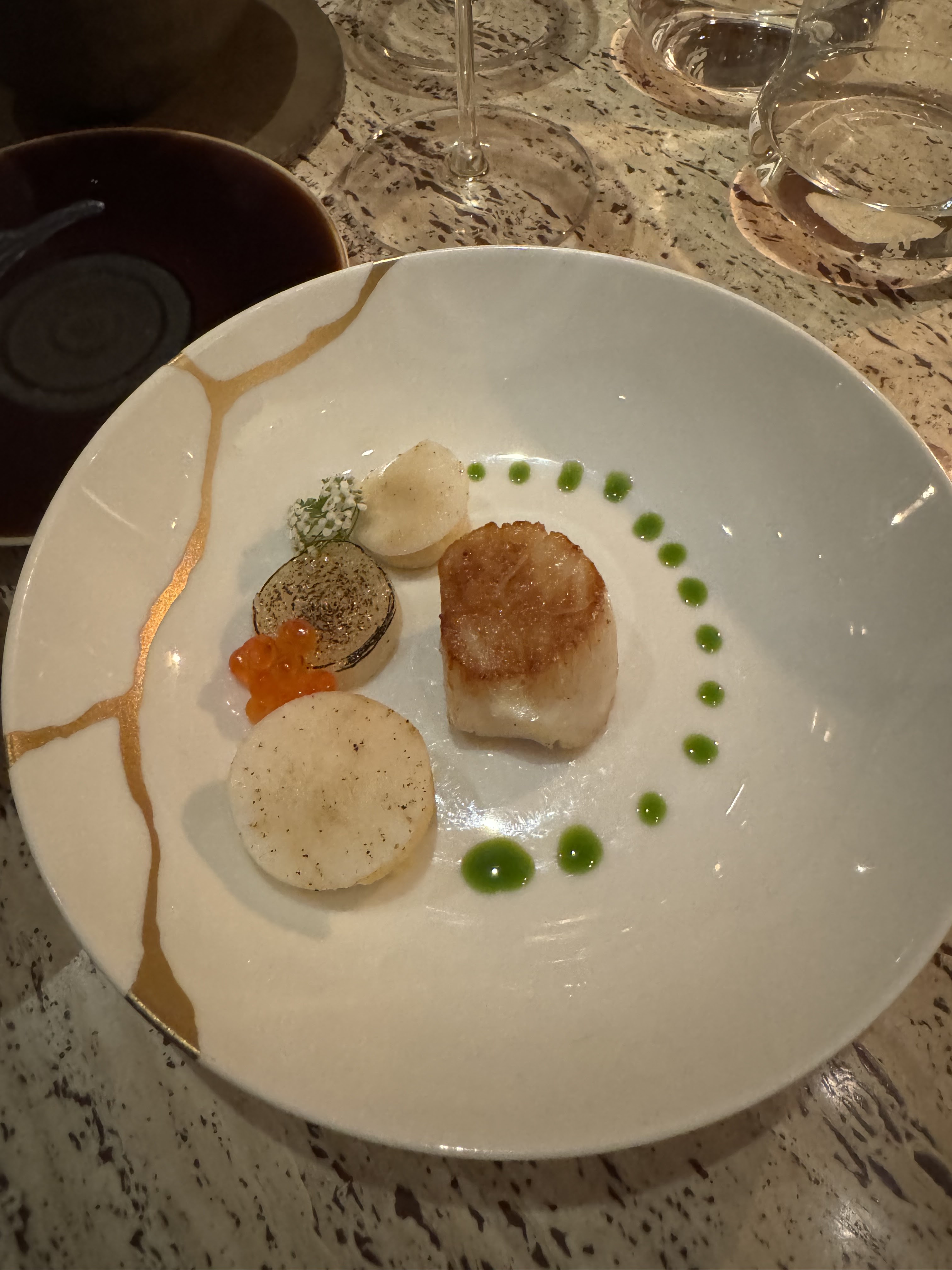 Rien à dire sur ce restaurant gastronomique, une belle découverte. L'équipe est sur le qui vive, aux petits soins avec explications et bons conseils. Les plats jolis, précis et savoureux. Mention spéciale pour le pré-dessert du dessert a base de Yuzu/miel : une vraie claque. Très belle expérience avec les salutations du chef qu'on a pu également voir en pleine action puisque la cuisine et sa brigade sont à la vue des tables.