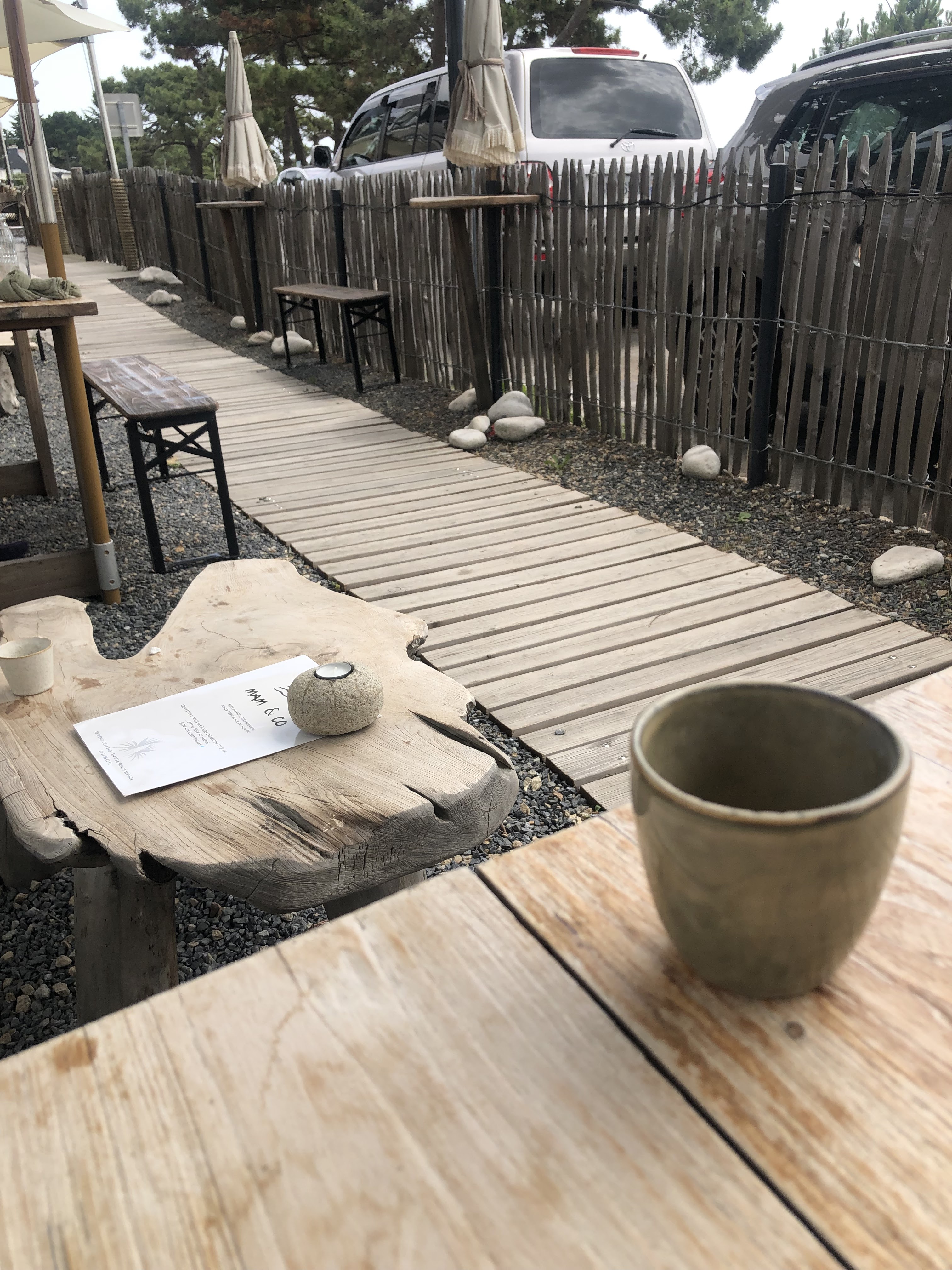 Café restaurant avec vue sur l'océan 😍. Nous nous y sommes arrêtés d'abord pour son ambiance extérieure, originale, chaleureuse. Pause goûter en famille...