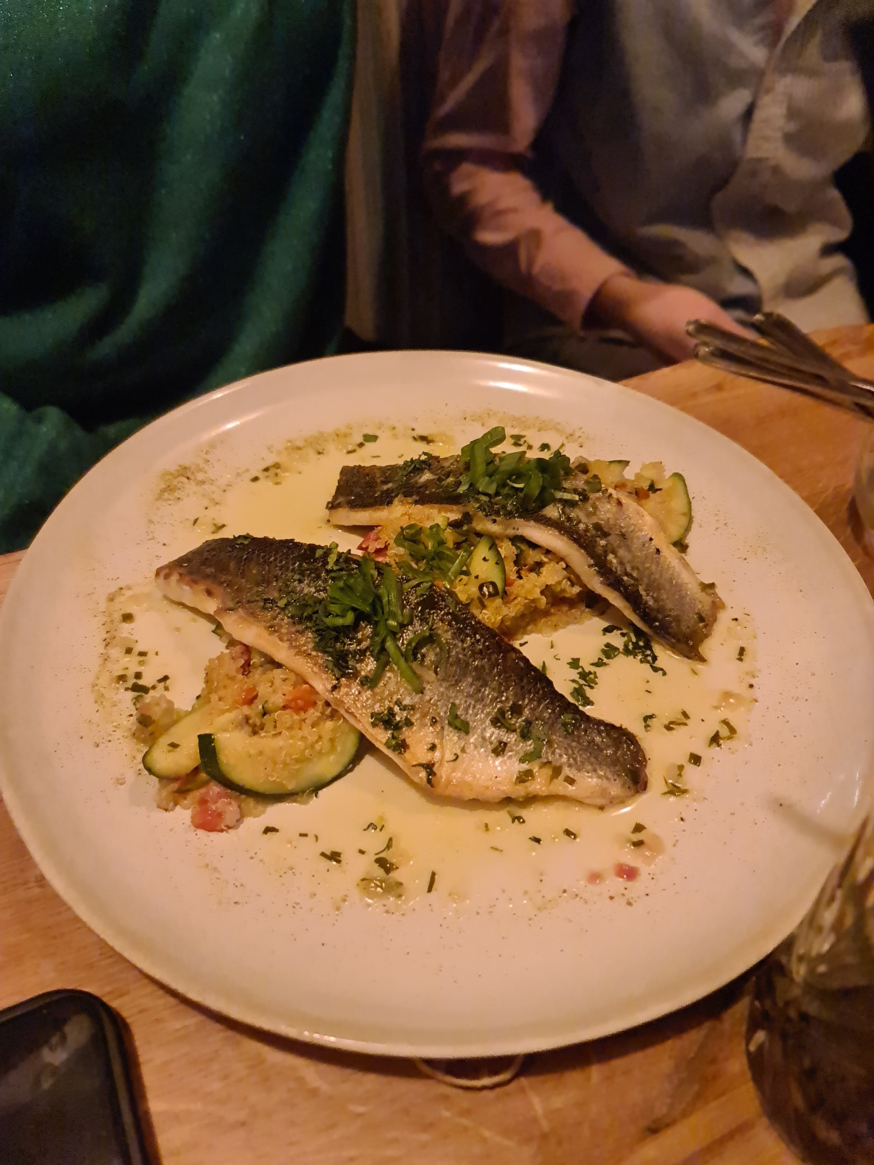 Malgré mon ami qui ne mangeait pas de poisson et où ça a été difficile mais ils ont su s’adapter , c’était juste top. Tellement fraîs et raffiné, une belle et vraie adresse. Carte courte , très courte et juste au top ! Si vous avez une envie de bon repas dans un cadre magnifique allez y ! (Désolée pour les plats on a pas eu le temps, c’était trop bon) 😁