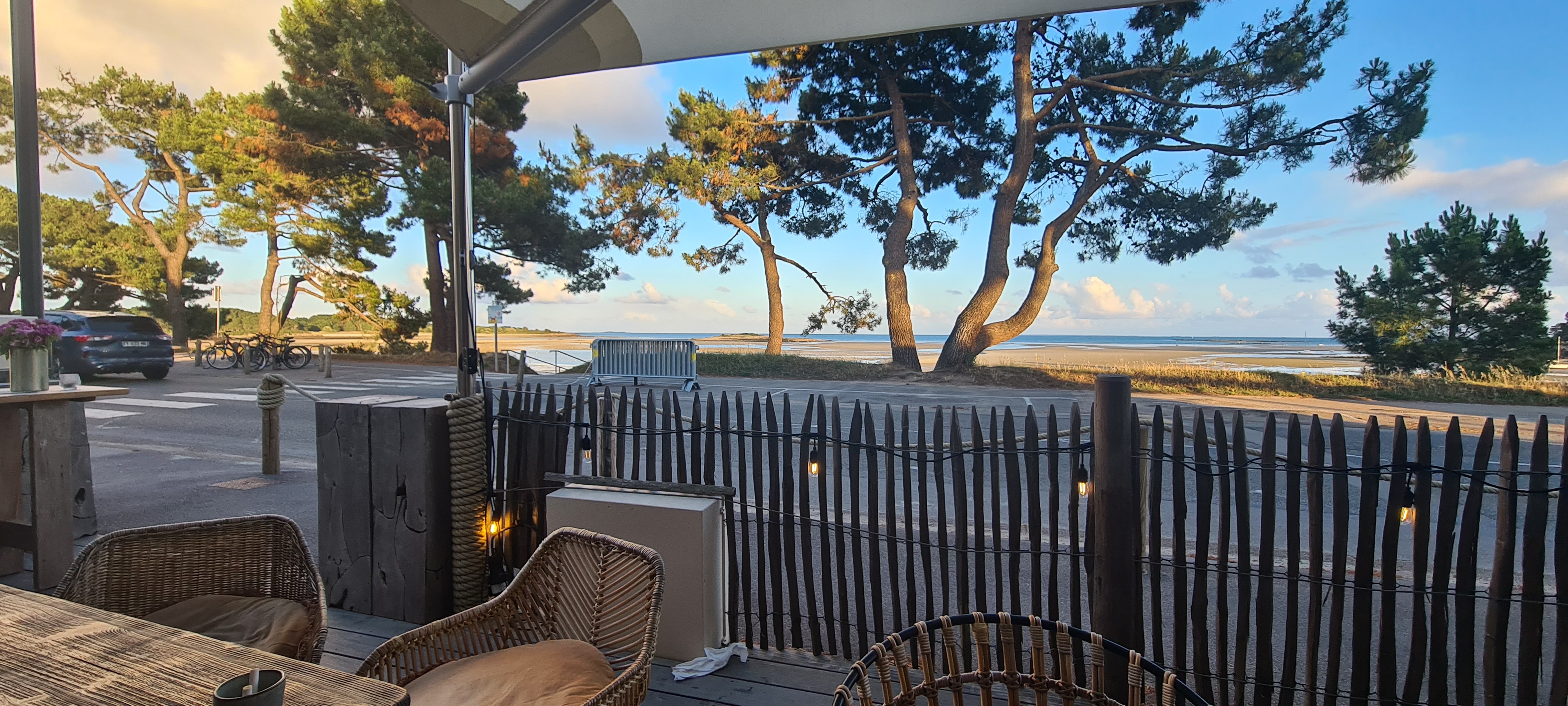 Face à la plage du Men Dû dans un cadre pailotte chic déco aussi belle et raffinée dehors que dedans, vous êtes reçu par un personnel agréable, sourire franc non commercial, ce vendredi midi nous choisissons la formule à 27€ (entrée, plat, dessert) mon fils et moi n'avons pas pris les même plats et l'un comme l'autre avons adoré ! Vesselle en adéquation avec le cadre, des mets qui restent bien chauds (c'est très important pour le goût) ne passez pas entre Carnac et La Trinité sur mer sans vous arrêter, vous le regretteriez, je vous assure ... Martine et Sébastien, le 25/09/2020