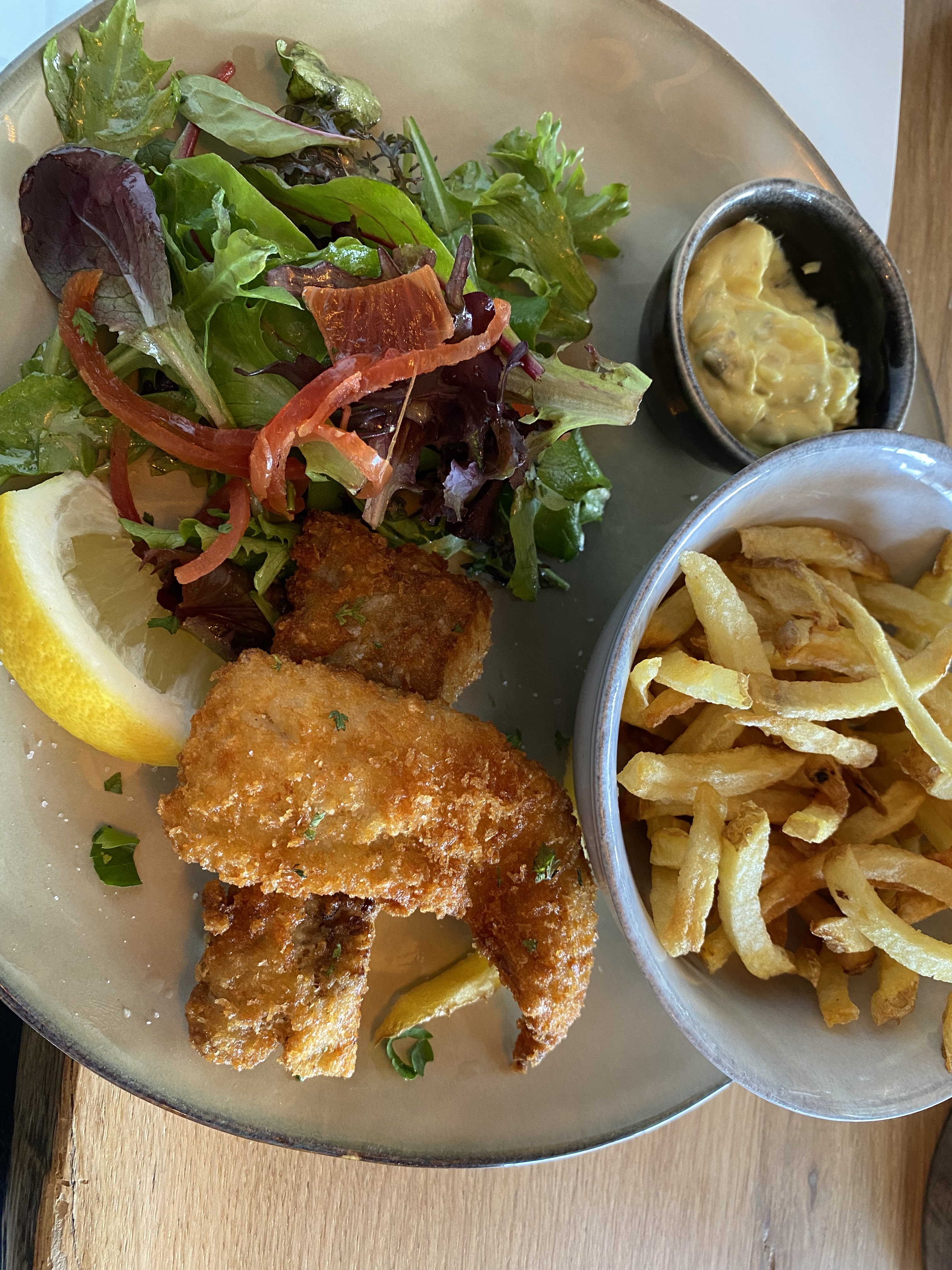 Bon restaurant, salade caprese un peu trop arrosée de pesto, trop grasse à la limite de l'ecoeurement. Fisch and chips 20 euros un peu cher les huîtres 12 euros les 6 un peu cher, sinon cadre agréable....
