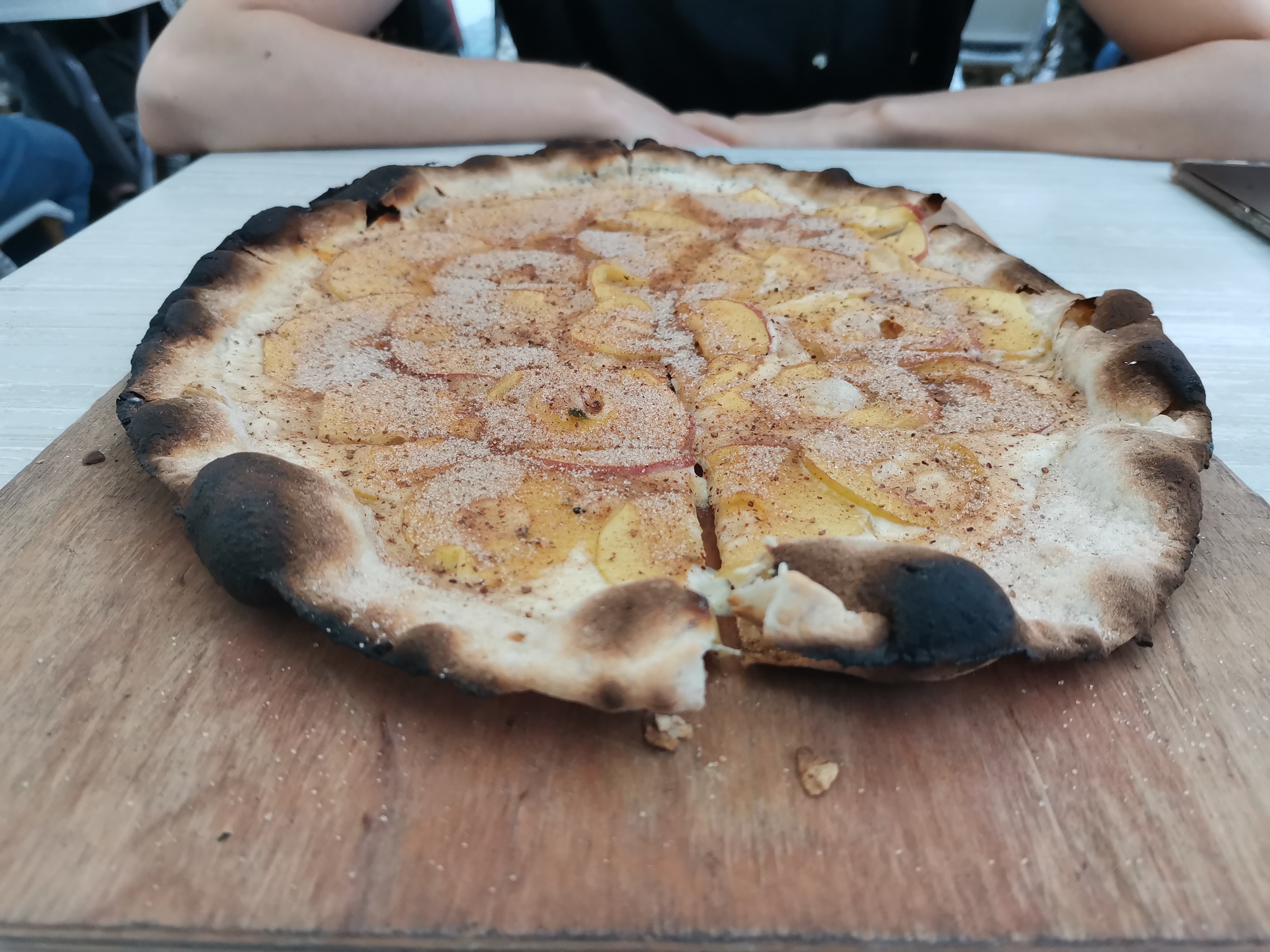 Quel bonheur de pouvoir manger une tarte flambée sans gluten ! C'était excellent, gourmand. Nous avons goûté la Comté et la Munster (un régal) et une pomme cannelle en dessert. Merci pour ce si bon repas !