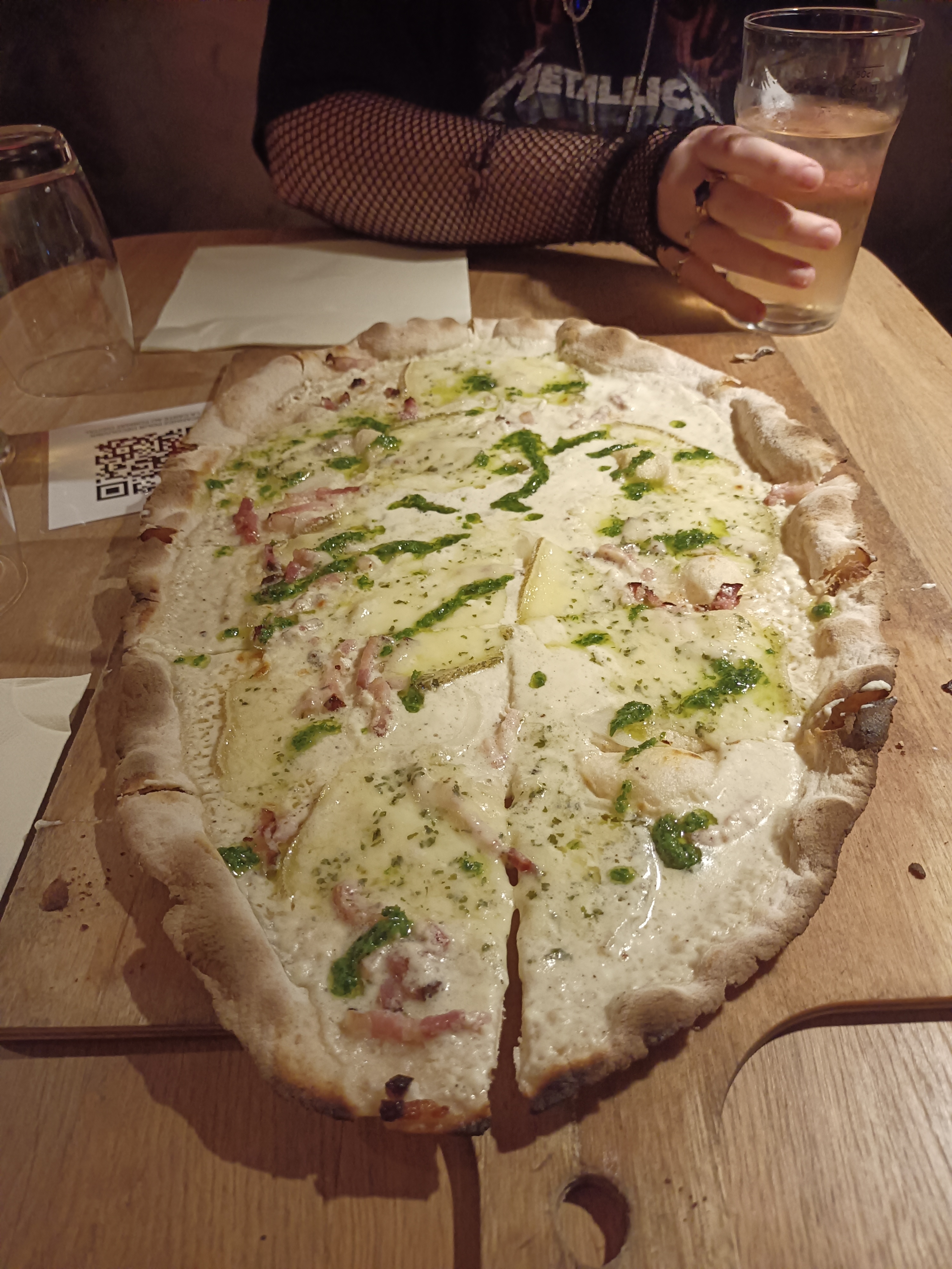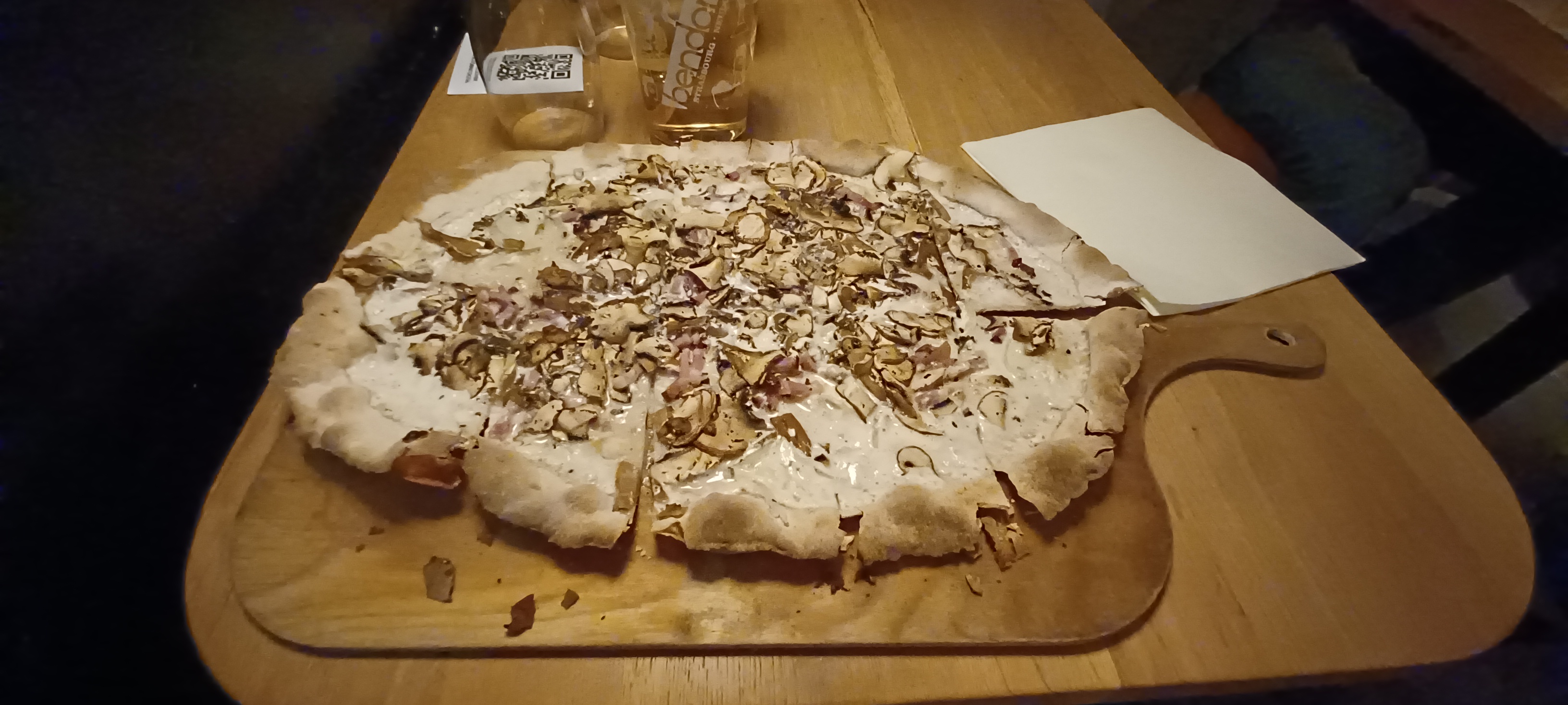 On peut commander que deux tartes flambées par table ! Service lent, intérieur très serré, la tarte flambée est plutôt ok, la mienne était cramée mais j’imagine que c’est pas le cas pour tout le monde