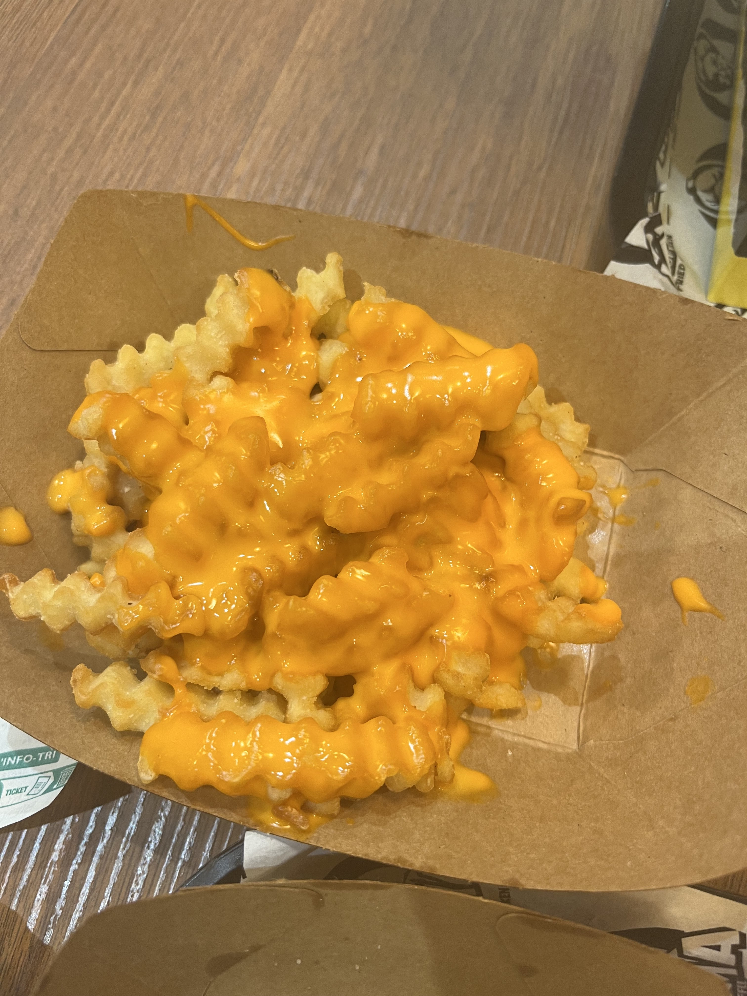 Pas top ! On a commandé les frites avec cheddar ce qui est certain c’est qu’on va pas s’étouffer avec le cheddar. Tous les hamburgers sont petits et le goût est sans plus . Les tenders sans sauces sont pas top. Première et dernière fois pour nous.
