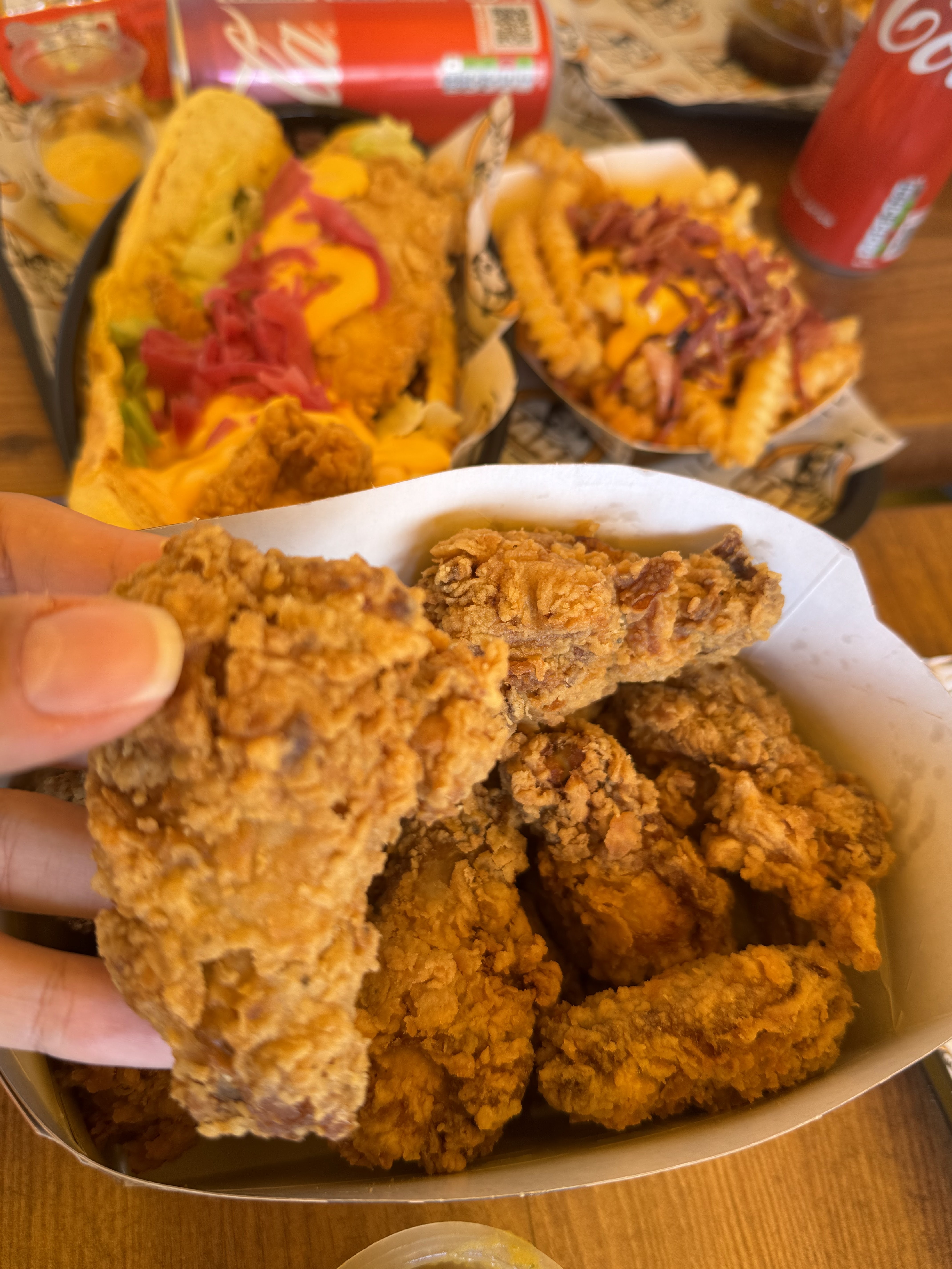 Excellent, je me suis régalé. J'ai pris un bucket poulet braisé+ fried et honnêtement c'était un délice et cerise sur le gâteau j'ai eu deux frites cheddar bacon gratuites, bref je reviendrais sans aucun doute. Un petit message aux clients qui donnent de mauvais avis, certe vous avez le droit mais ils sont relativement nouveau donc soyez un peu indulgent