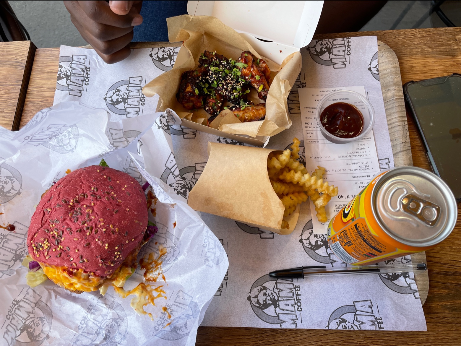 Habitant à côté, j’ai suivi le Mama Coffee depuis son ouverture. J’étais plutôt satisfaite au début : les wings, le burger à l’avocat. Les frites étaient effectivement systématiquement froides à une période mais le problème a été résolu. Cependant, j’ai dernièrement pris un cheeseburger, qui à l’apparence et au goût était similaire à celui que l’on peut trouver dans des enseignes de fast-food présentes dans le coin mais dont le prix était CINQ fois supérieur. Même en supposant que la viande soit de meilleure qualité, locale, avec une sauce et un pain faits maison (je doute fortement que ce soit le cas), cela ne justifierait même pas ce prix. J’ai donc dépensé 8 euros pour un cheeseburger mangé en environ 20 secondes. C’est beaucoup trop cher.
