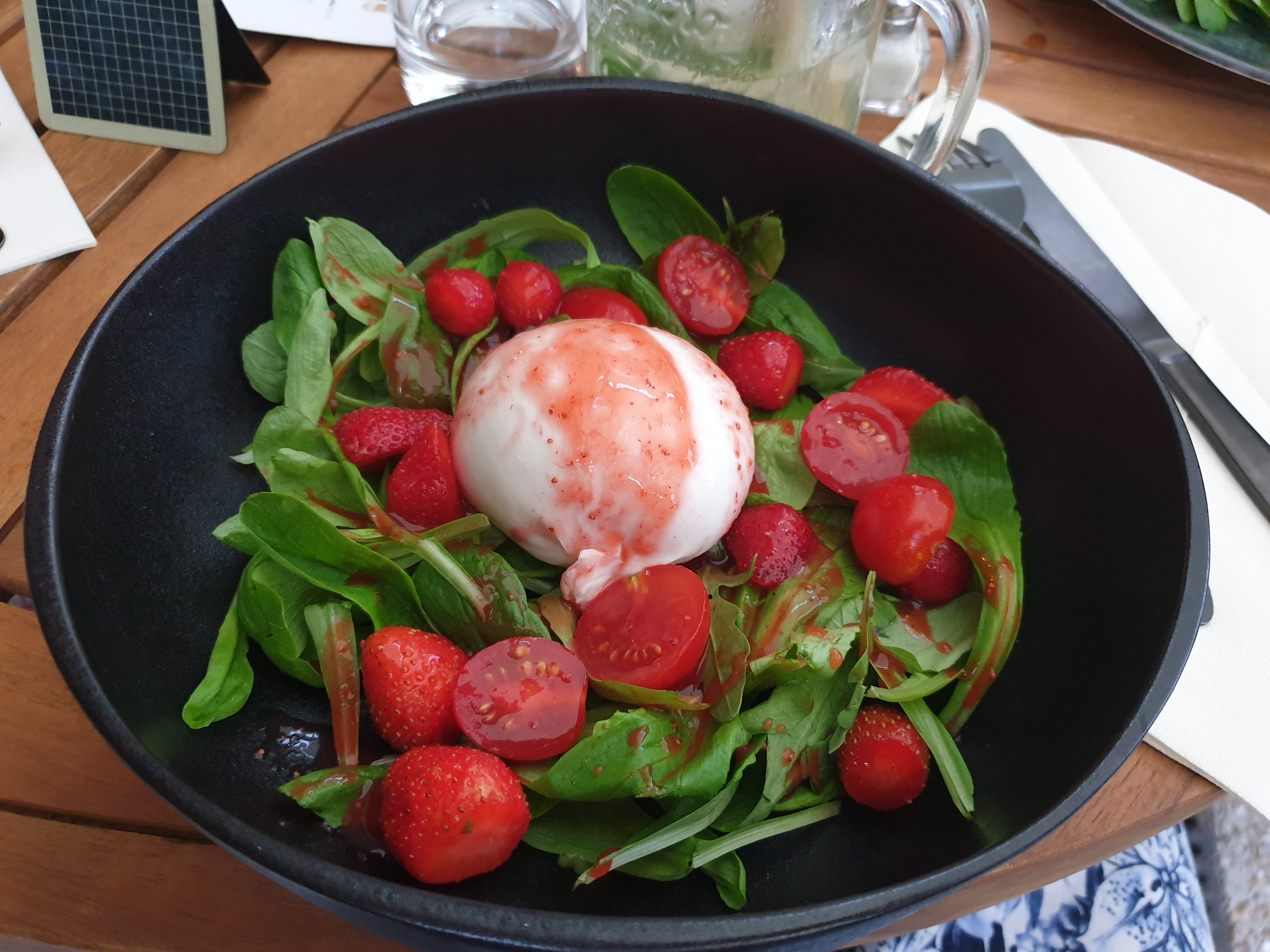 Repas en terrasse. Agréable, nourriture délicieuse comme toujours mention spéciale pour la burrata aux fraises un délice, sans parler de l'incontournable cheesecake miel thym. Bref je vais continuer à venir ! 😁