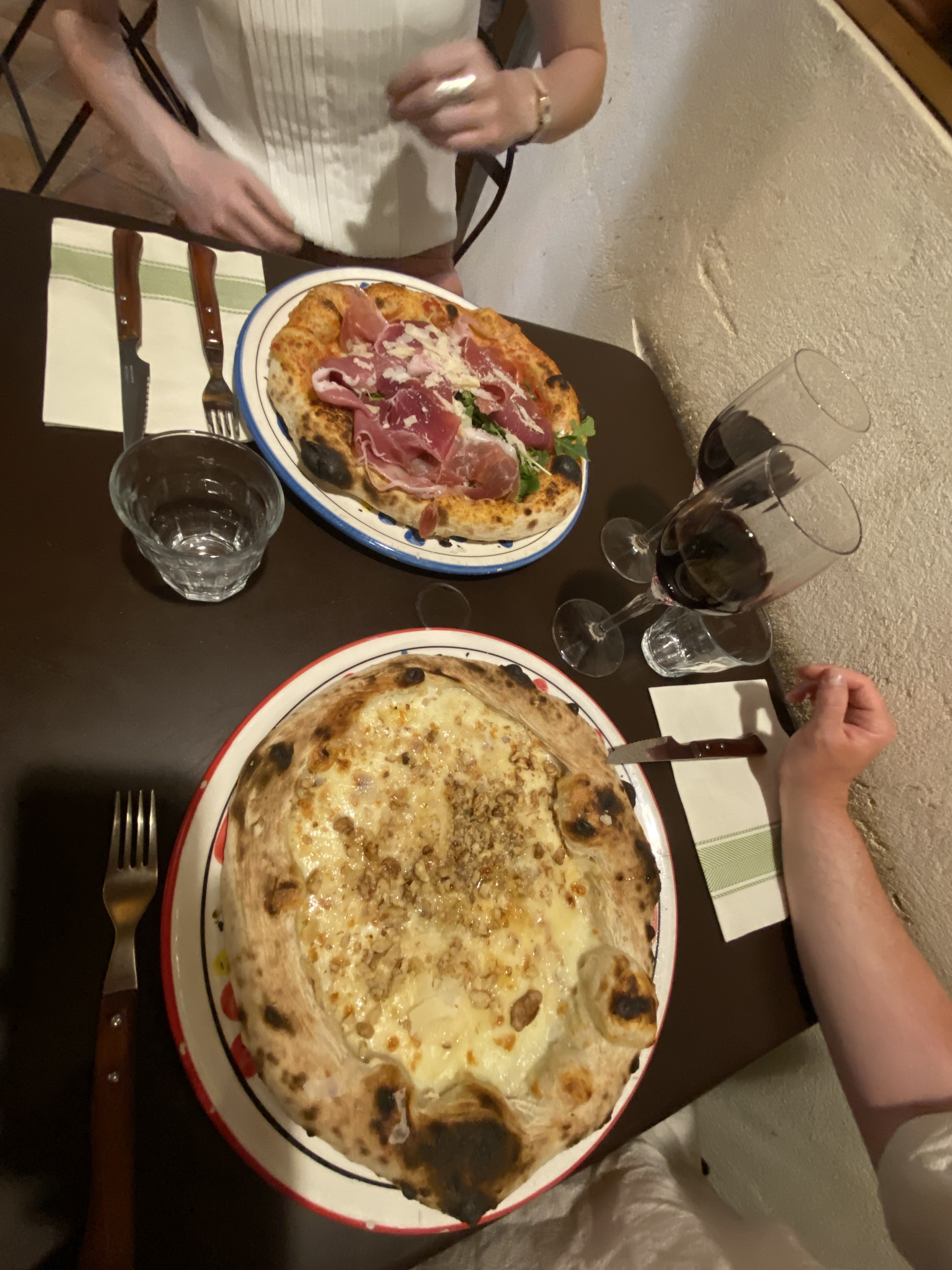 Bof bof... accueil sympathique mais 1 heure d'attente pour être servi ... évidemment les verres de rosé commandés pour accompagner les pizzas étaient chauds... pizzas fades bien garnies en bresaola mais manque cruel de fromage. Bof bof on ne reviendra pas.