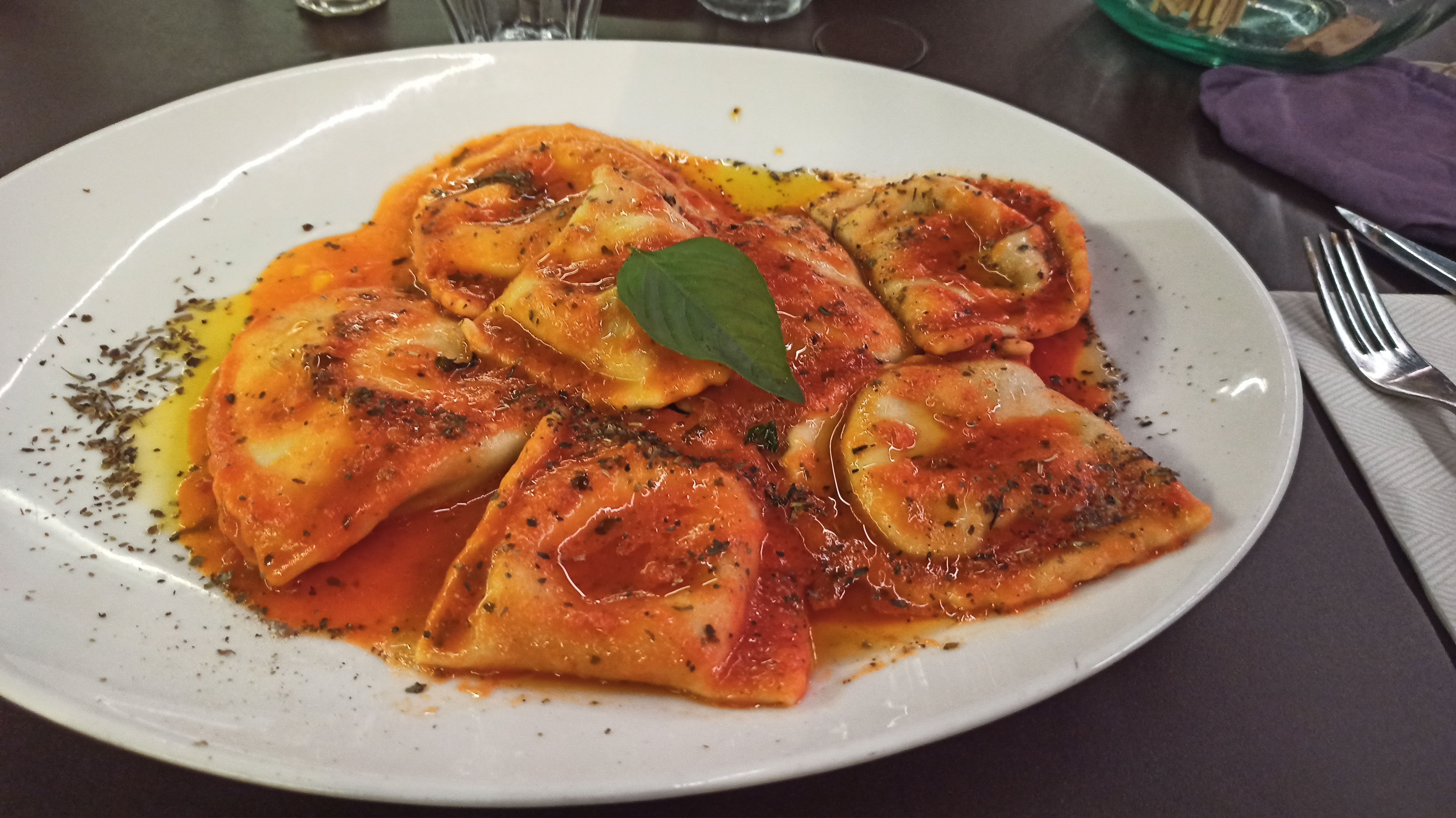 Les plats, pour la plupart, conviennent à tous les amoureux de la cuisine italienne y compris les végétariens. Succulents raviolis burrata et truffe.