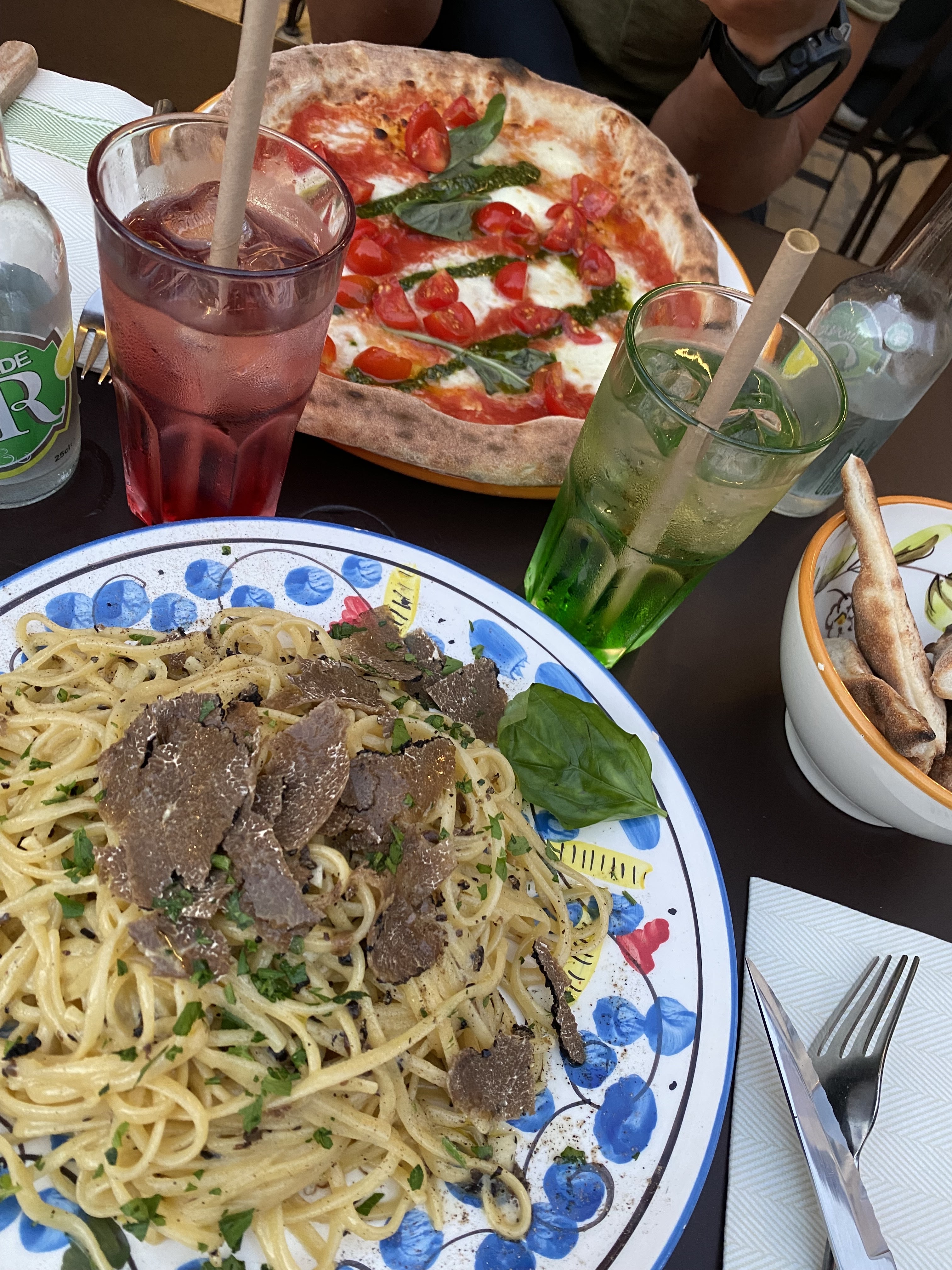 Excellente pizza à la truffe très garnie on s'est régalé merci. Serveur sympa. Le cadre sympa au pied de la vieille ville