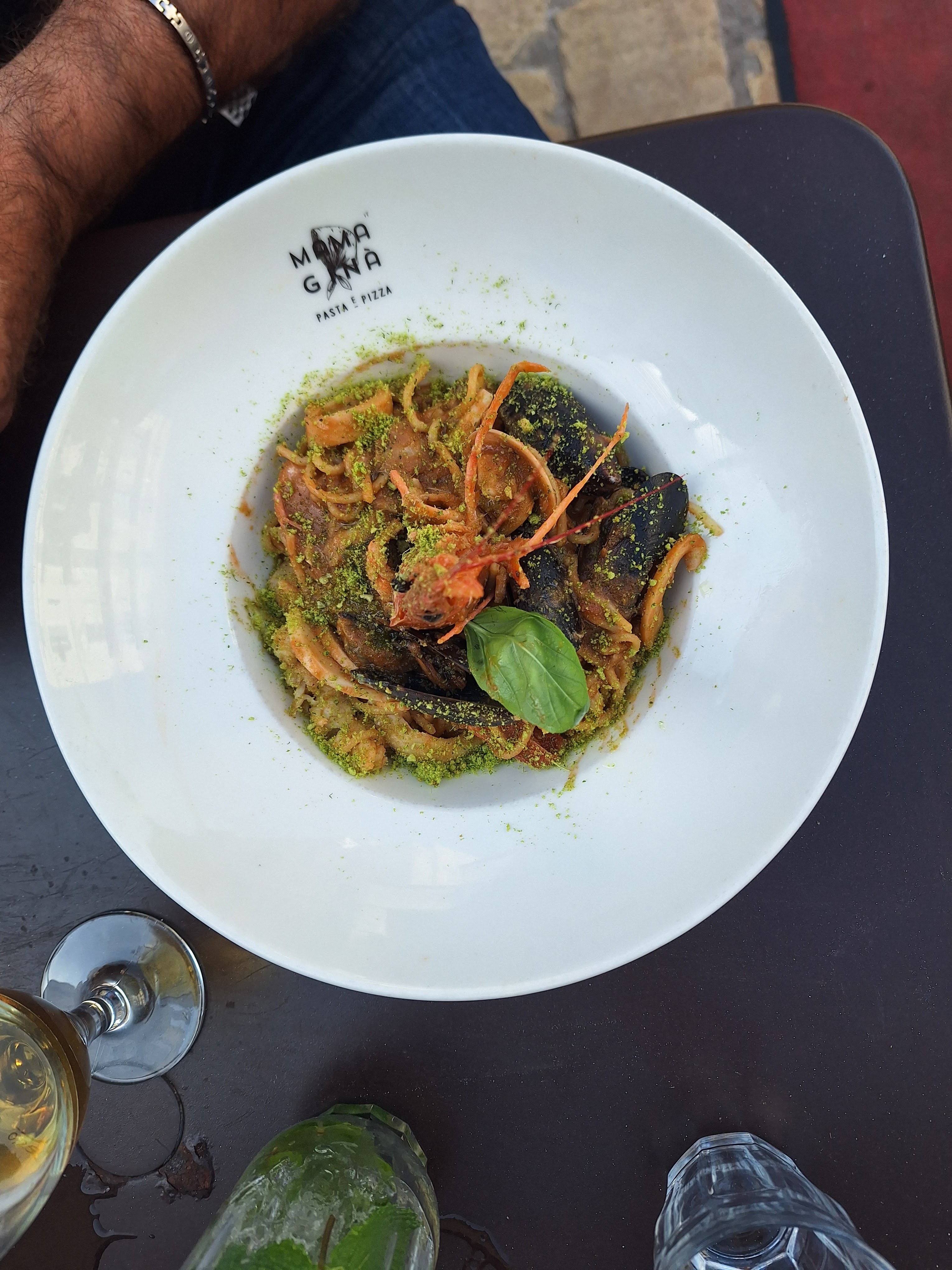 Bonne adresse à Bonifacio, où il est difficile de faire un choix pour manger. Nous avons passé un très bon moment chez Mama Gina, les Spritz sont bien effectués, les pizzas sont excellentes. Mention spéciale pour les linguines aux palourdes, 21 coques dans mon assiette, très bien fournie et c'est assez rare pour être souligné! Seul petite fausse note : l'attente. Nous aurions pu boire deux spritz...ce n'est peut être pas une mauvaise chose 😉