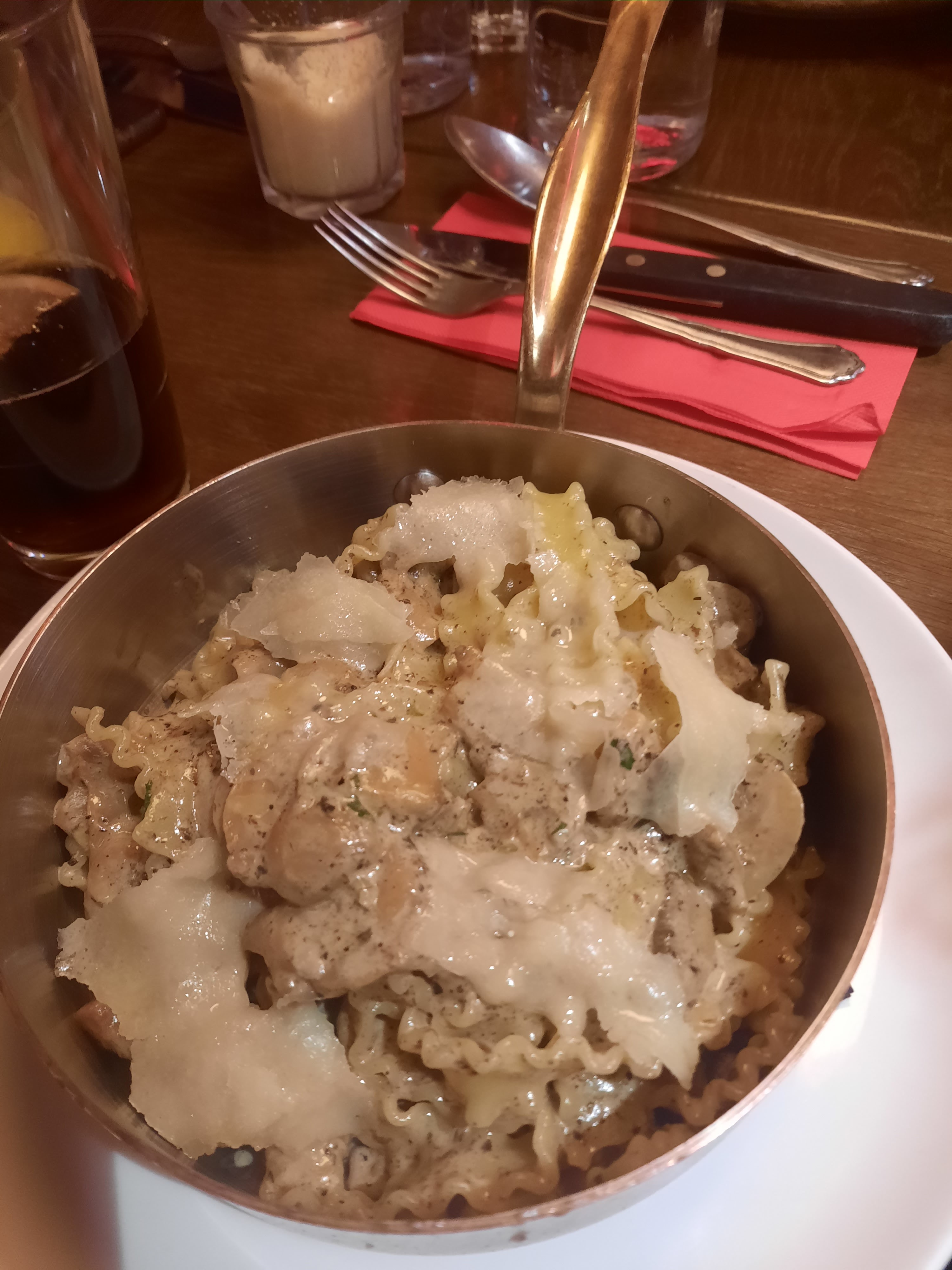 Heureusement que le service était agréable… parce que la cuisine est mauvaise. Les 2 plats de pâtes étaient insipides. Ce ne sont pas des produits de bonne qualité, les sauces sont fades, je déconseille franchement ce « restaurant ».