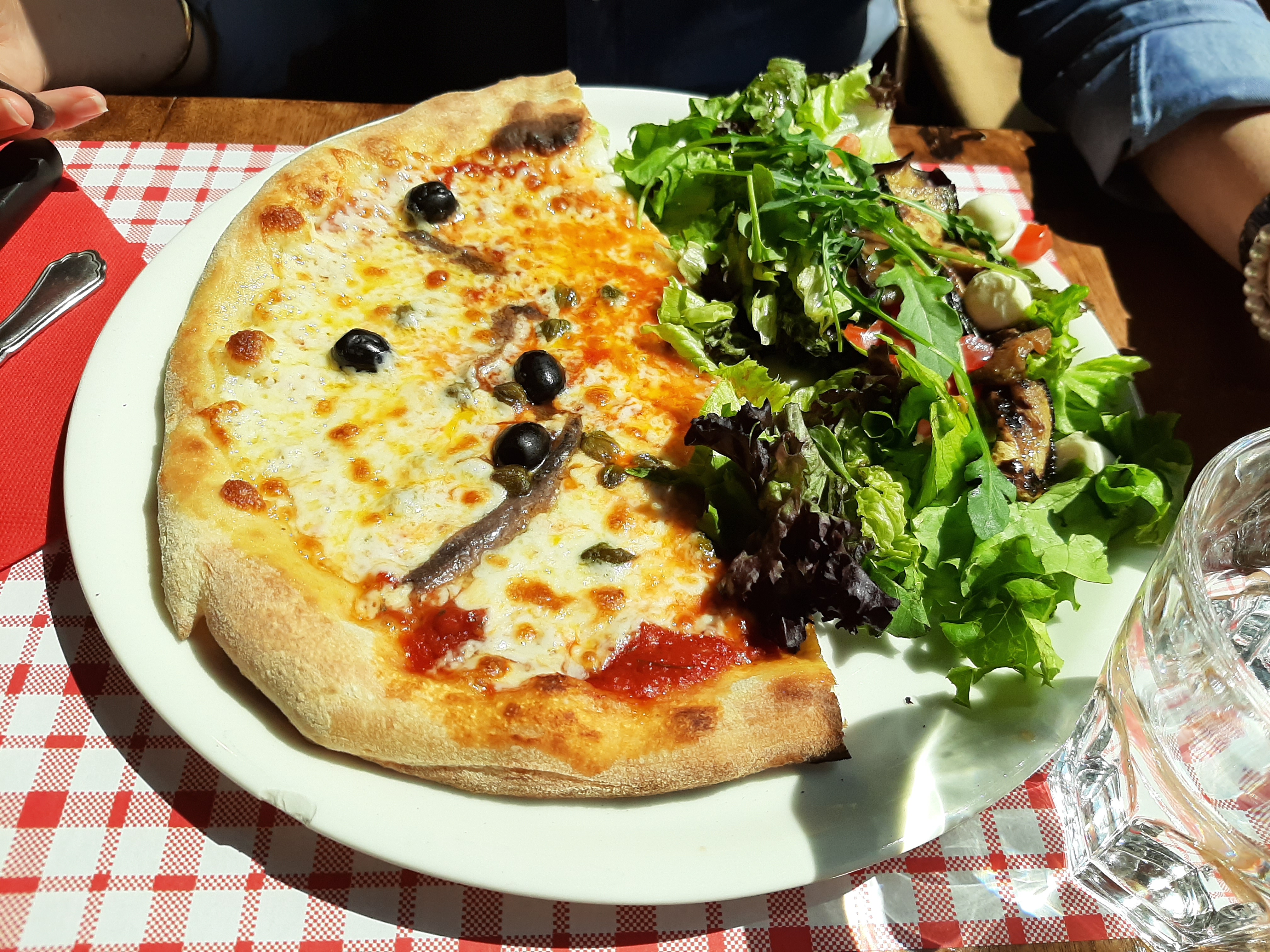 Journée ensoleillée, j'ai donc dégusté une belle pizza sur la terrasse. Le personnel était sympathique. Une remarque : ce serait bien que les tables de la terrasse soient nettoyées et préparées avant l'ouverture du restaurant, cela donne une autre ambiance que des tables vides à 18h.