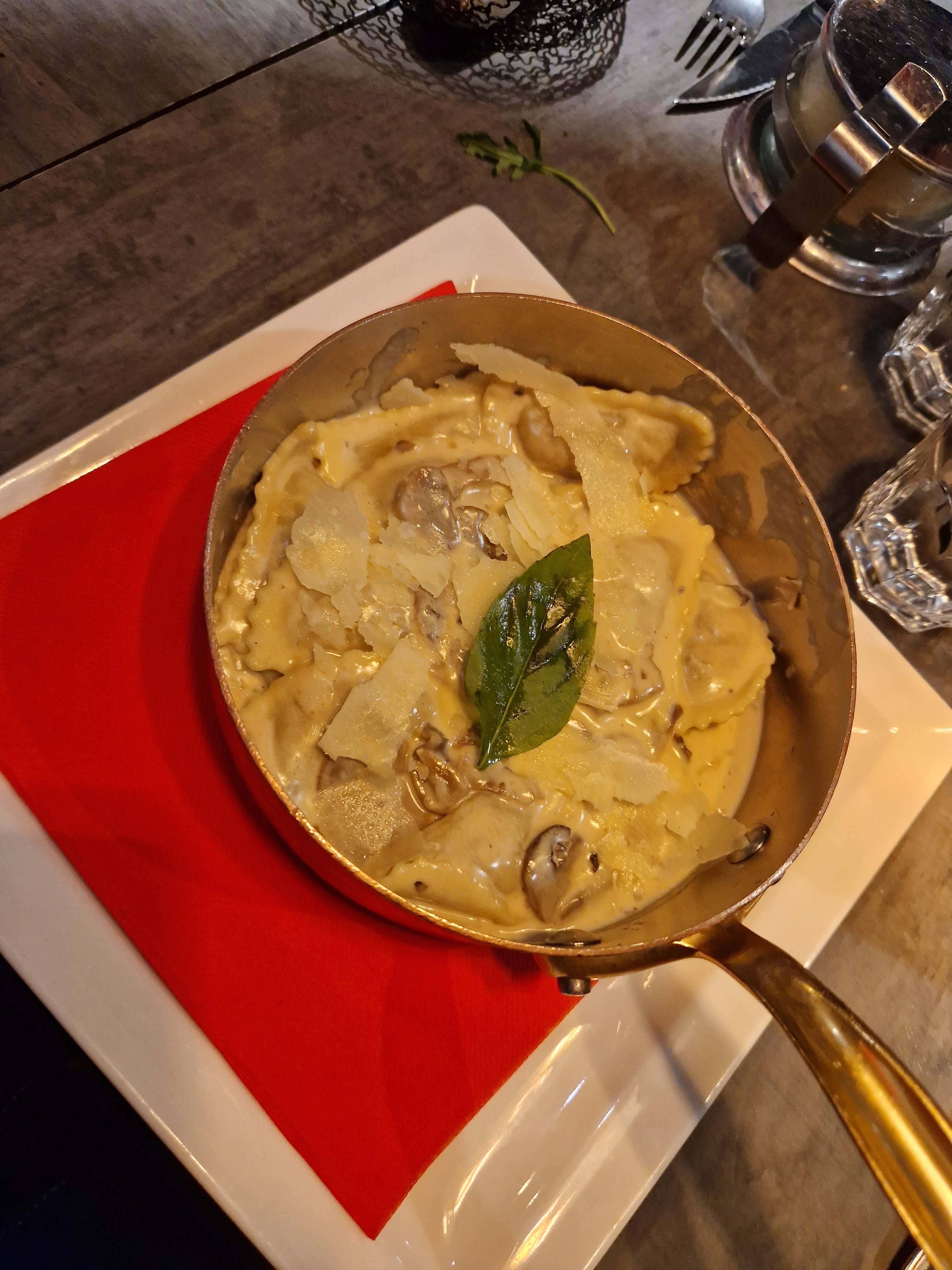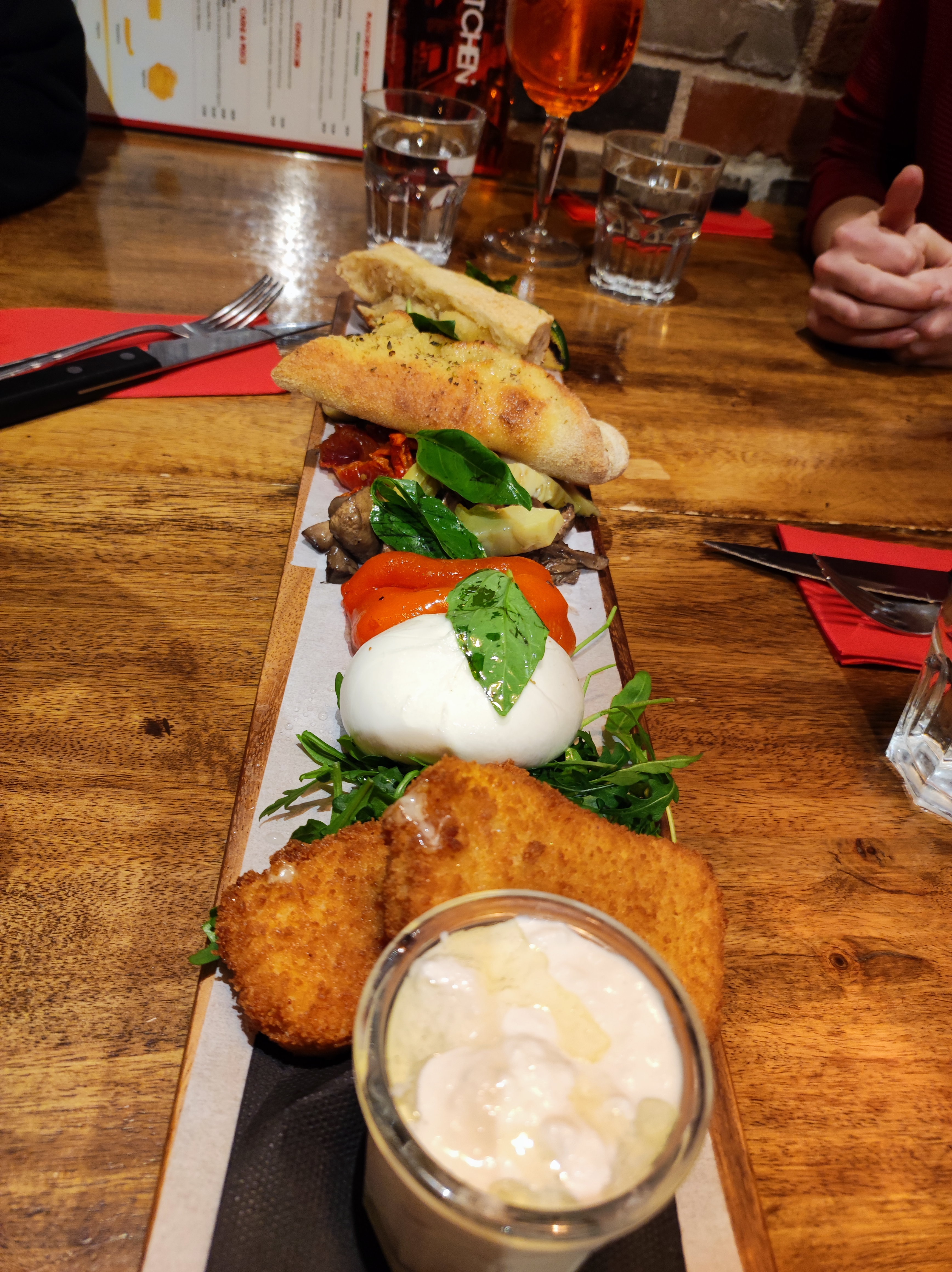 Dans l'ensemble, c'est un bon restaurant italien avec des prix abordables. Le plateau avec les entrées était très bon. Les pizzas étaient bonnes. Il manquait quelque chose aux raviolis aux champignons, il est difficile de rater un plat de pâtes crémeuses aux champignons, mais il est en fait encore plus difficile de le préparer parfaitement. Le service était assez chaotique mais le personnel était gentil.
