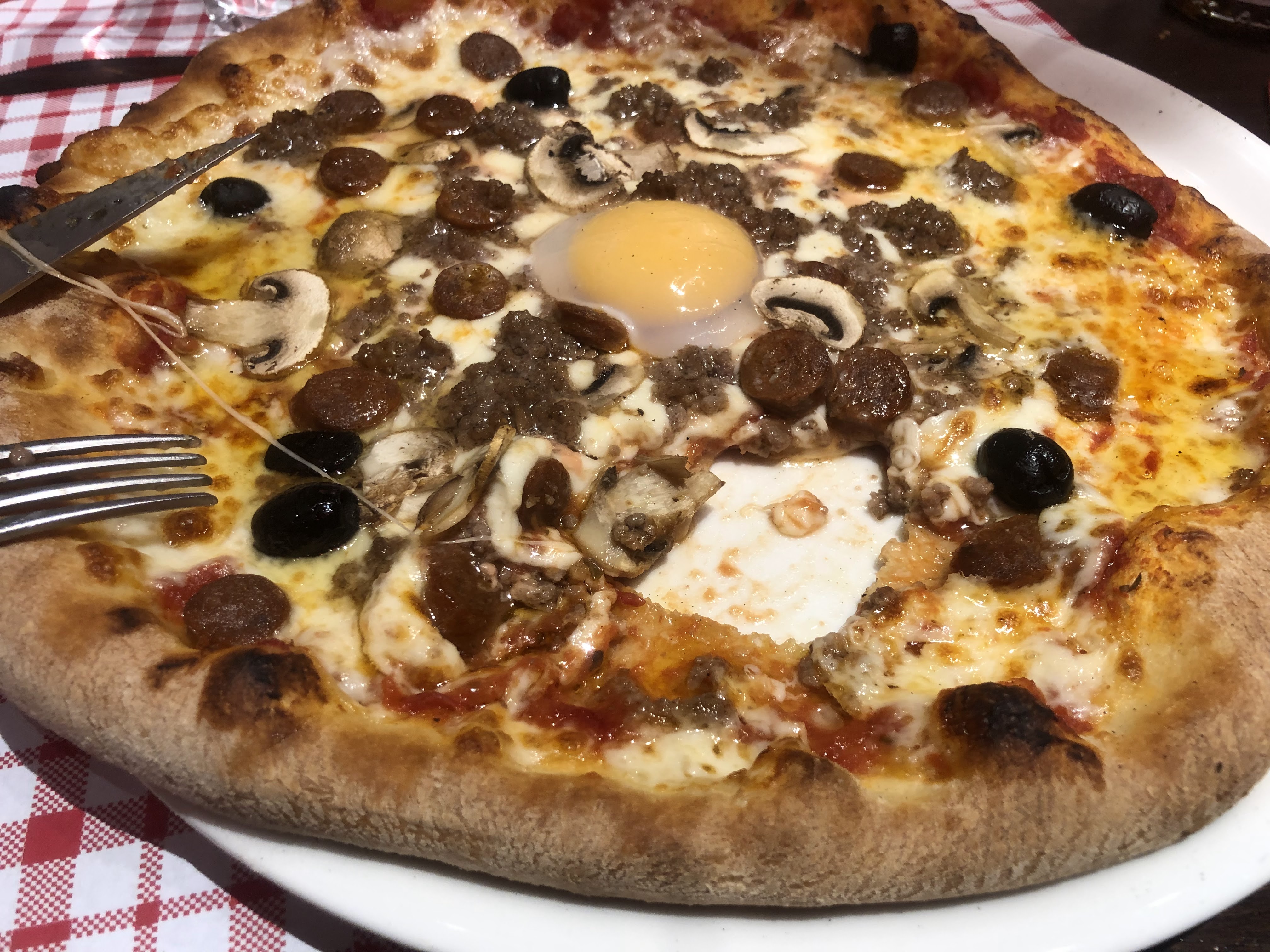 Petit estomac, s'abstenir 😀 Les pizza sont très bonnes, très grandes et à prix intéressant. Le service est correct. Je le recommande.