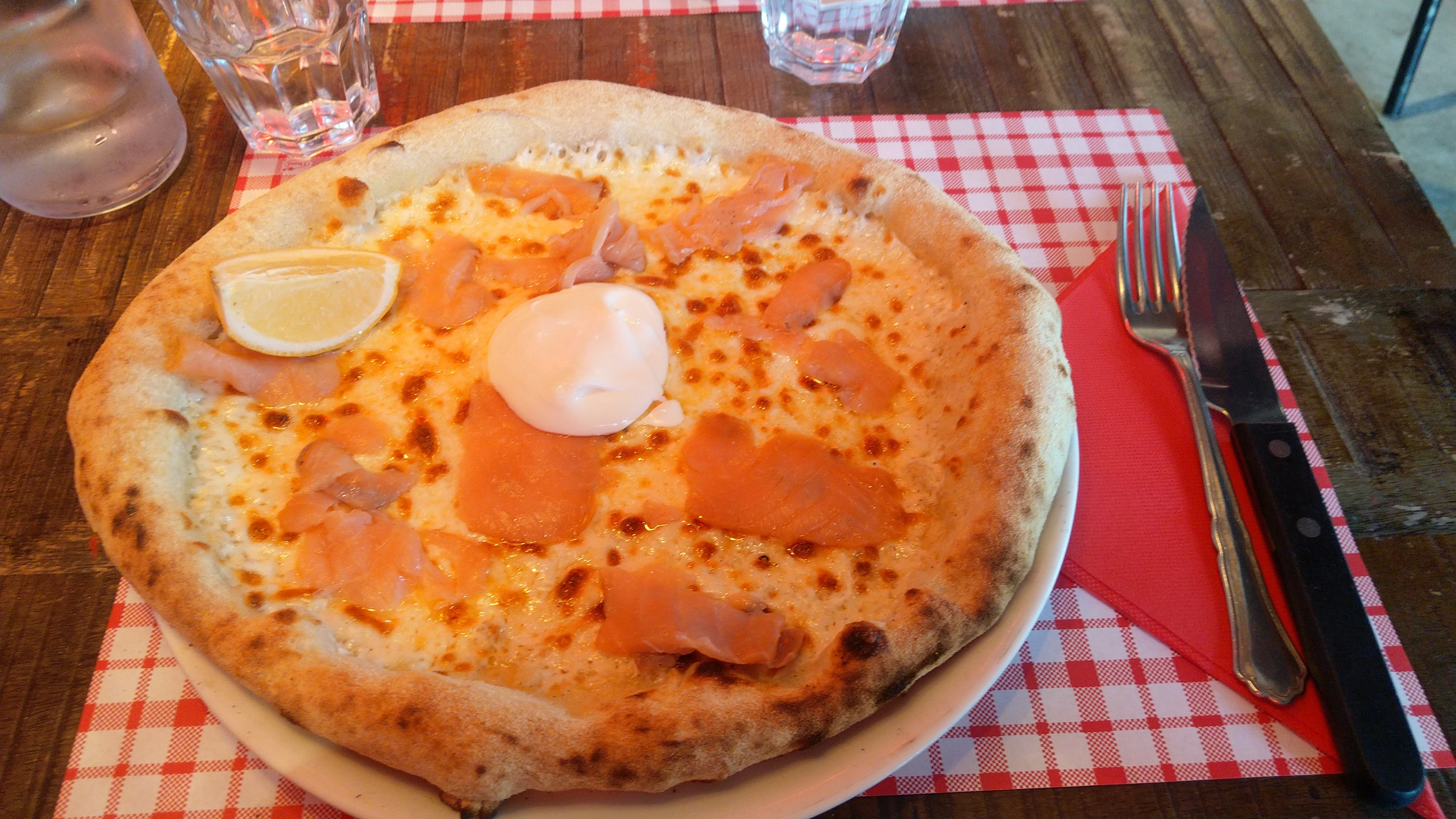 L'endroit est sympa, spacieux avec une jolie décoration. Le service était bien, notre serveuse était très souriante. Néanmoins, assez cher pour ce que c'est : 15€ pour une pizza regina fade, c'est beaucoup. C'est dommage les ingrédients avaient pourtant l'air plutôt quali, mais cela manque de sel, il n'y avait pas d'origan et la pizza n'était certainement pas assez cuite. C'est peut-être une question de goût, mais les deux personnes qui étaient avec moi et qui ont également pris cette pizza partageaient cet avis.