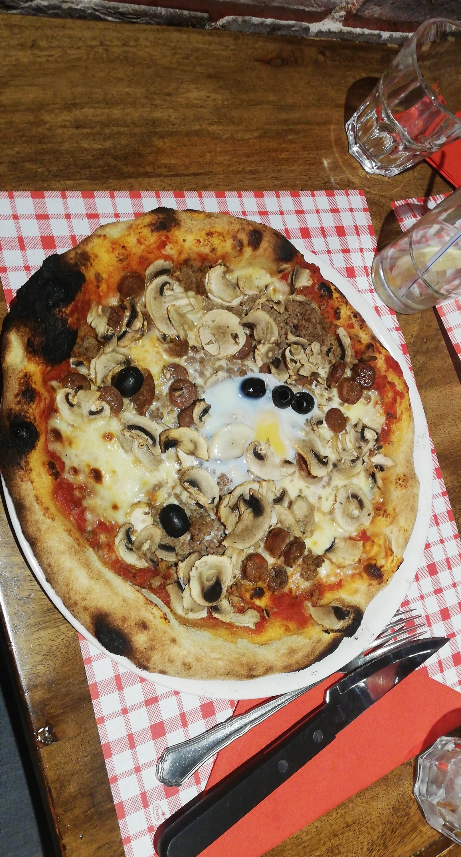 Groupe de 11 personnes serveuse efficace mais petite pizza avec grosse croûte et pour celle à la truffe presque pas de goût ...c'est bien dommage car le tiramisu était bon. Addition assez haute et même pas de digestif offert c'est bien dommage.