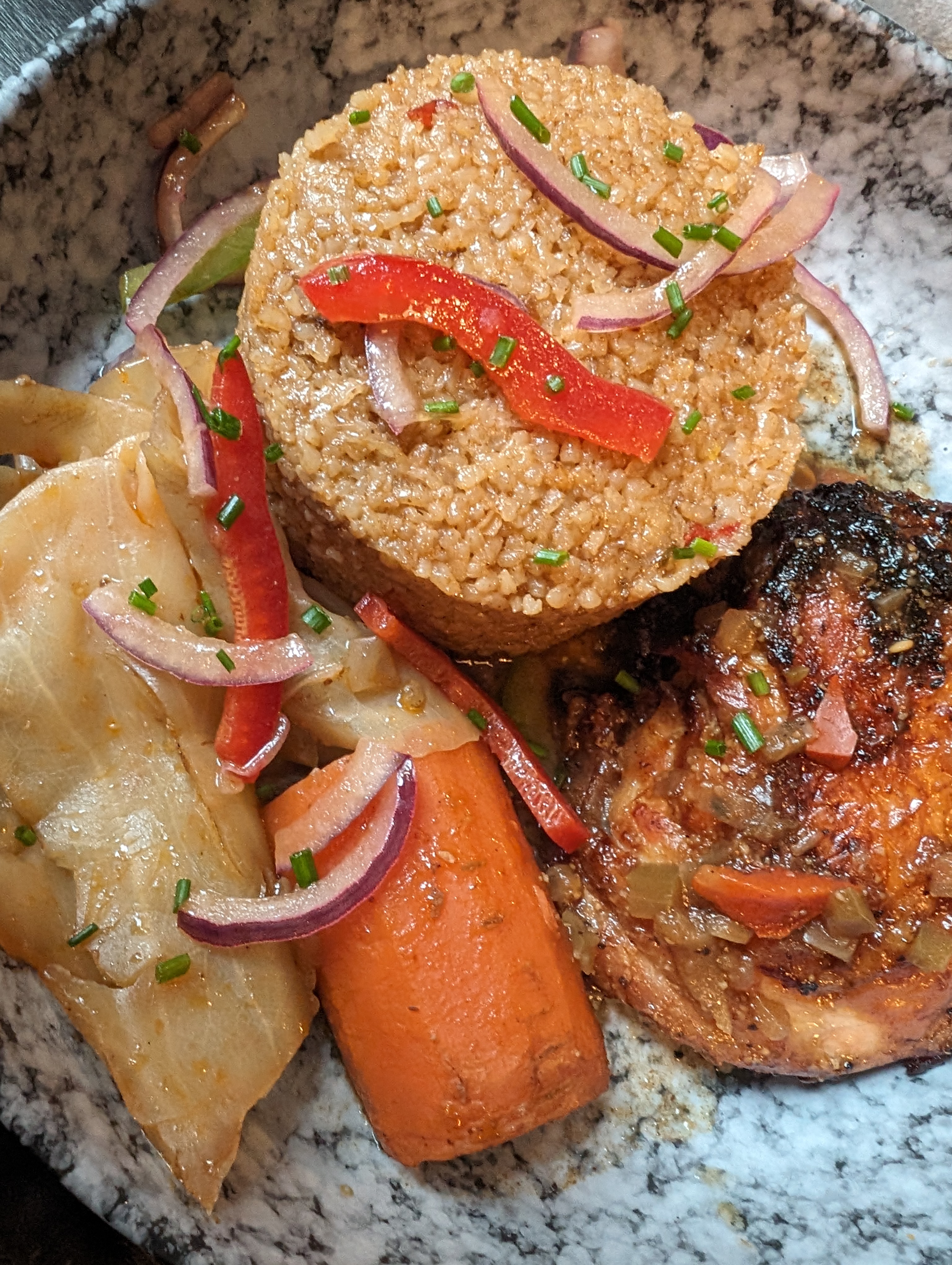 Venue ici en derniere minute. Bel accueil, bonne musique, ambiance chaleureuse! Les accras sont à tombés parterre, une tuerie ! Plat du jour : thiep au poulet. L'accompagnement est excellent et parfait avec le poulet. Allez y les yeux fermés, vous en ressortirez en roulant.