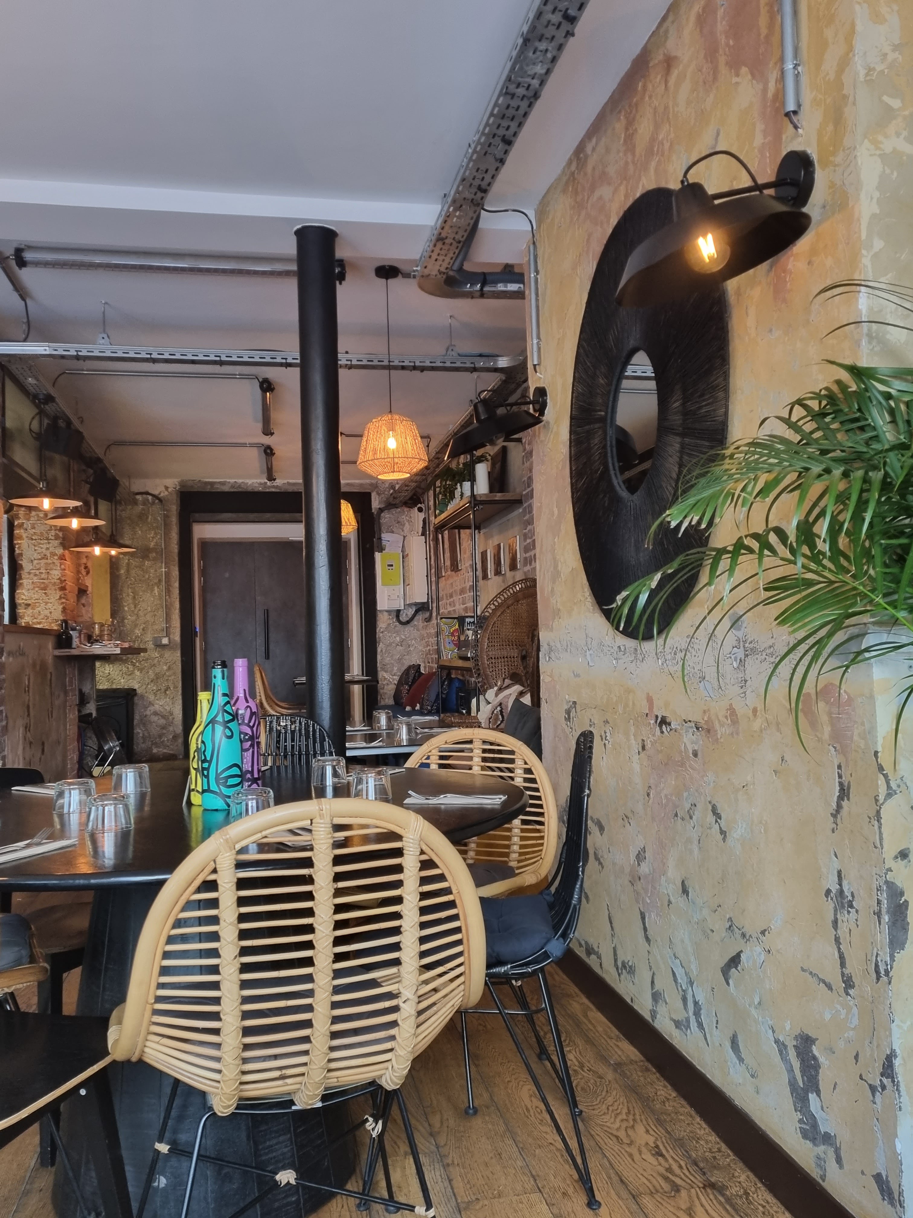 Le lieu est sympa et chaleureux. Il y a une grande arrière salle qui laisse présager des bonnes soirées en période plus dynamique que le mois d'août. La nourriture était bonne, dommage, il manquait un dessert sur la carte... Quant aux cocktails, ils gagneraient à être plus généreux. Ça reste une belle expérience !